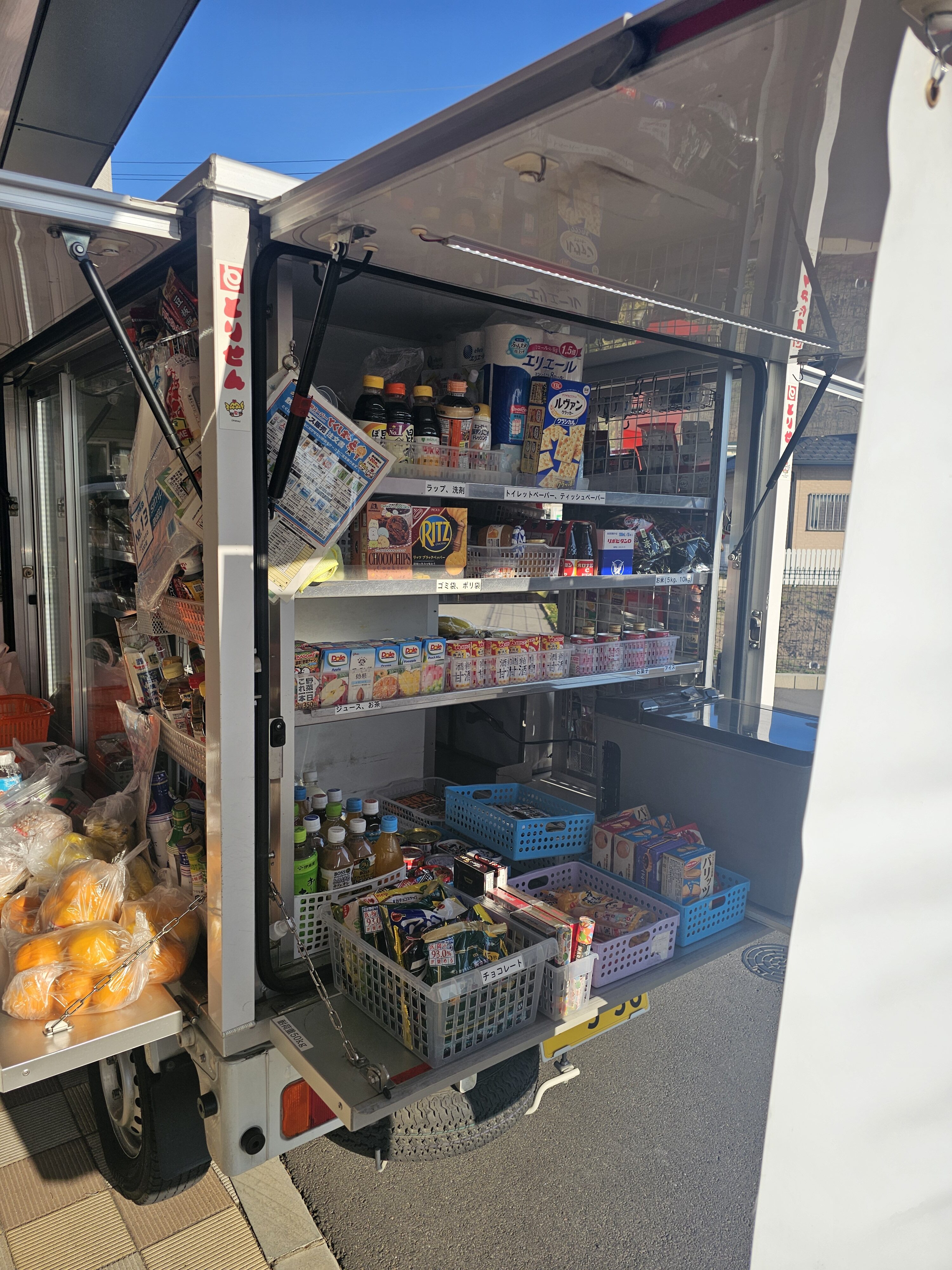 毎週水曜日は移動スーパーの日です。自由にお買い物ができる移動スーパーを皆さんが楽しみにされています。 本日は天気がよくポカポカ陽気でしたので、アイスを購入された方もいらっしゃいました。