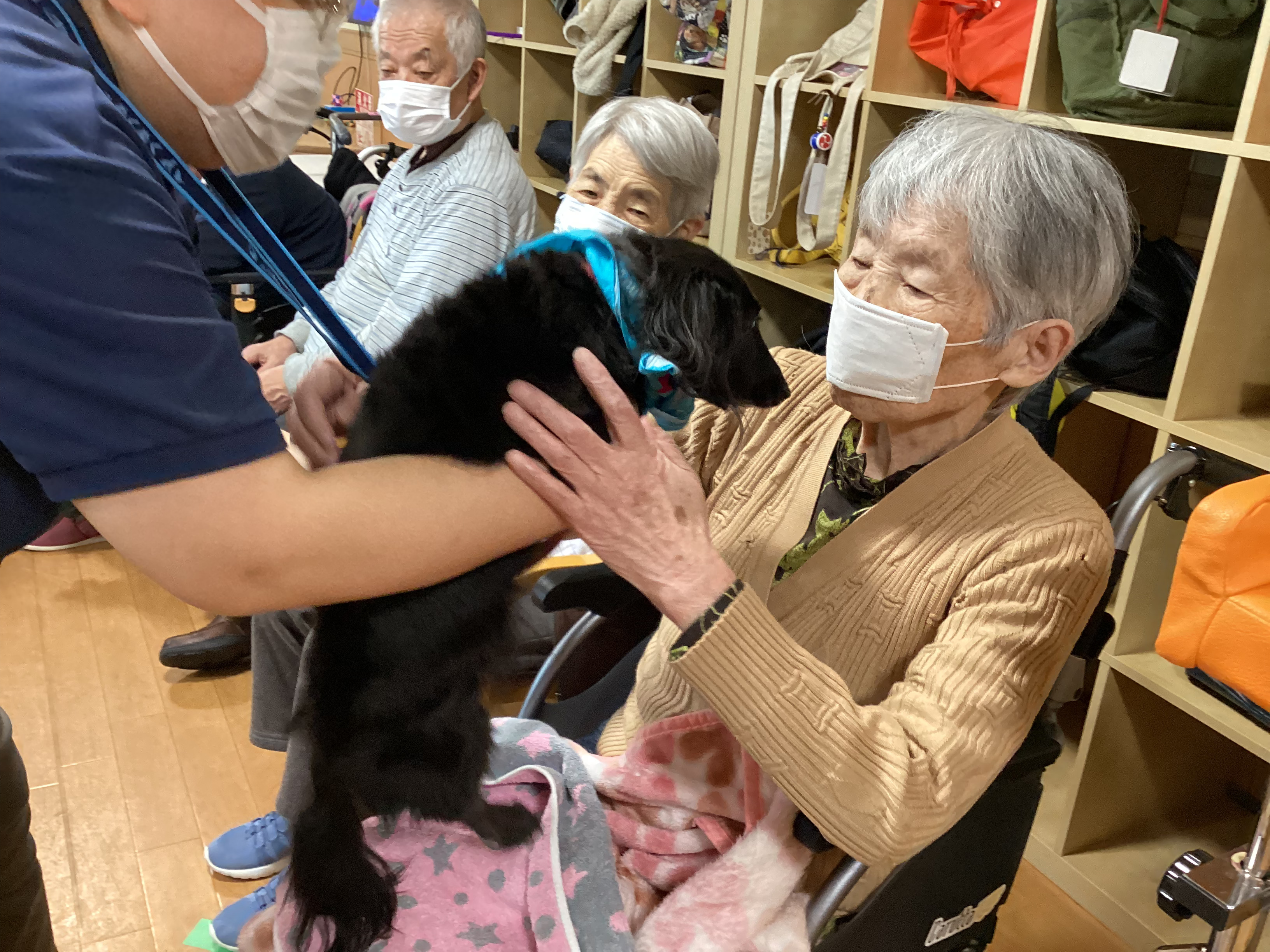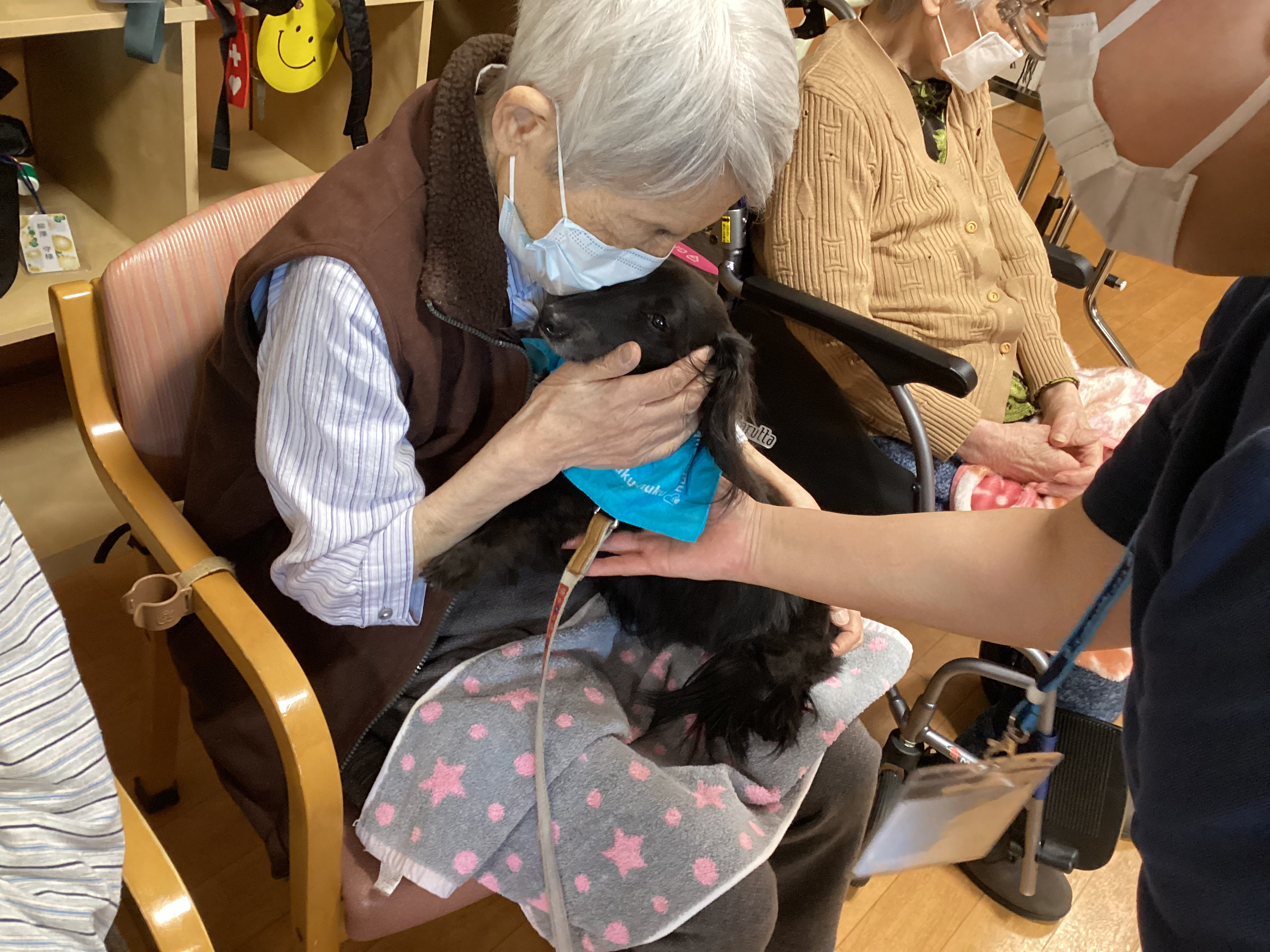 デイサービスの皆さまと一緒にペットセラピー🐶に参加しました。大人しく愛らしいワンちゃん🐶猫ちゃん🐈に触れて心温まるひと時を過ごしました💕