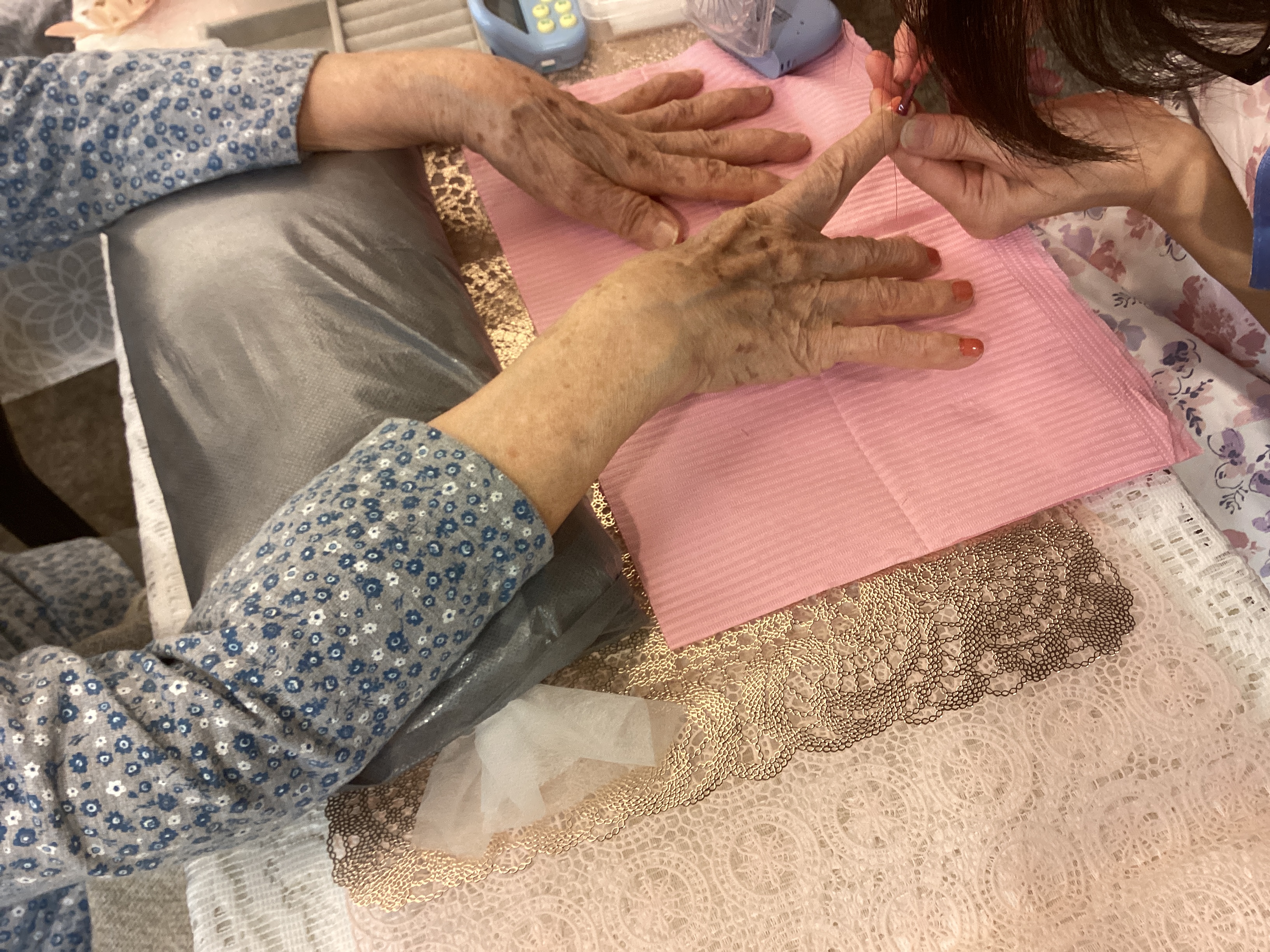 11/18 以前お試しで来ていただいた方々に今回介護美容を開催していただきました。 参加された方の人数は少なかったものの、終わった後は素敵な笑顔が見られ、素敵だわと会話も弾んでいました。