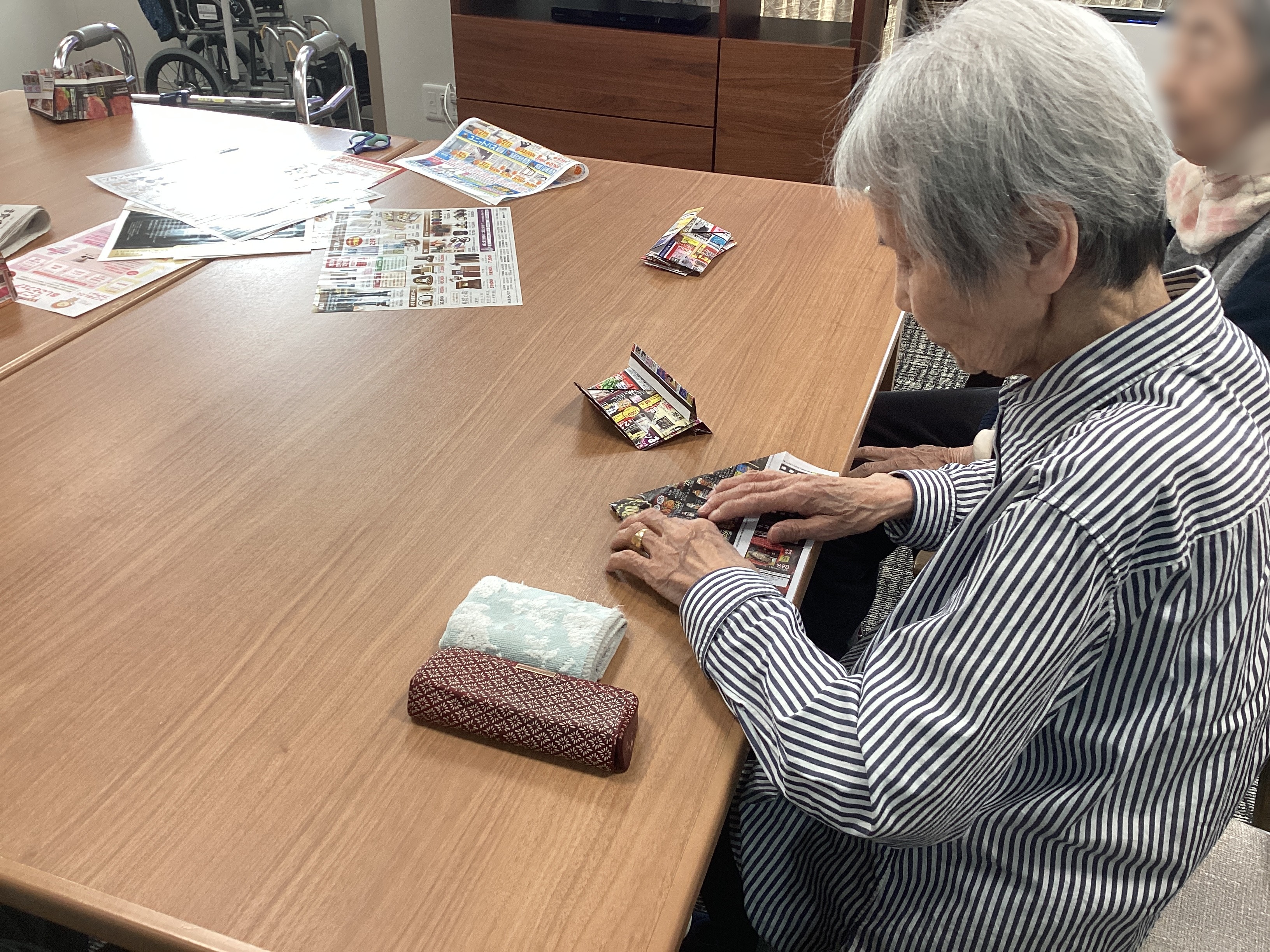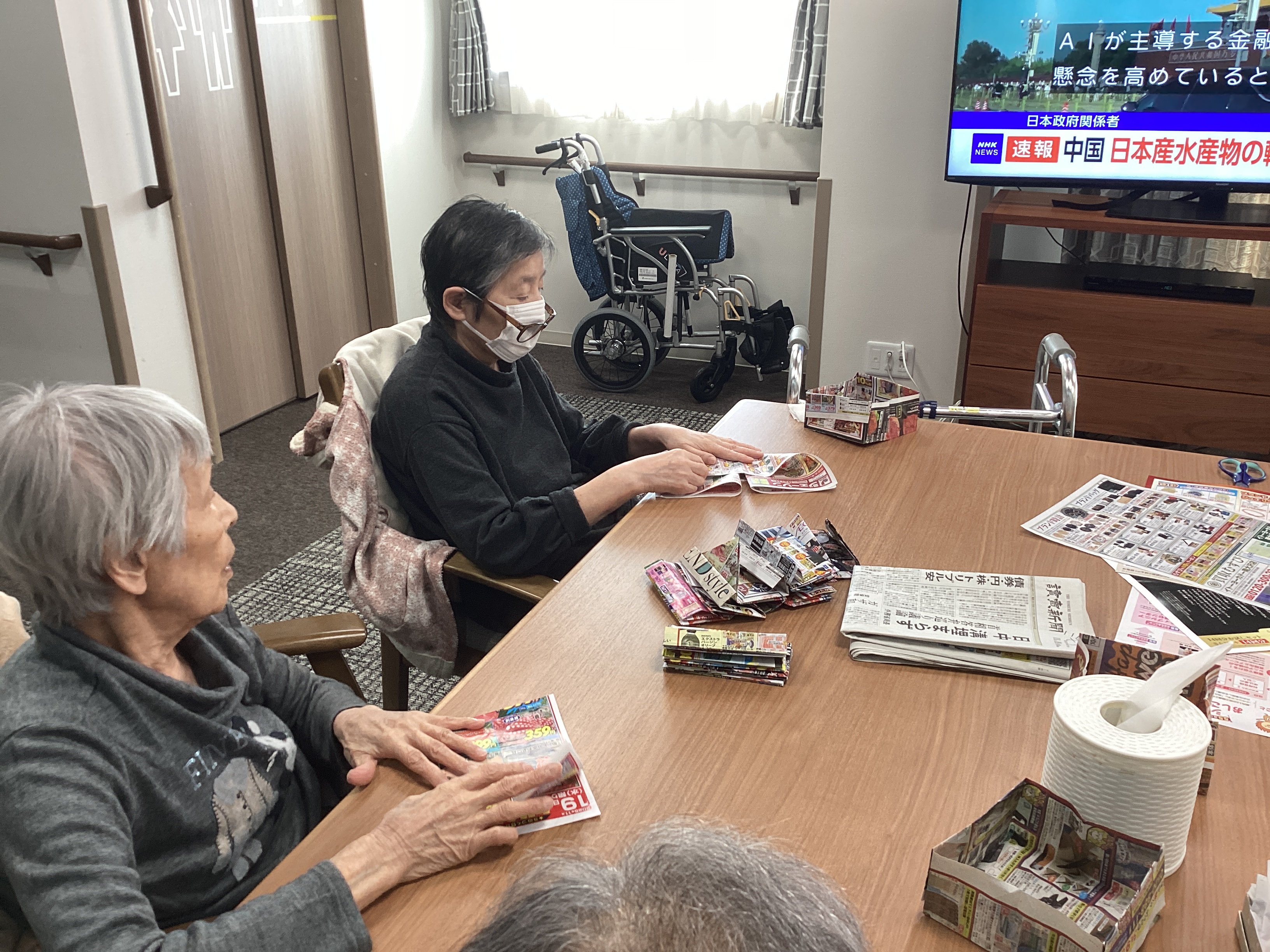 日常的に使用している、チラシで作ったゴミ箱はご入居の皆さんに作っていただいています!チラシのごみ箱、そのまま捨てればいいのですごく便利です👍