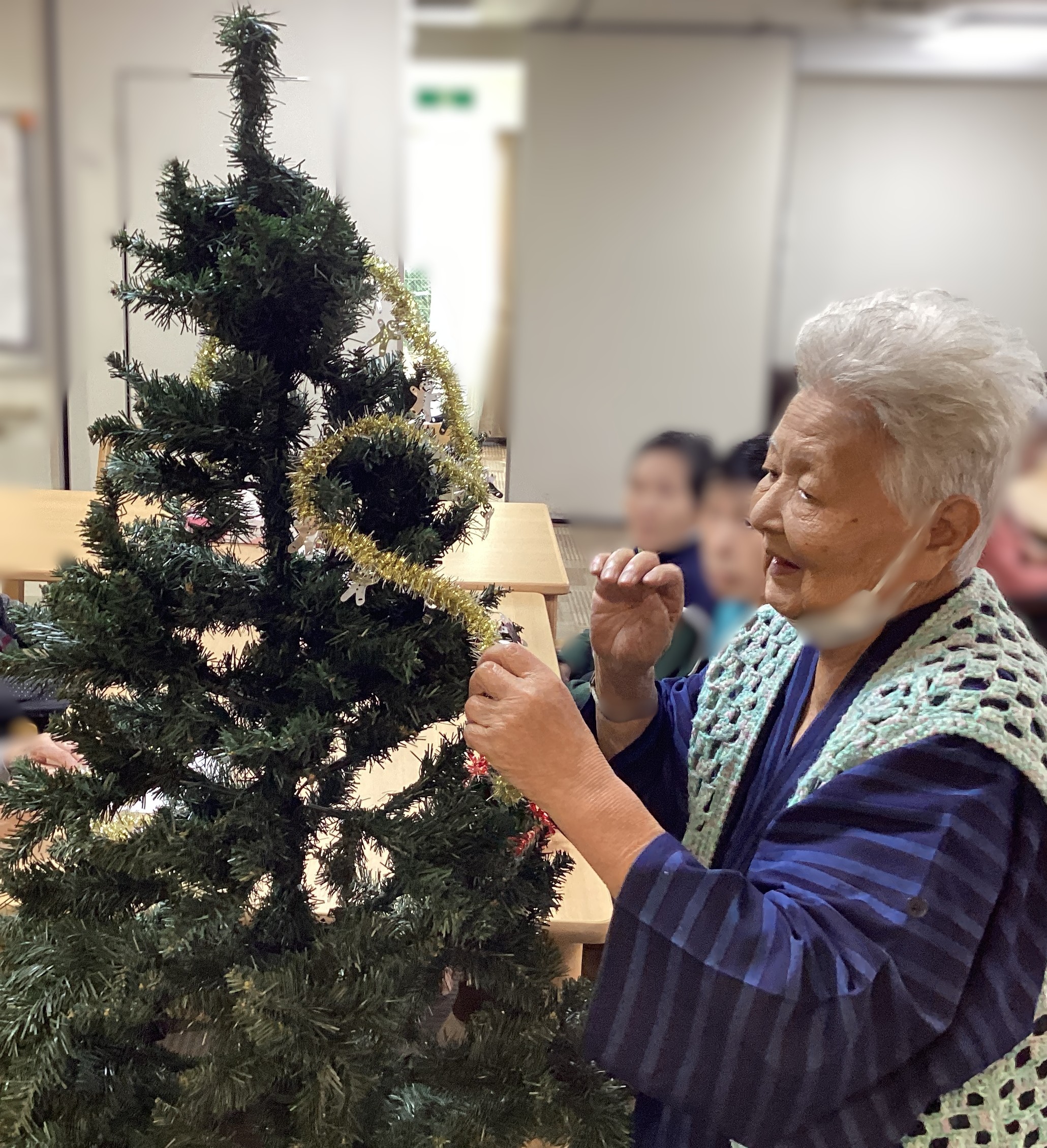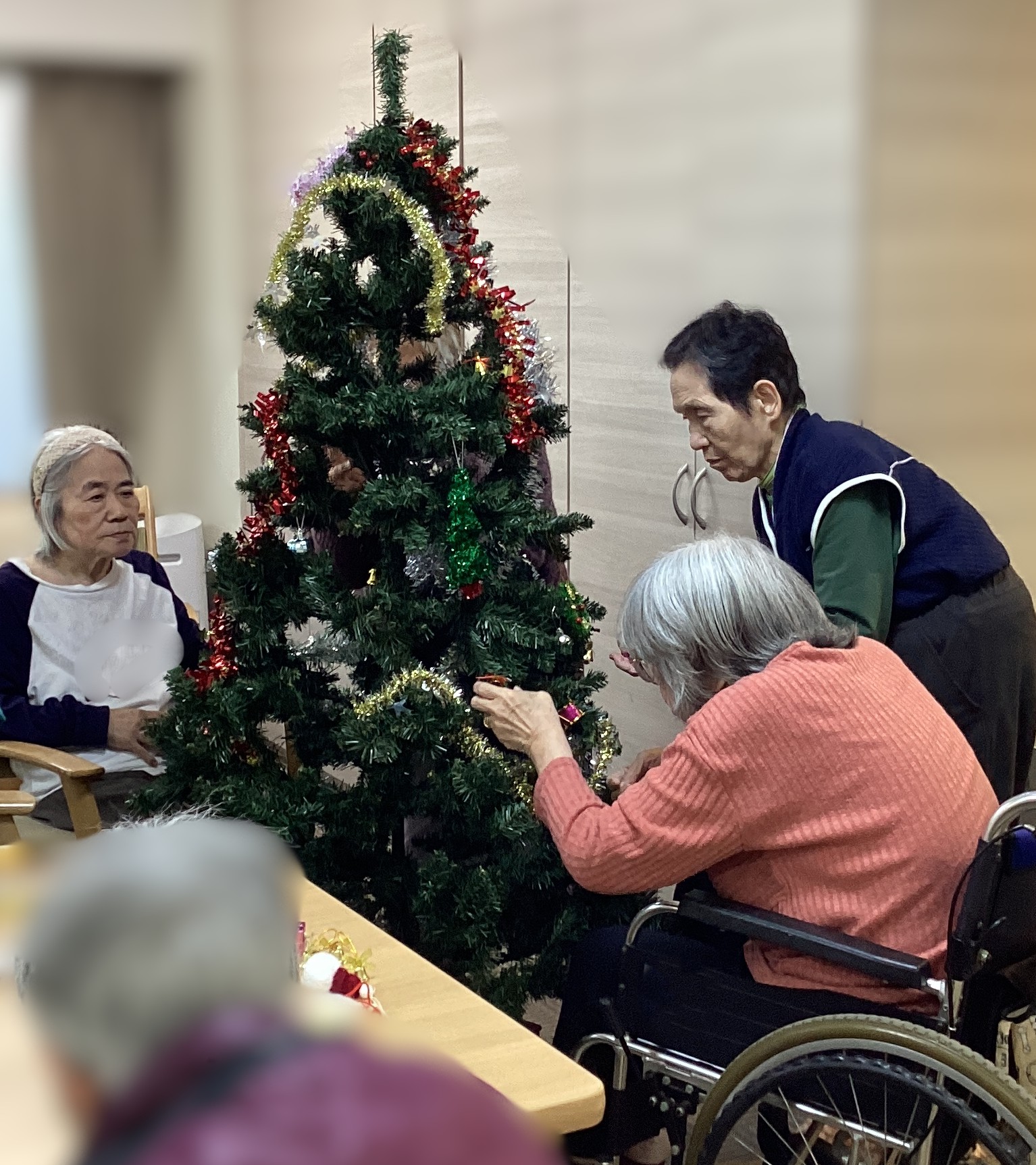 🎅今年の🎄ミモザ足立六木小規模の皆さんが慎重に細かい飾り付けをして完成したクリスマスツリー🎄です🌟綺麗に飾り付け出来ました🎅