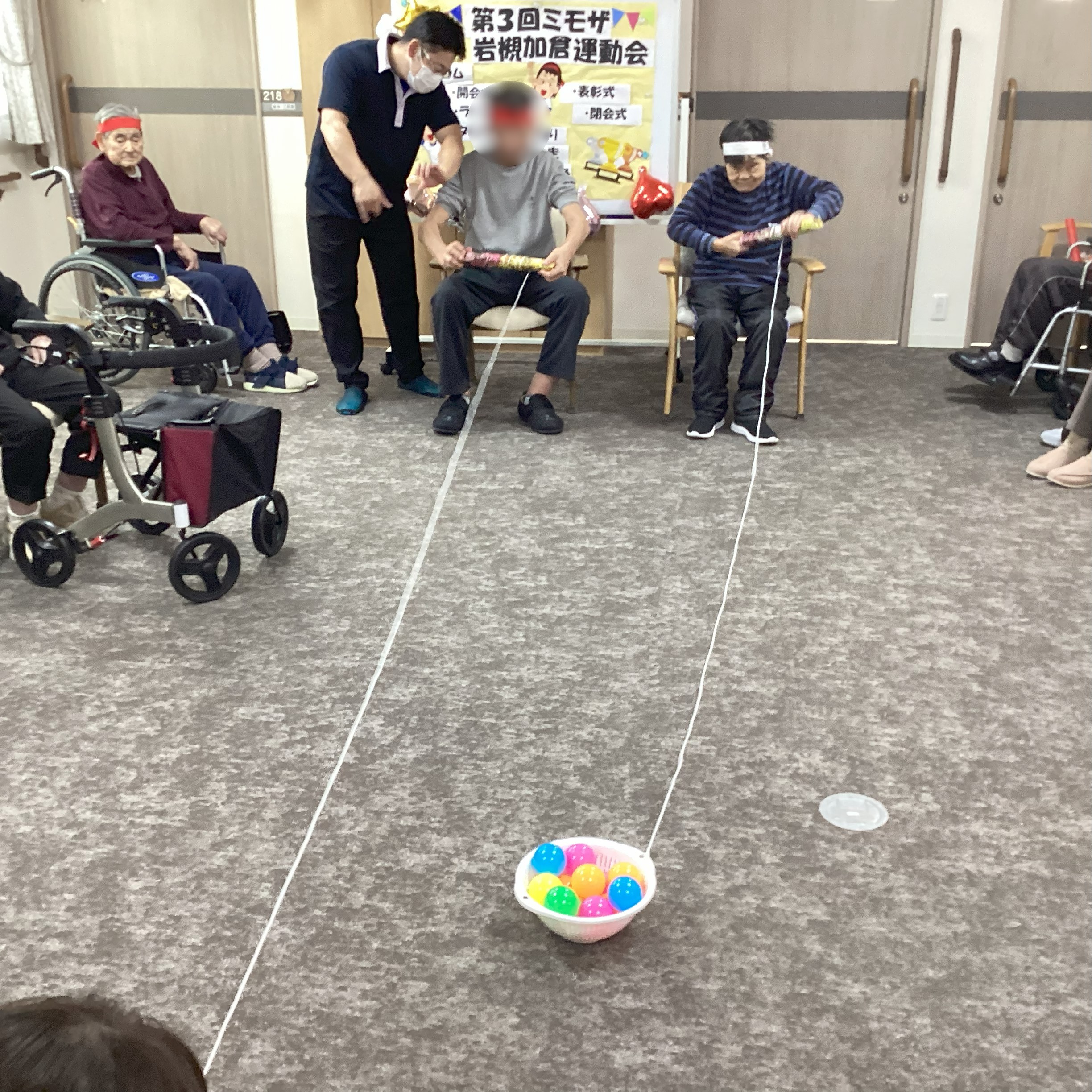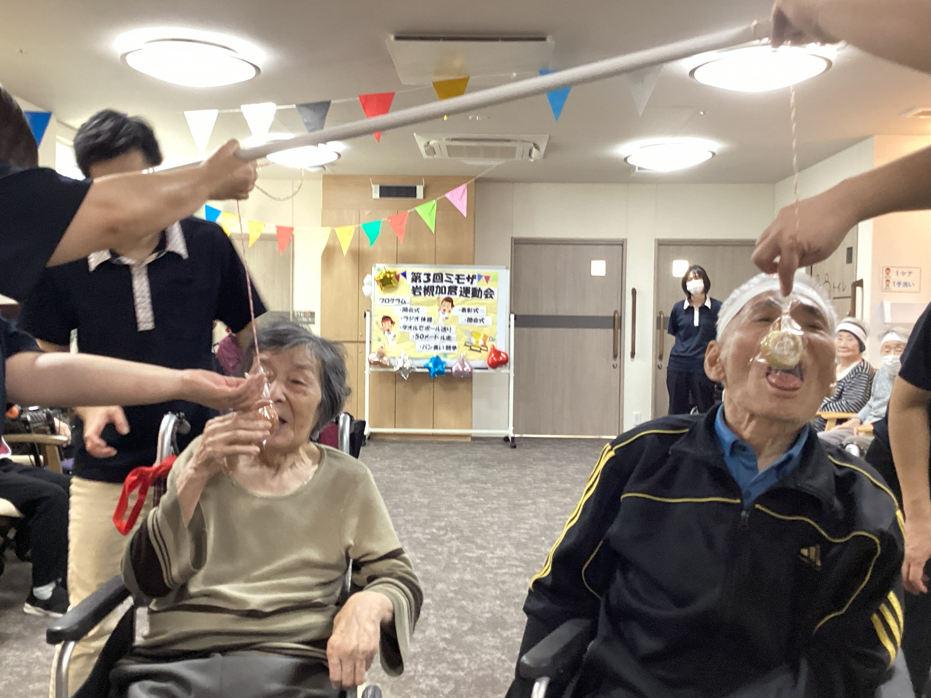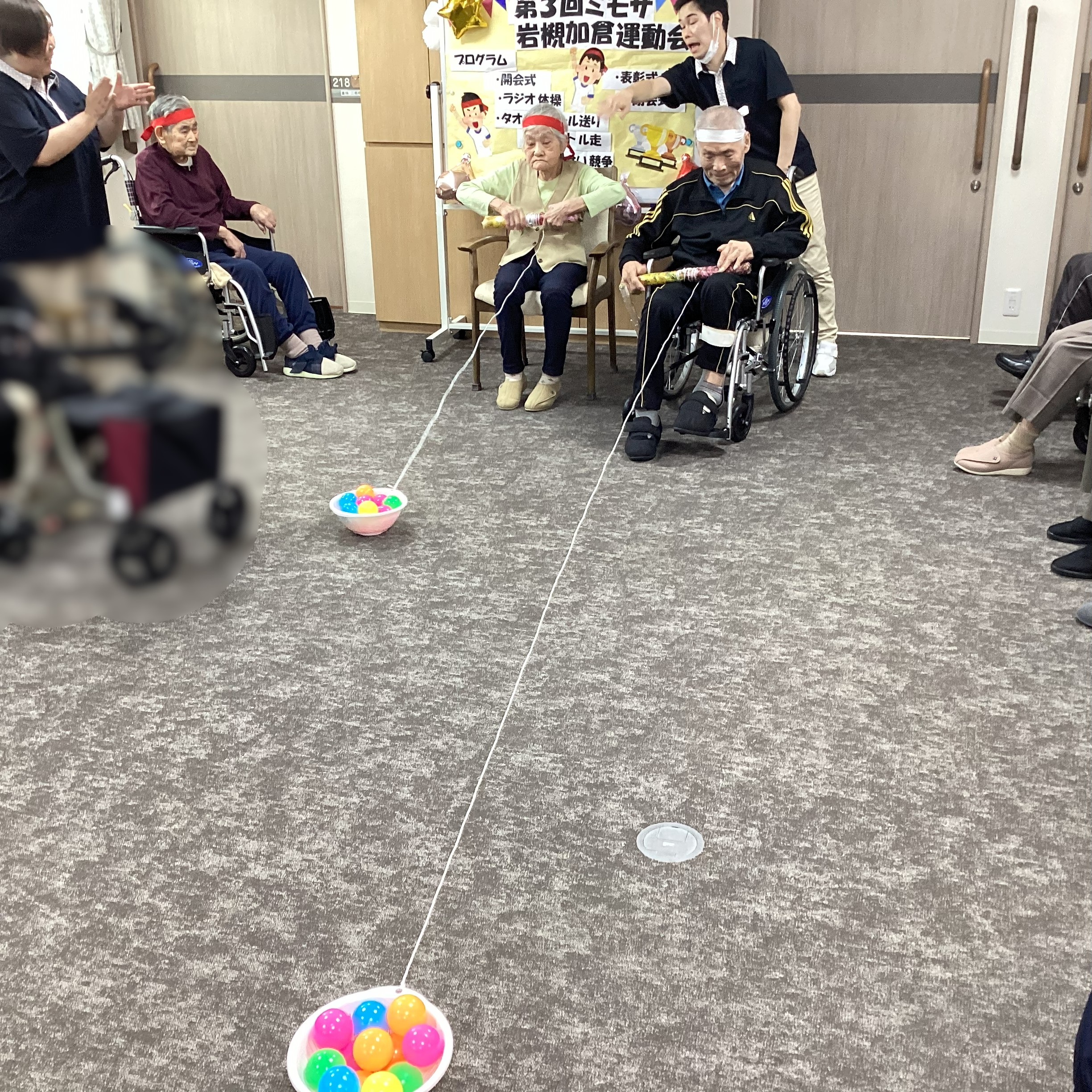 2階ひいらぎフロアー・やまぶきフロアー対抗の運動会を行いました(*^_^*)たくさん笑い楽しい運動会になりました。今回はやまぶきフロアーの勝利🌟 おやつにパン食い競争で獲得したあんぱんを召し上がりました(^^)/