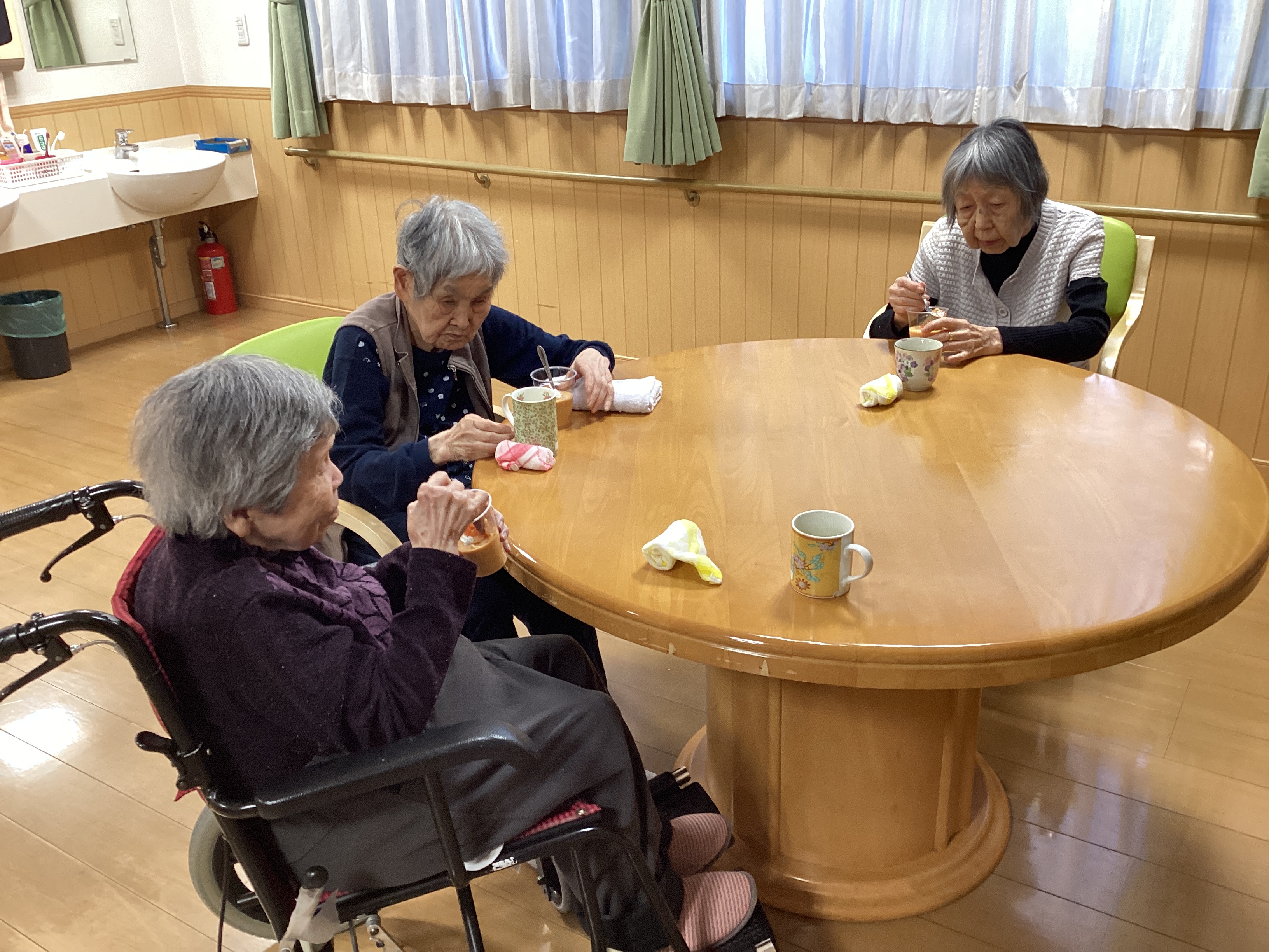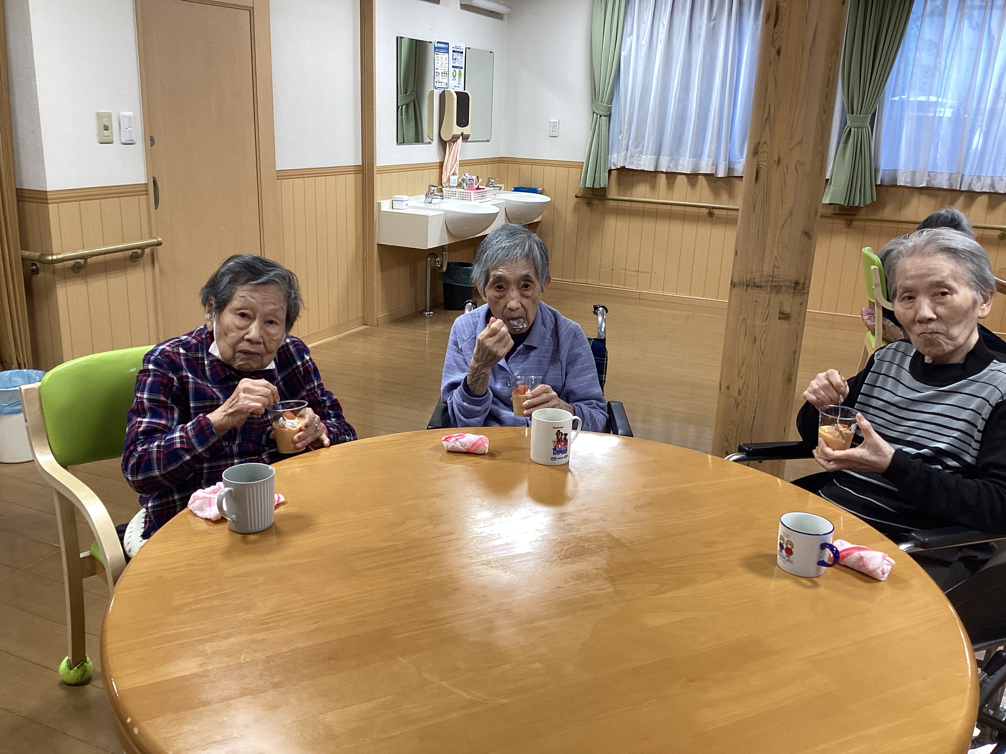 あと3日で11月も終わります。。早いです💦 寒さも厳しくなってきました(>_<) 入居者のご家族から、お家で採れた「柿」をいただきました(*^^*) 早速、皆さんが食べやすいように「柿プリン」にして食べていただきました~♪ 秋・冬の壁面飾りも作製中