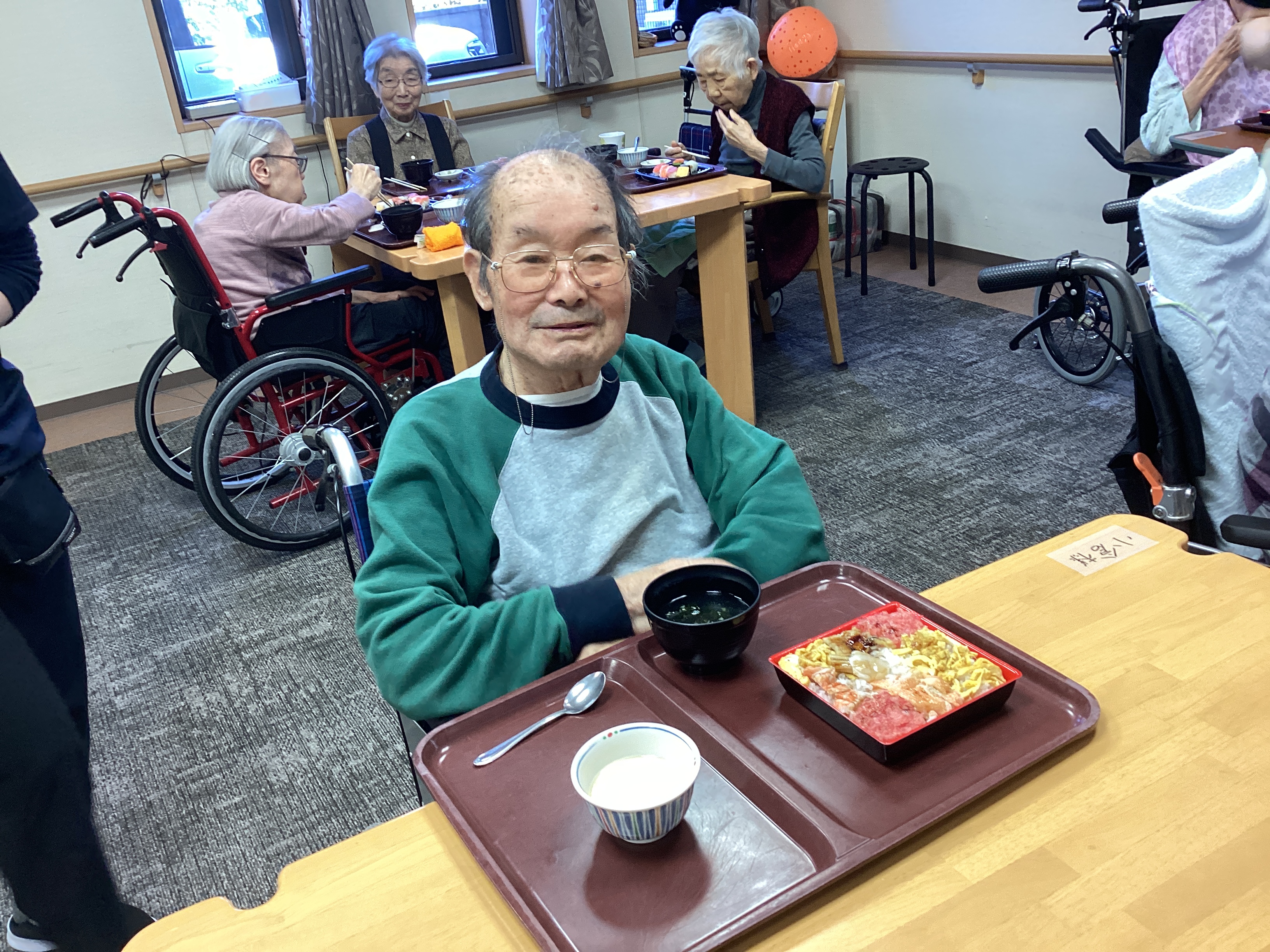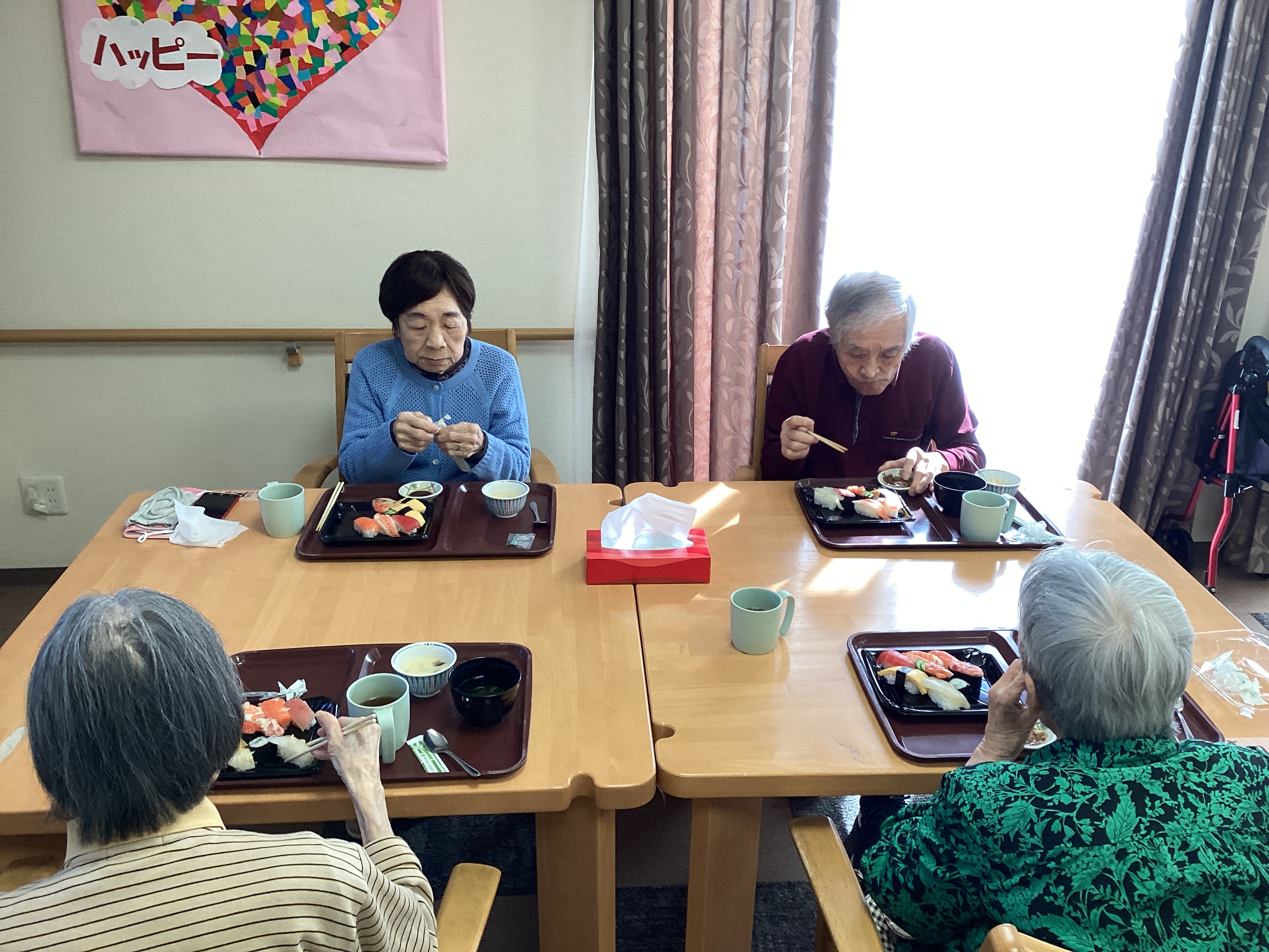 ミモザ浦和、開設13年目に突入しました★感謝の気持ちを込めて昼食はお寿司、おやつは手作りのお芋汁粉を振舞ってご利用者に喜んで頂きました♬
