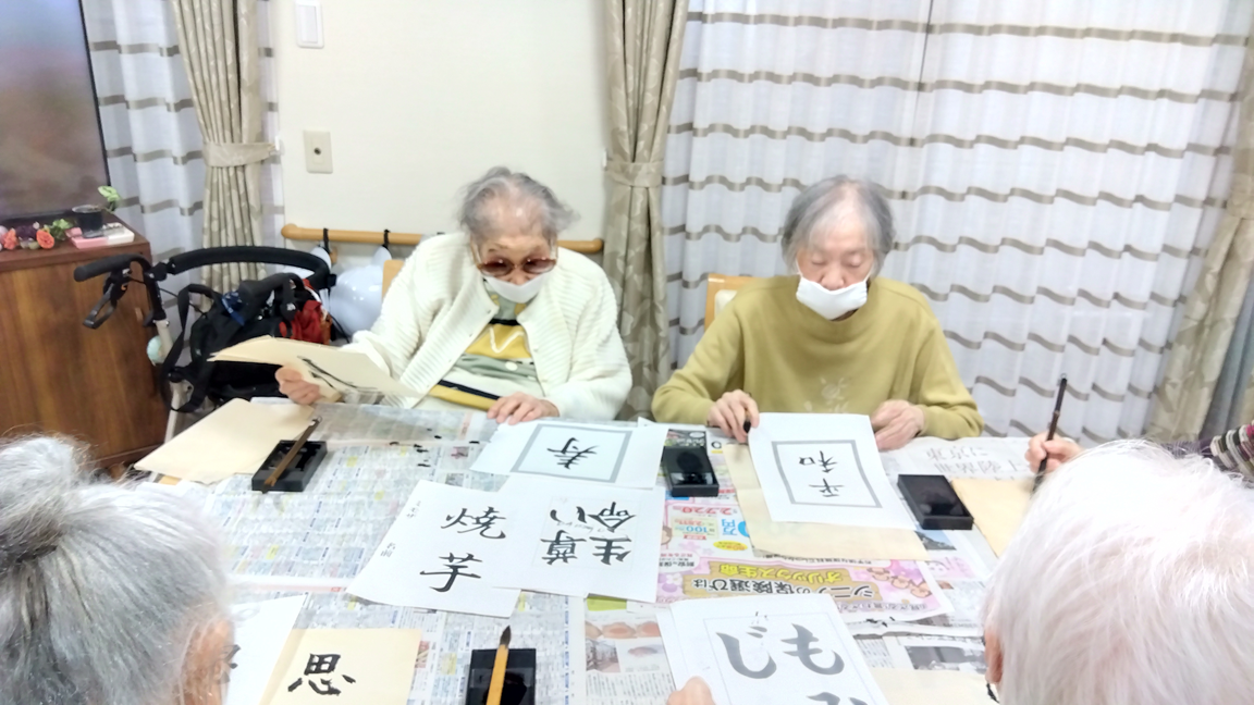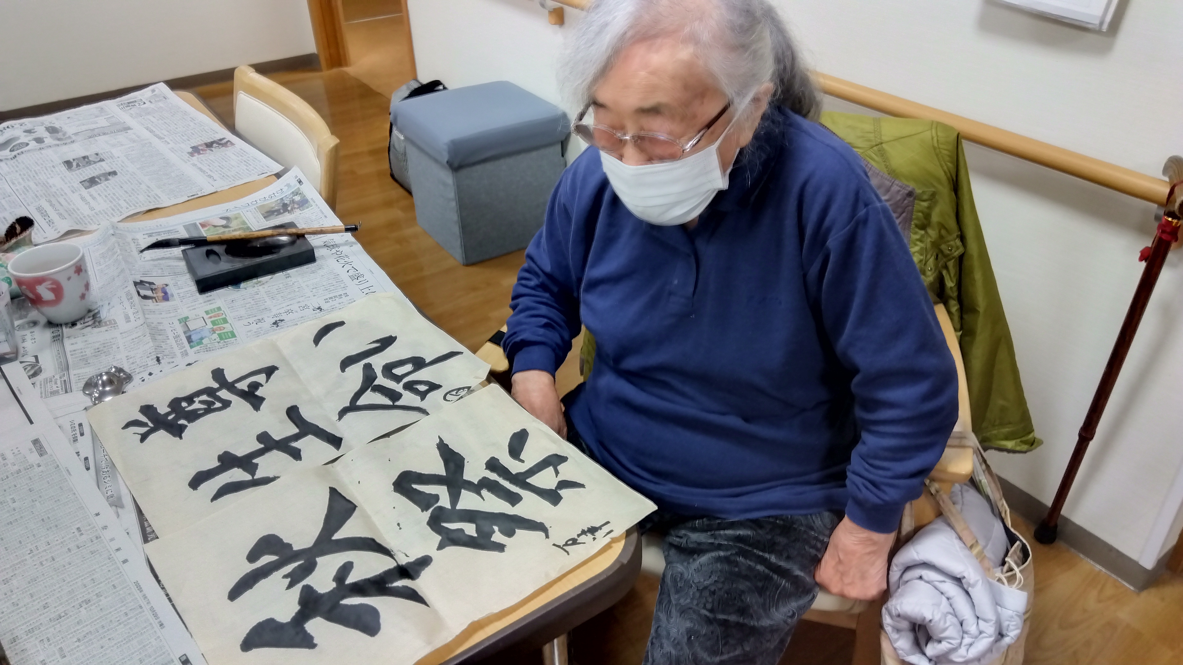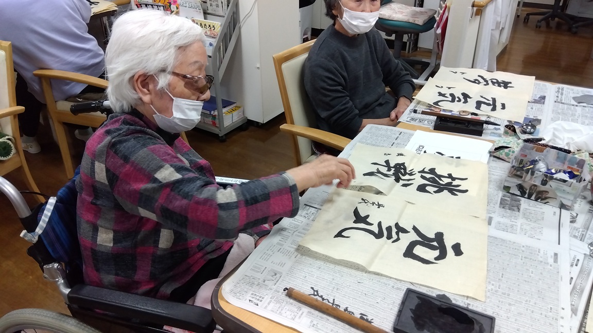 11月は日本文化に親しみましょう月間ということで習字をやってみました。わぁ~案外上手に書けたわ~!、昔はもっと綺麗に書けたのに~と色々なご意見も! それでも、やはり筆で字を書くのは良いものですね。この墨の匂いも心地よい☺☺