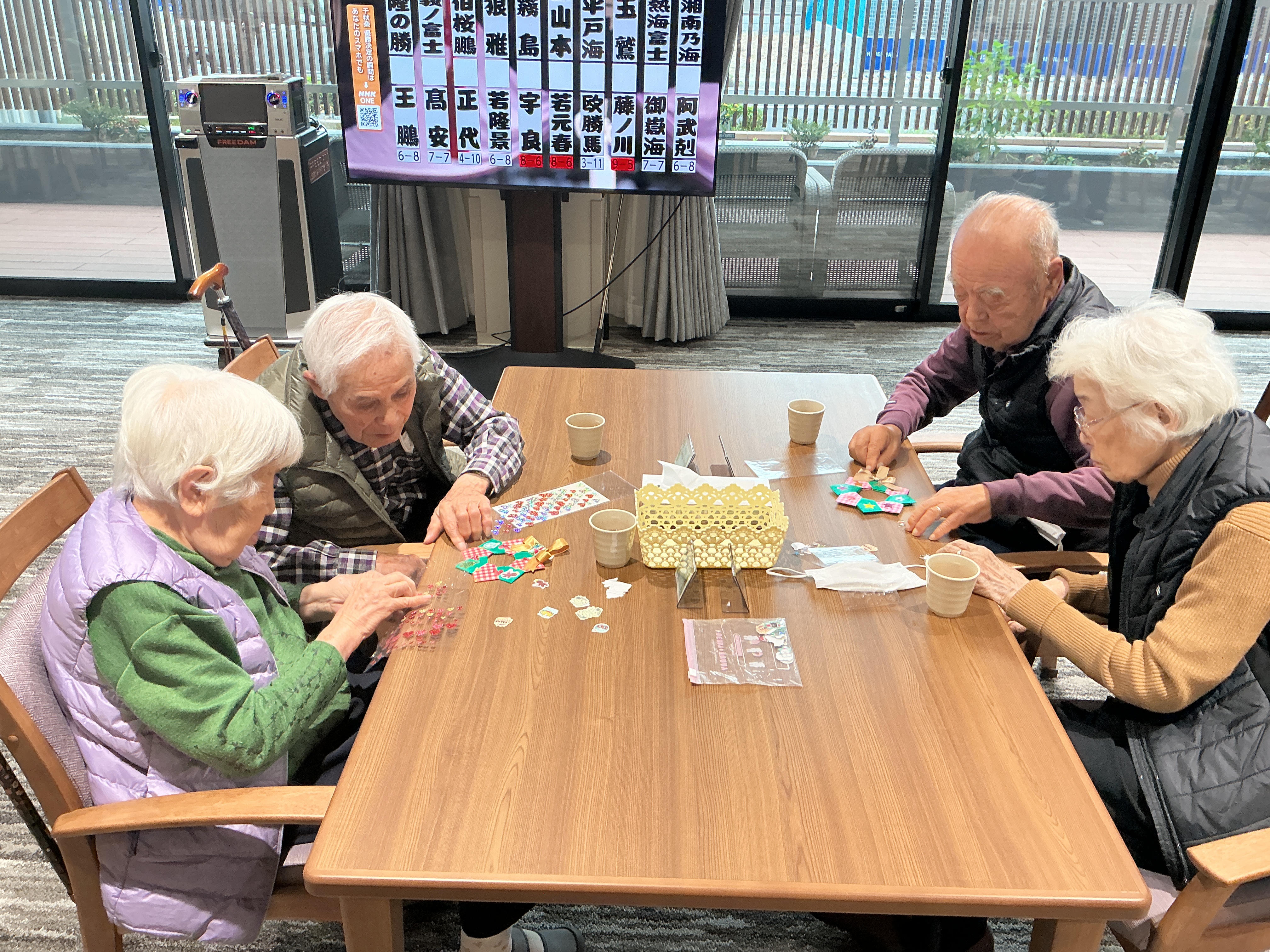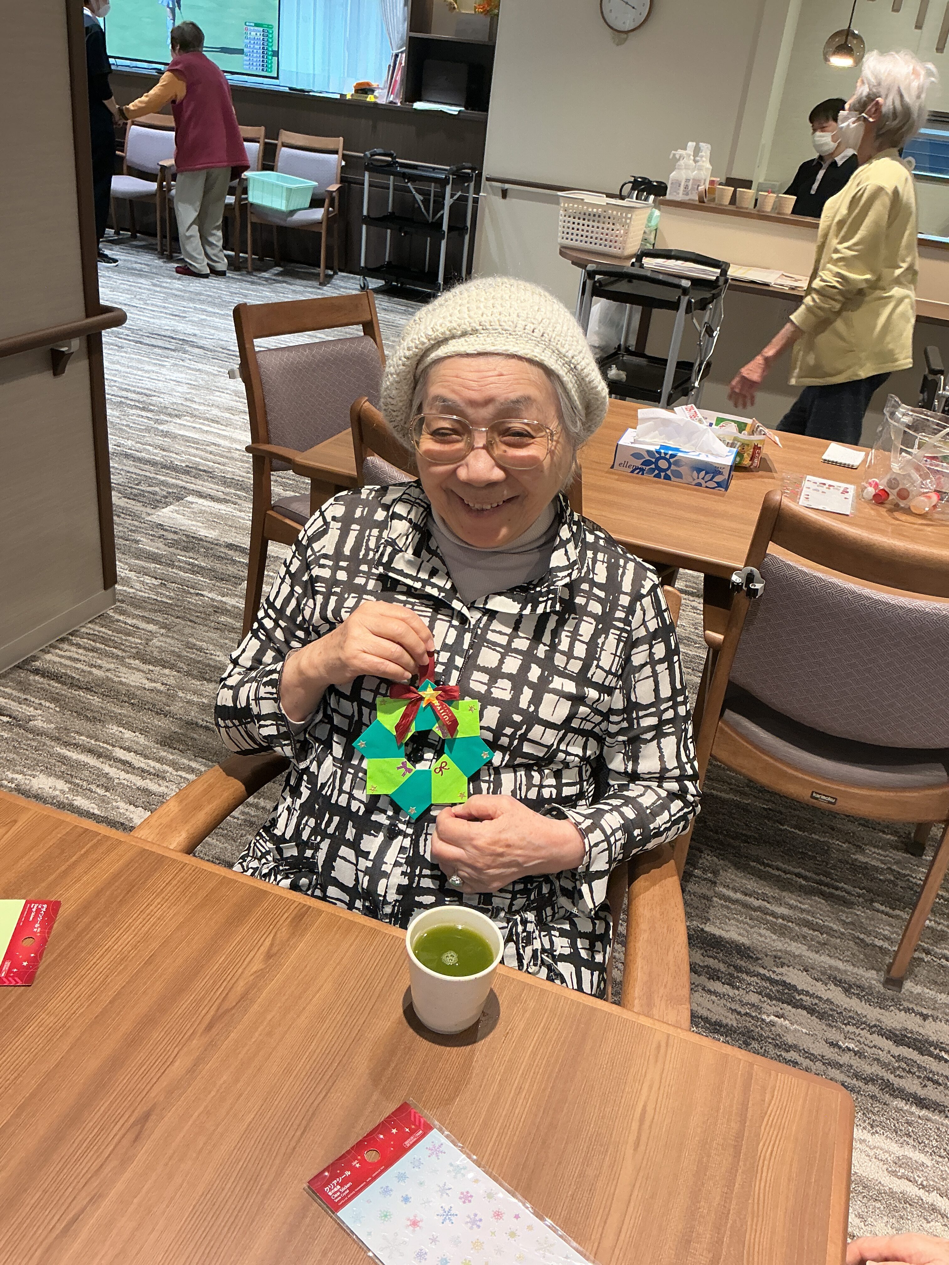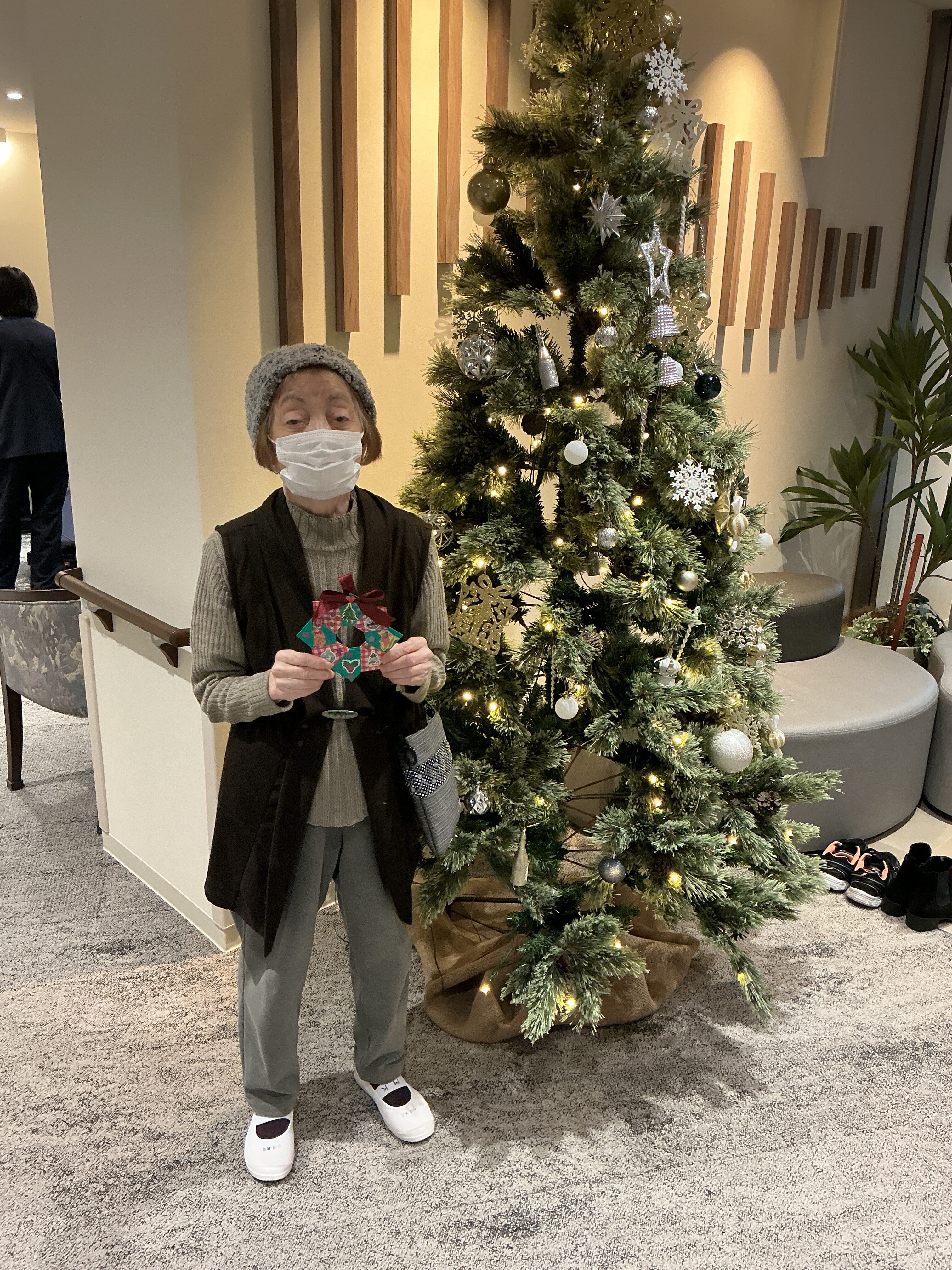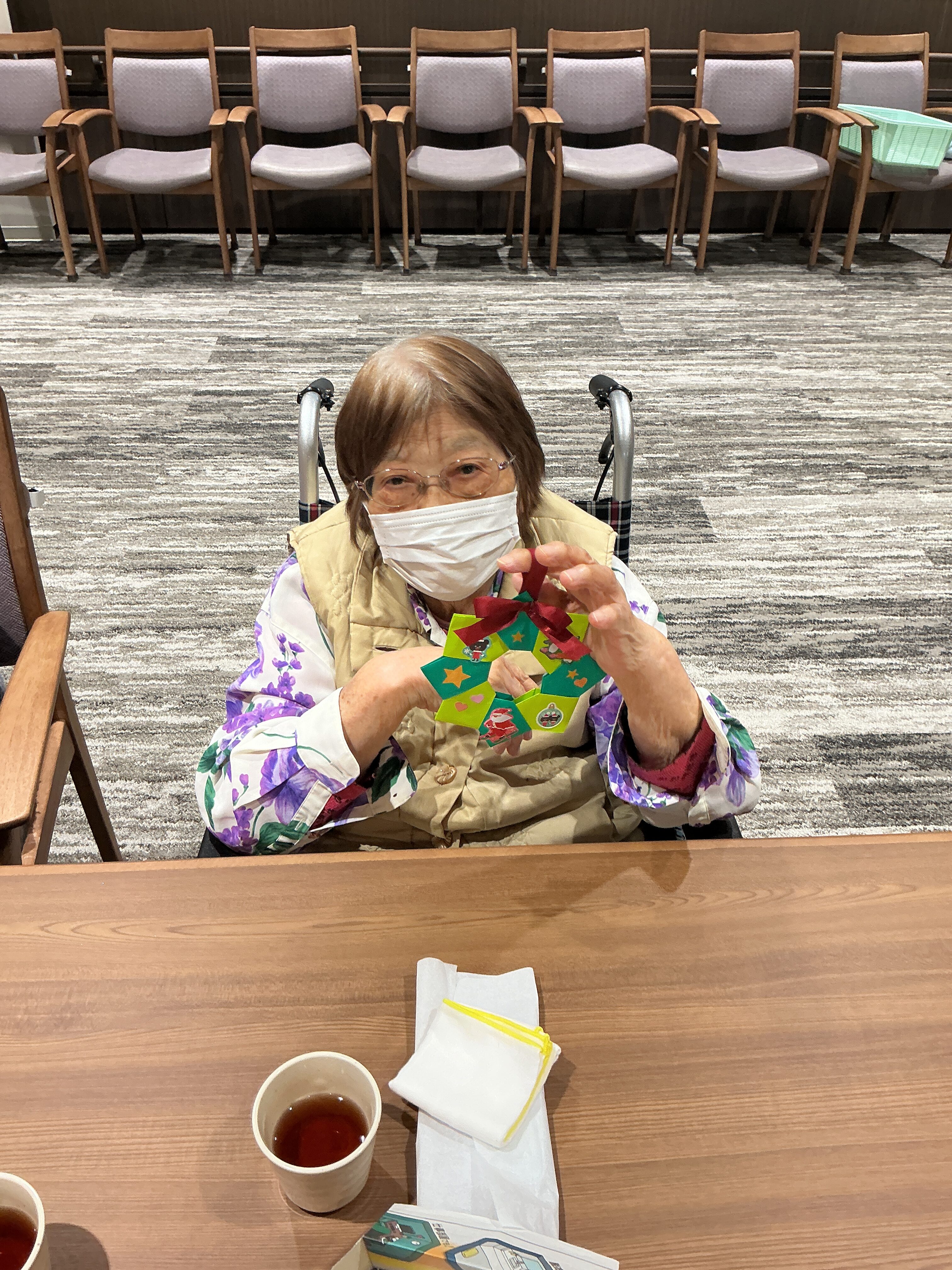折り紙を使用してリース作りを行いました♪ 可愛く上手に出来ました🤩