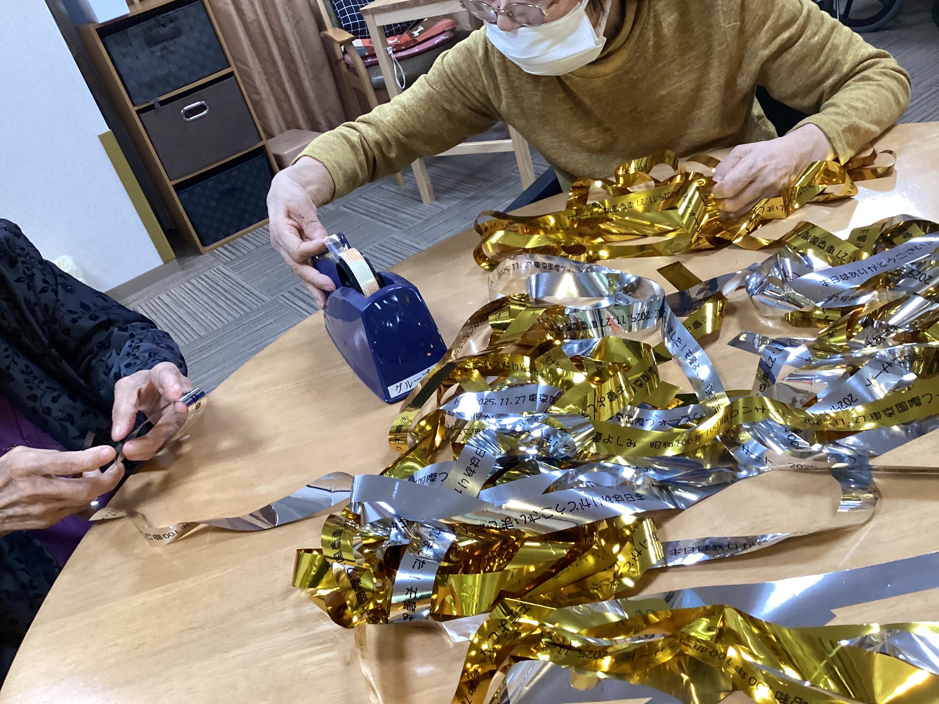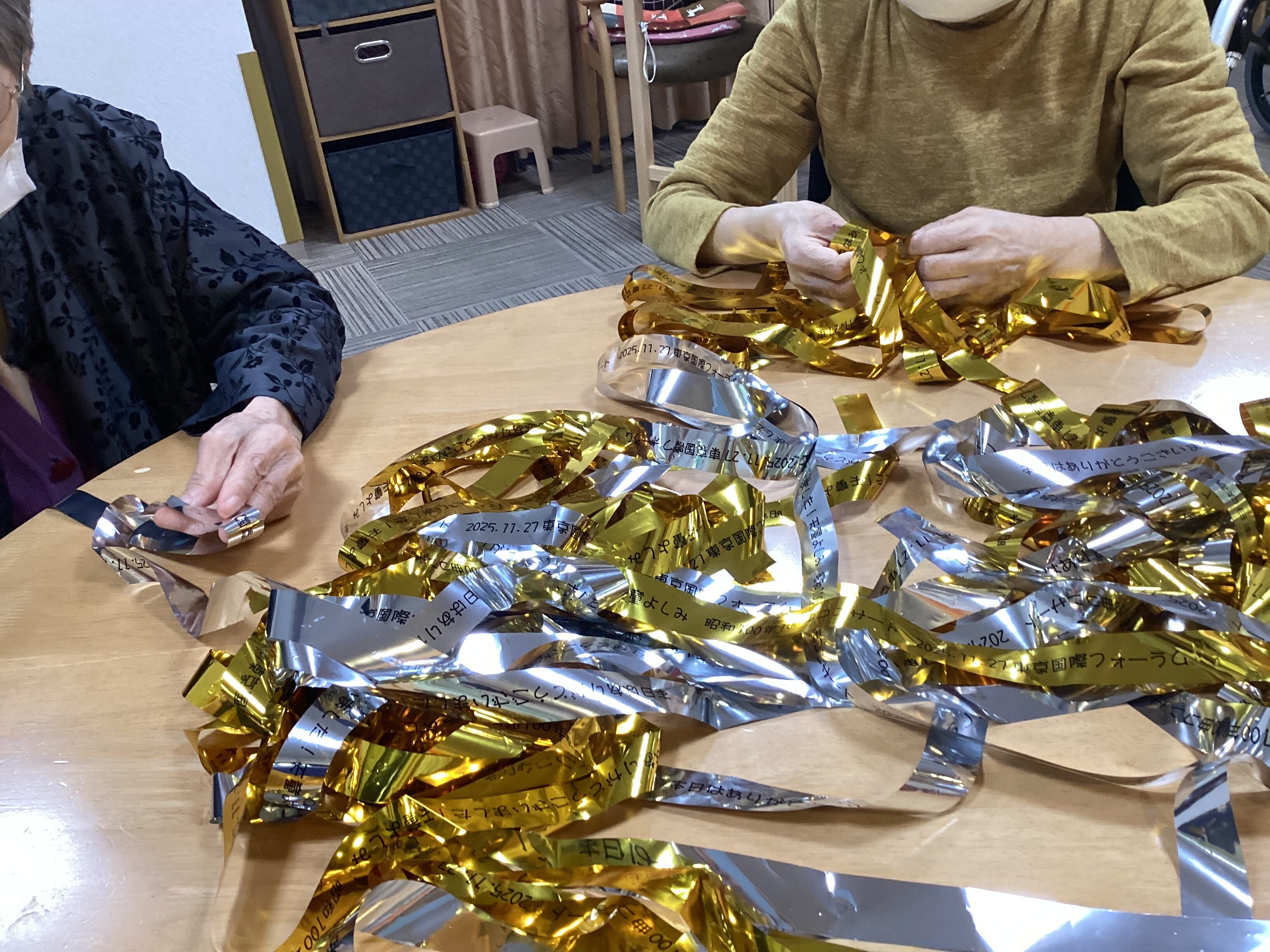 あっという間に11月が終わり、12月になりますね☺ハロウィンが終わったらもうクリスマスの準備! きらきらのテープをみんなで巻いてきれいなクリスマスツリーが完成しました🎄
