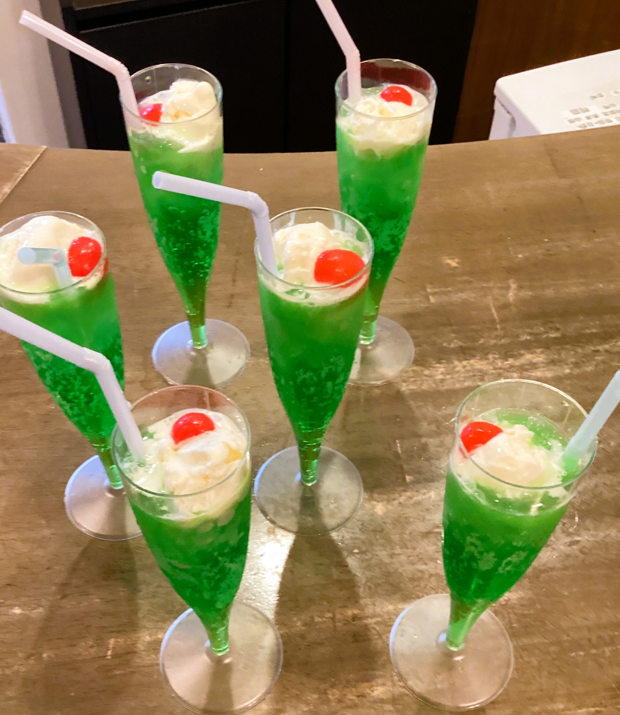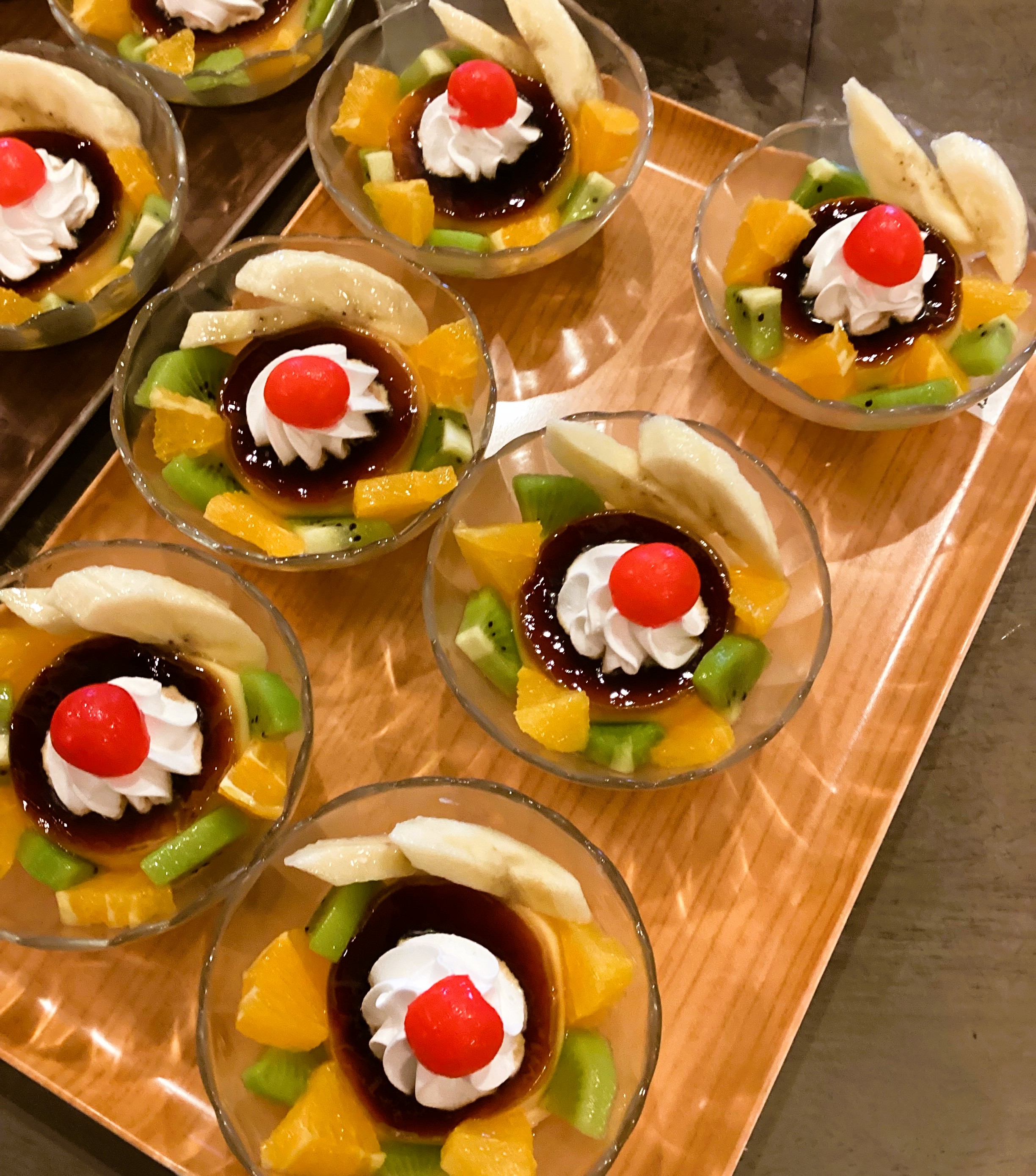 おやつの時間には、メロンソーダとプリンアラモードが提供され、こちらも大好評でした♪
