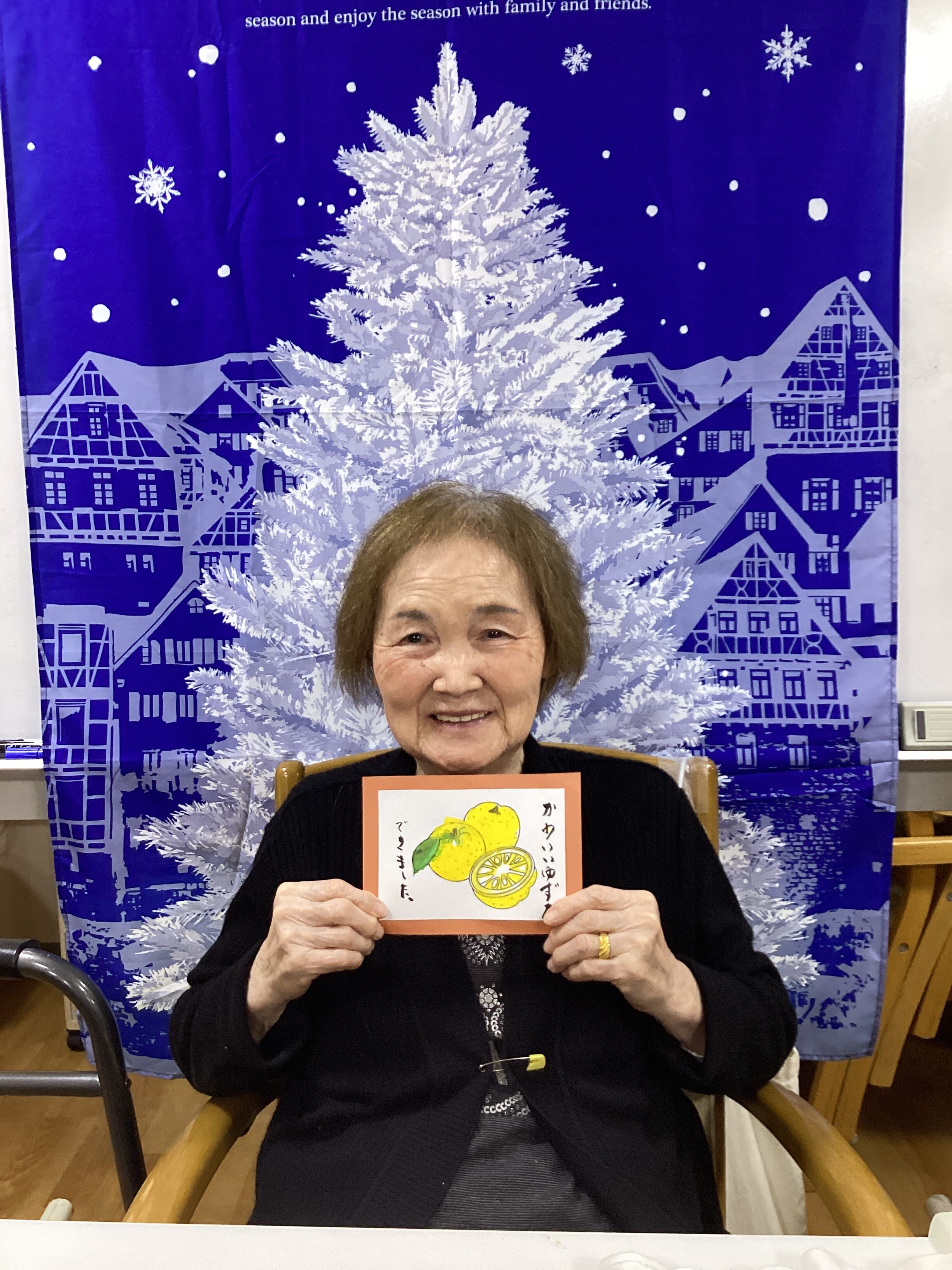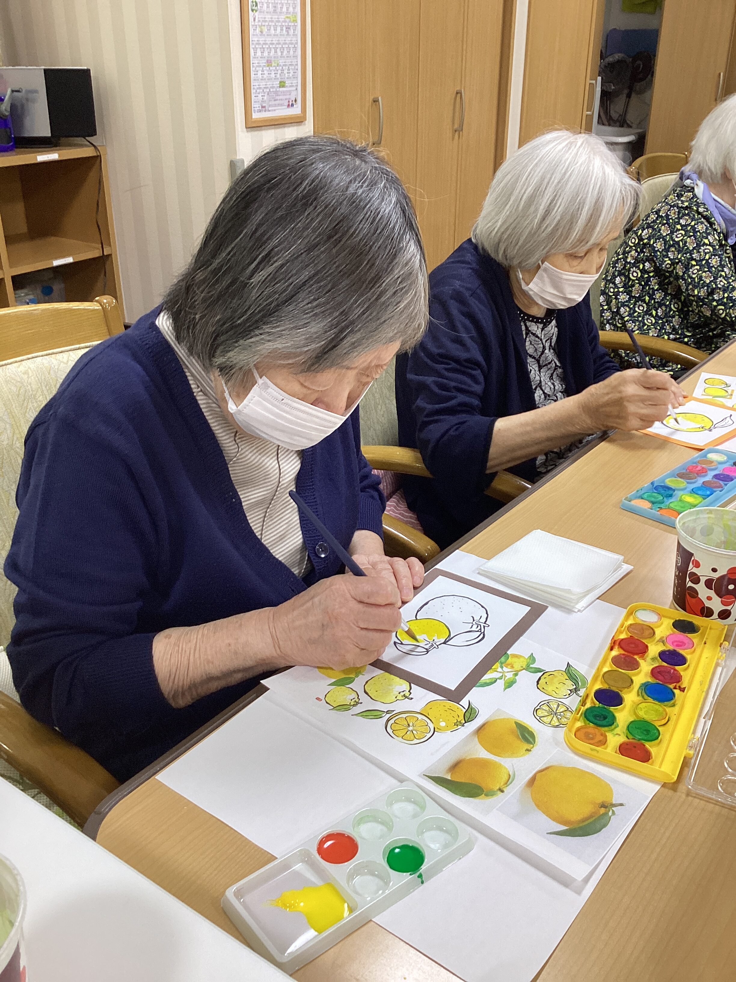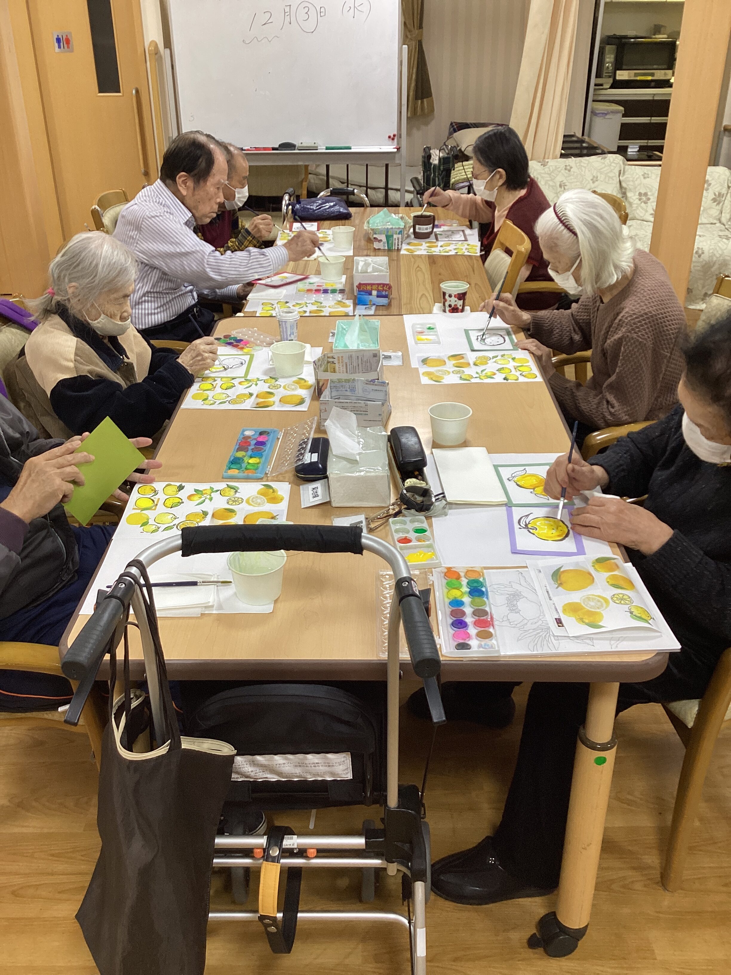 12月3日、「水彩塗り絵」を実施しました。素敵な柚子のえが出来上がりました!