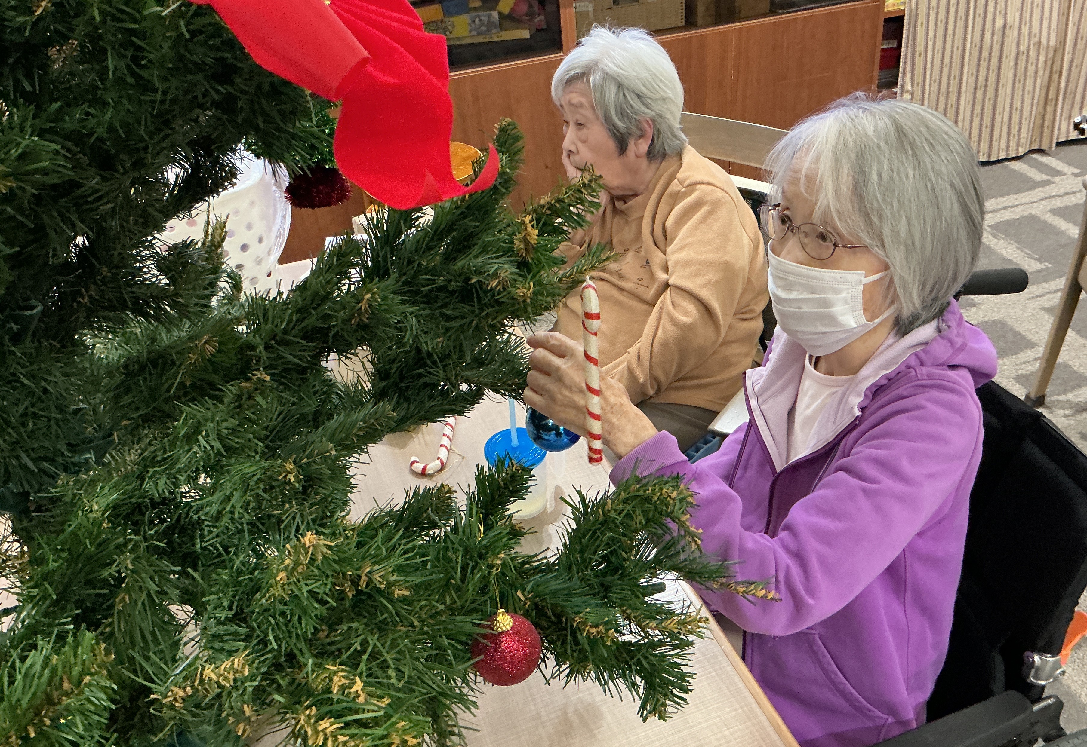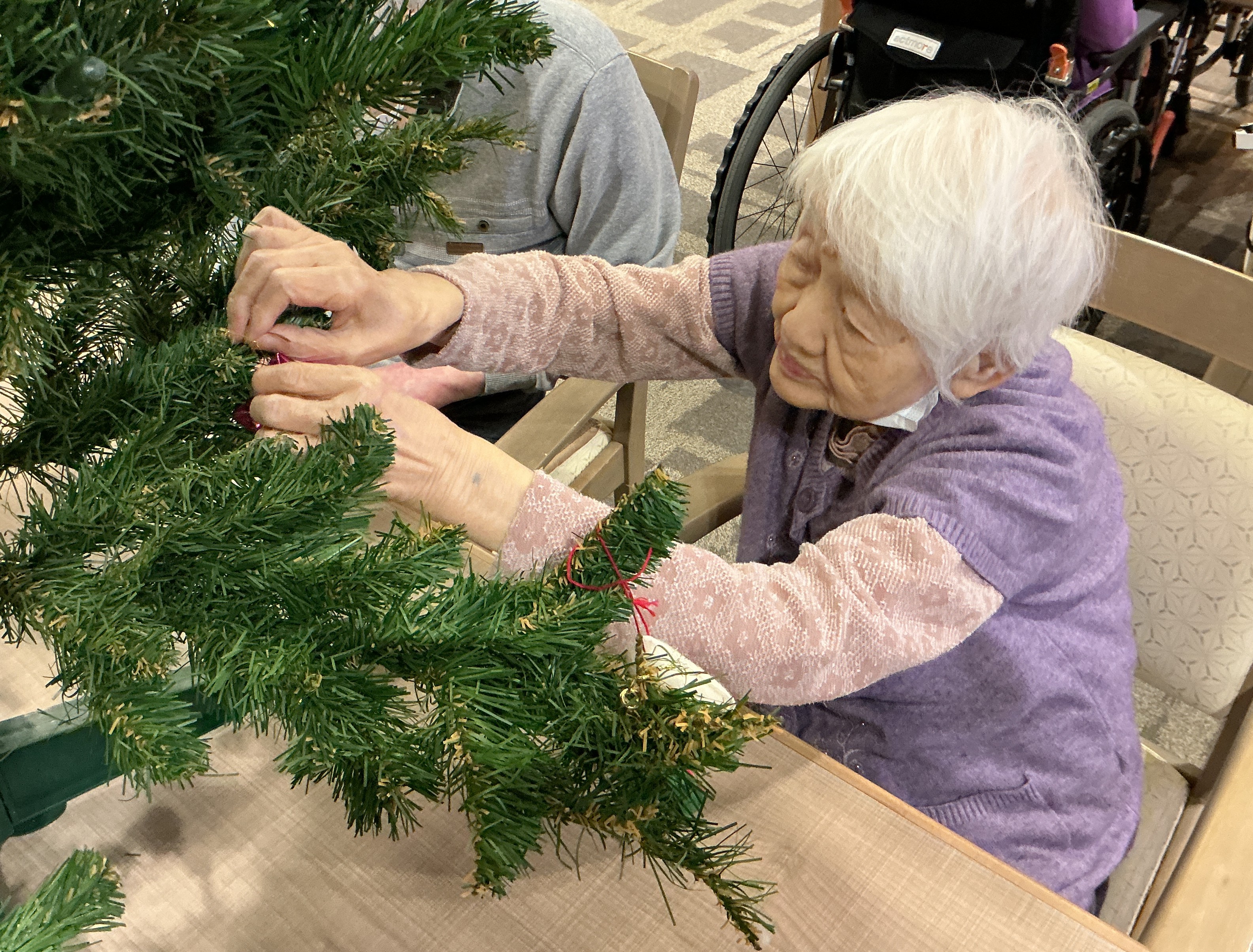 12月といえばクリスマス!けやき苑ではクリスマスに向けてけクリスマスツリーを囲って飾りつけを行いました!12月に入り寒さも本格的になってまいりましたが、体調に気を付けて元気にお過ごしください😌