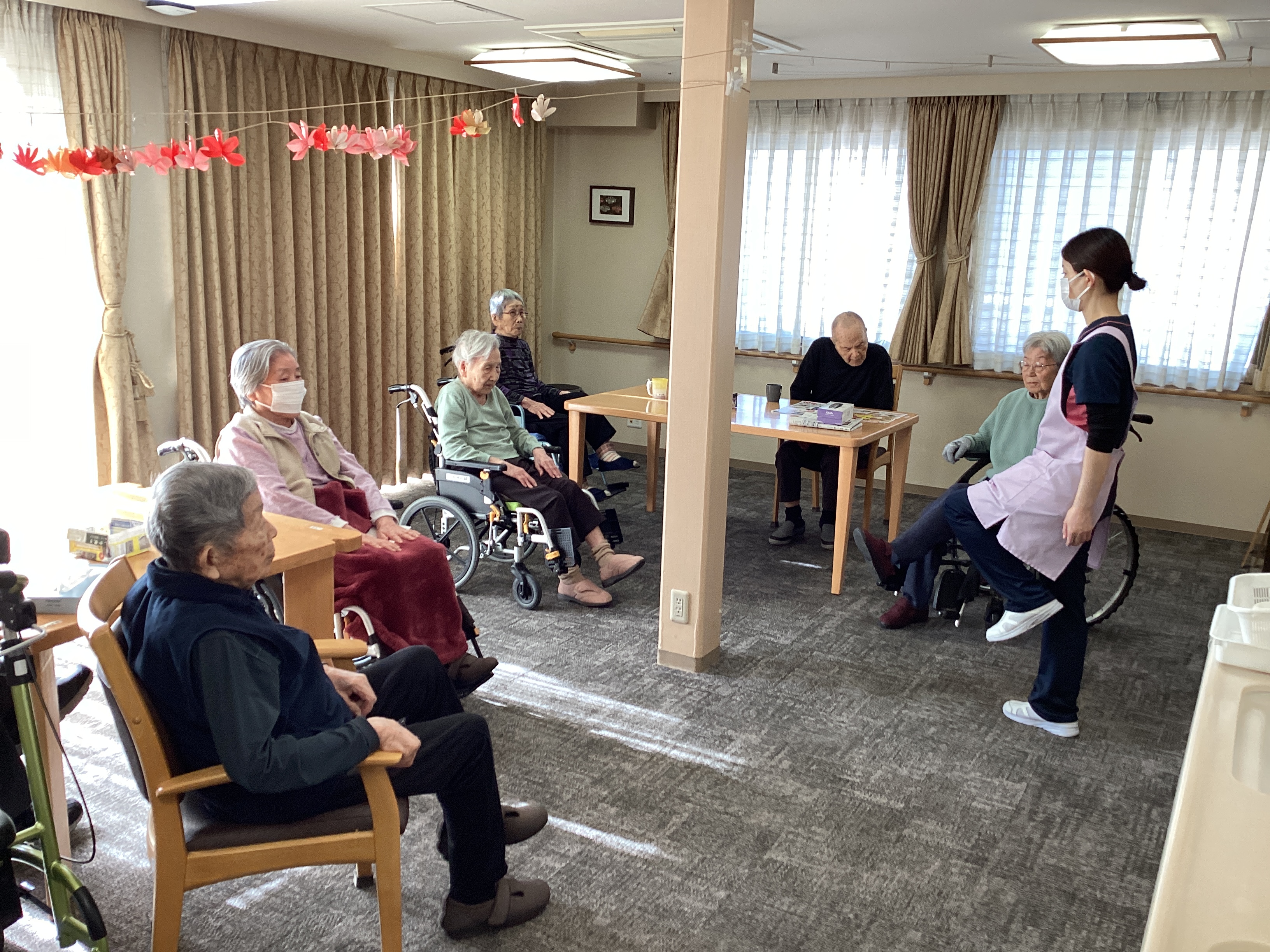 毎朝10時から、看護師さんと一緒にリハビリ体操を行います。 継続は大切なことですね・・・