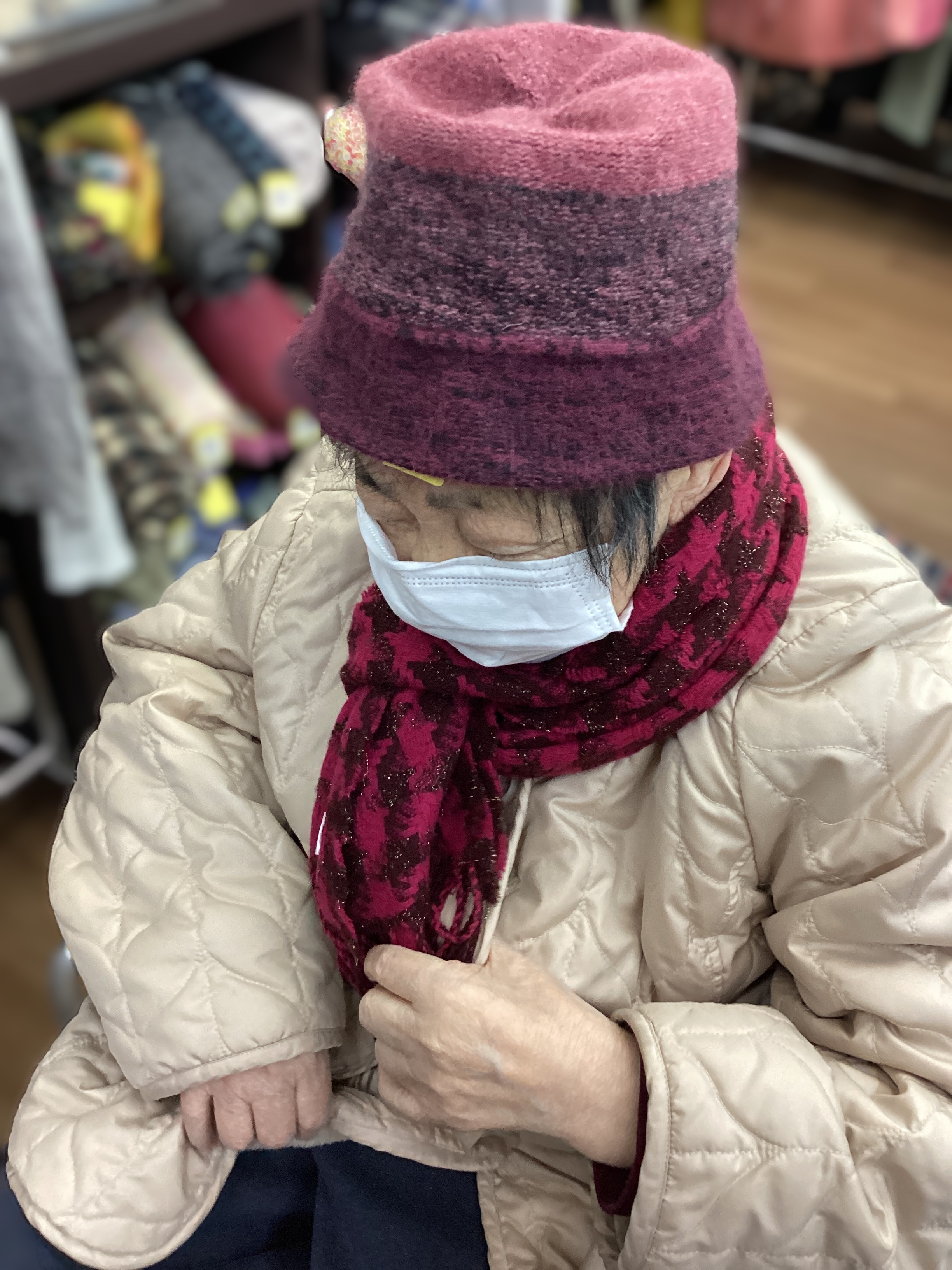 🧣🧥今年2回目の買い物同行イベントを行いました🧣季節柄(冬服)が店頭に多く並ぶ店内🧥暖かい洋服を探して🧣マフラーと🧶ニット帽子を購入👒暖かいマフラーをつけてにっこり笑顔でした🧤