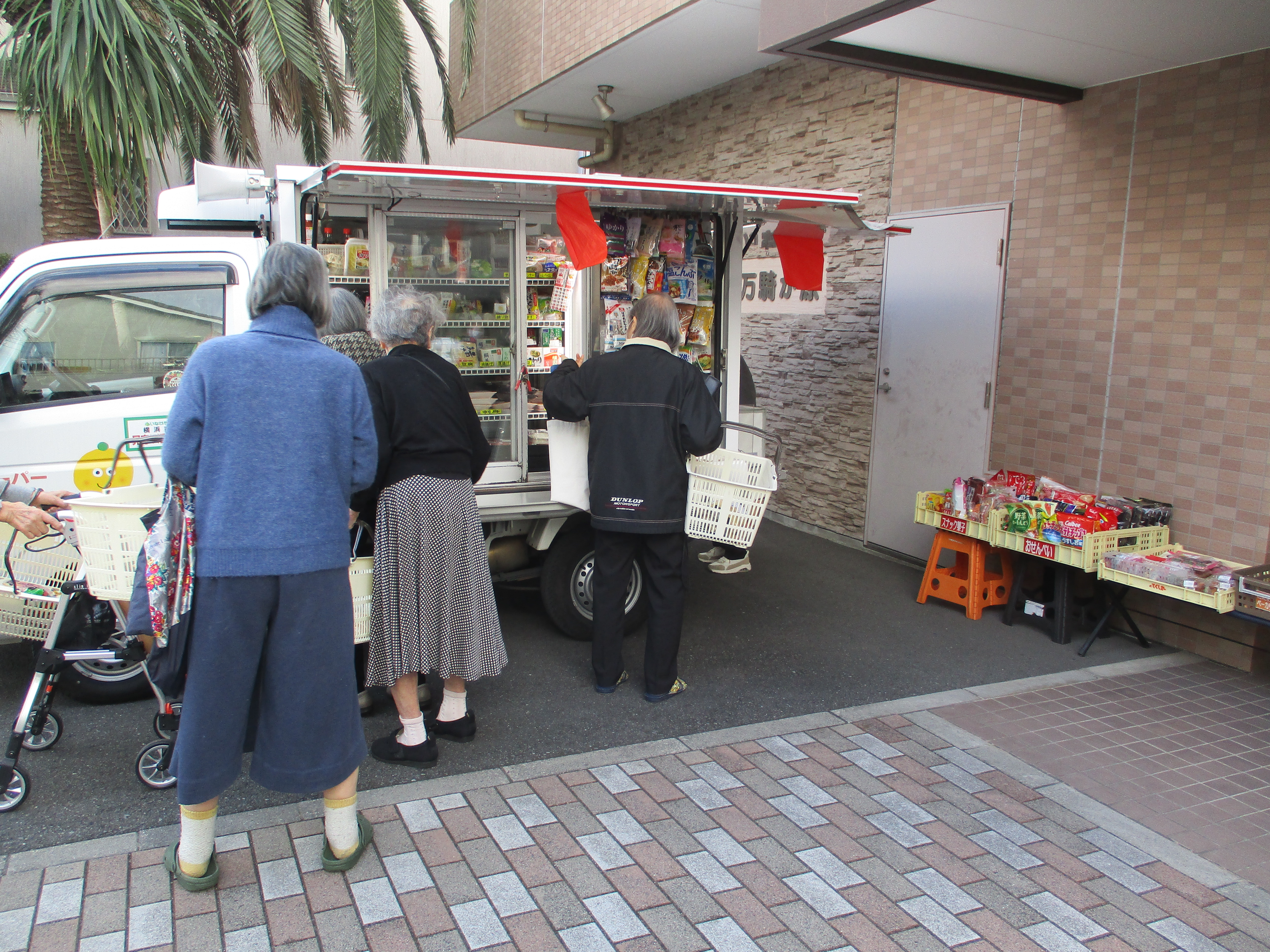 今月から毎週土曜日に移動スーパーの『とくし丸」が来てくれることになりました。 品揃えも豊富で、ご入居の皆さん喜んでお買い物をしていました。