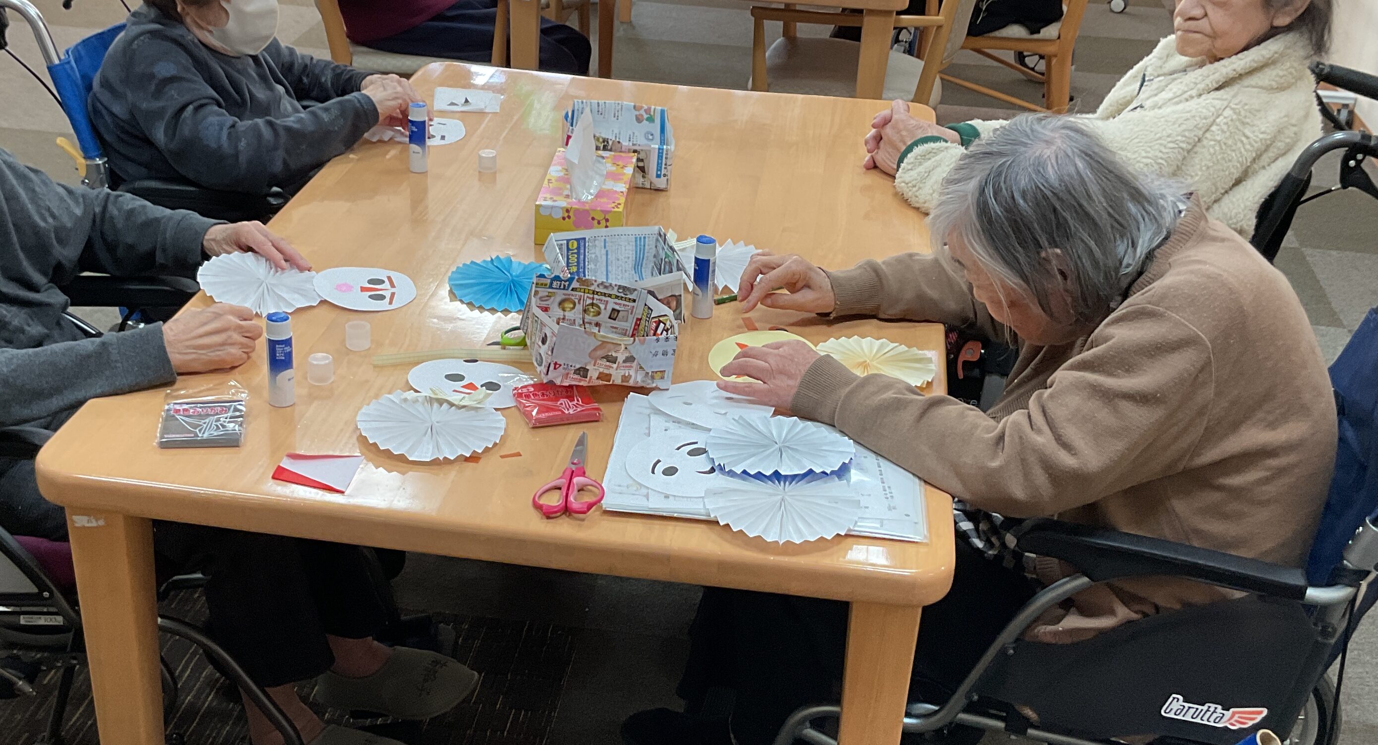 今回はみんなでフロアの飾りつけを作成しました☃️ それぞれの思いのままに個性豊かな雪だるまたちが完成! フロアを賑やかにしてくれています😆