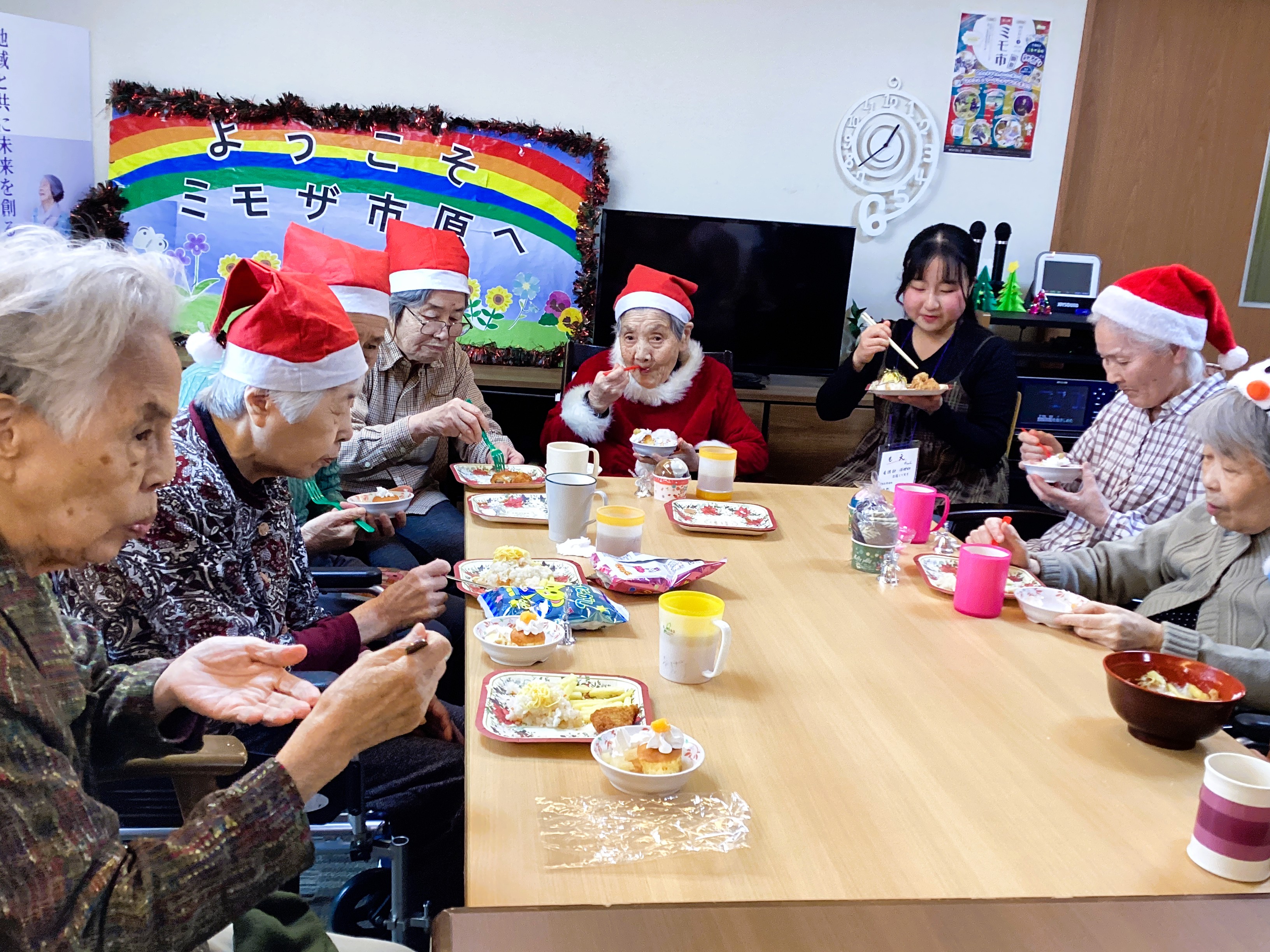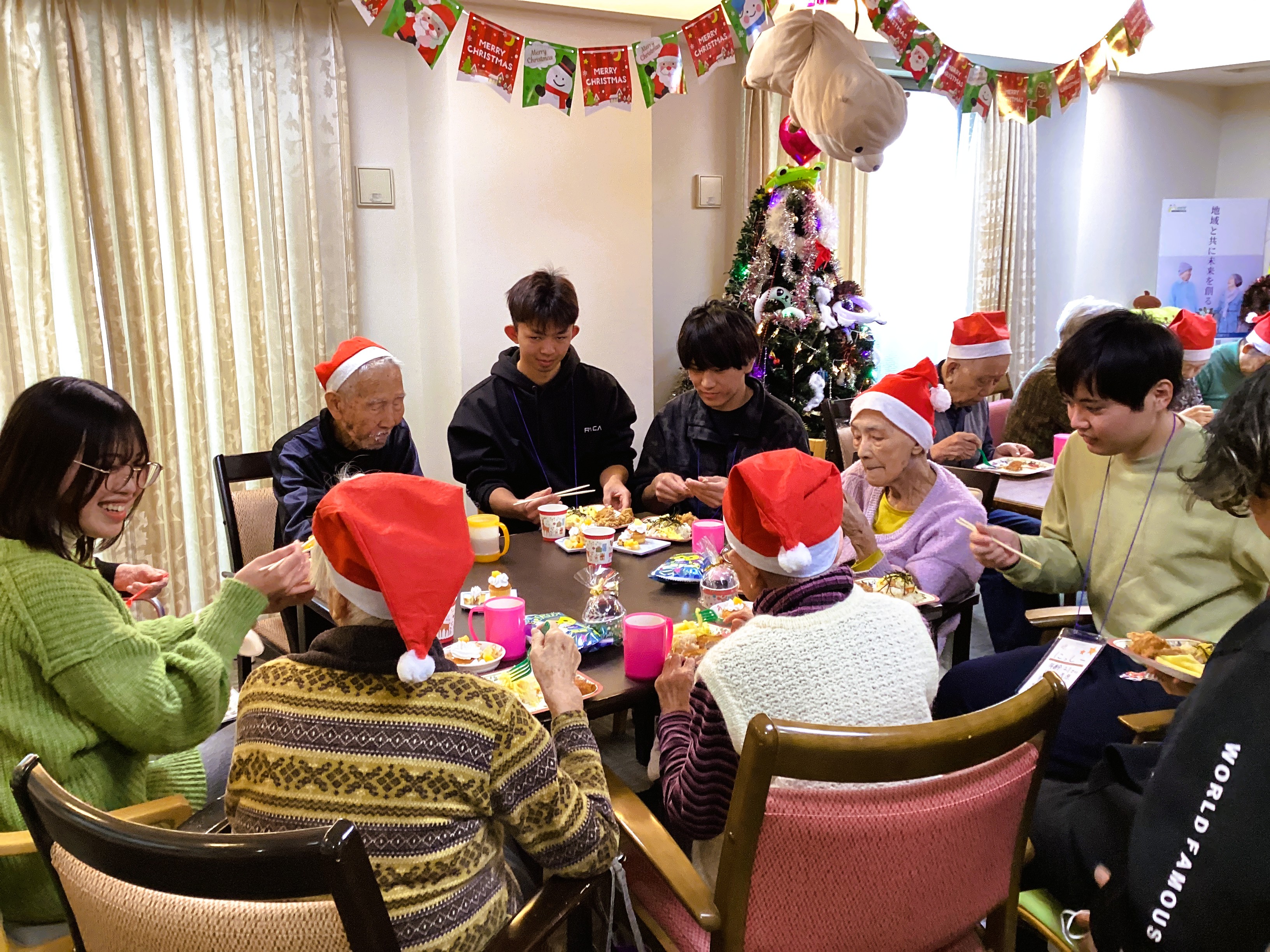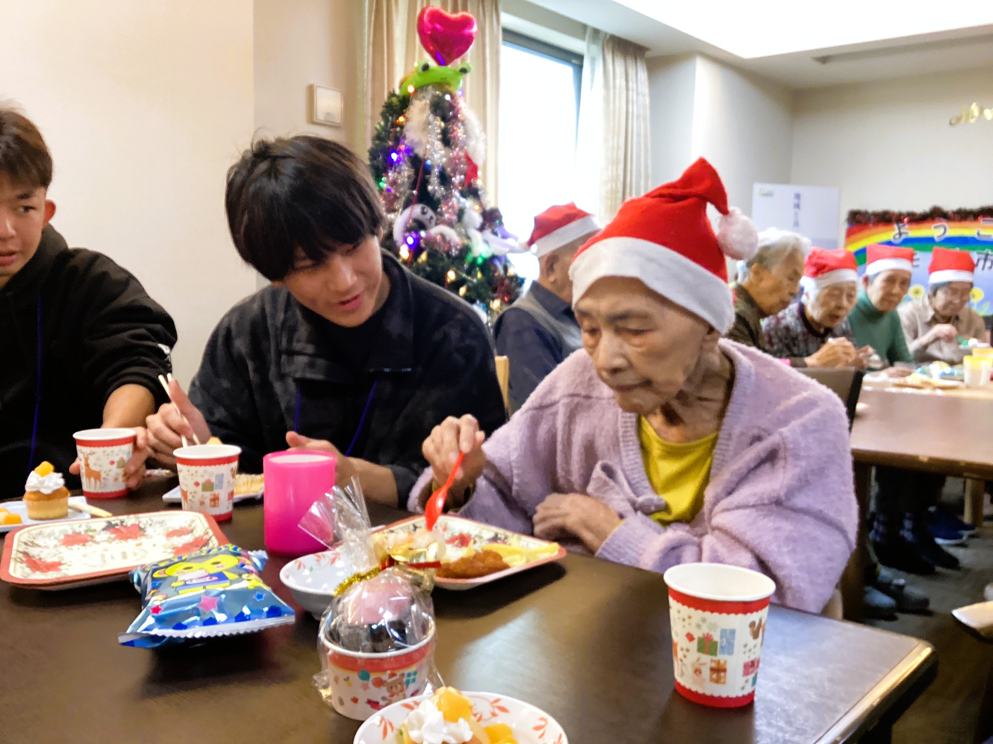 プレゼントを貰った後は学生さん達とご利用者様でご馳走タイム!! 美味しさ倍増💛 またみんなで一緒に食卓を囲めたらいいな🎶