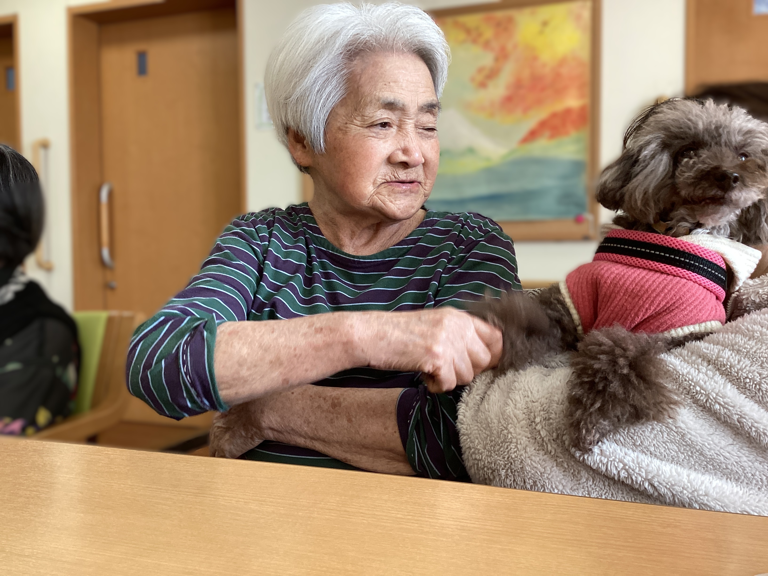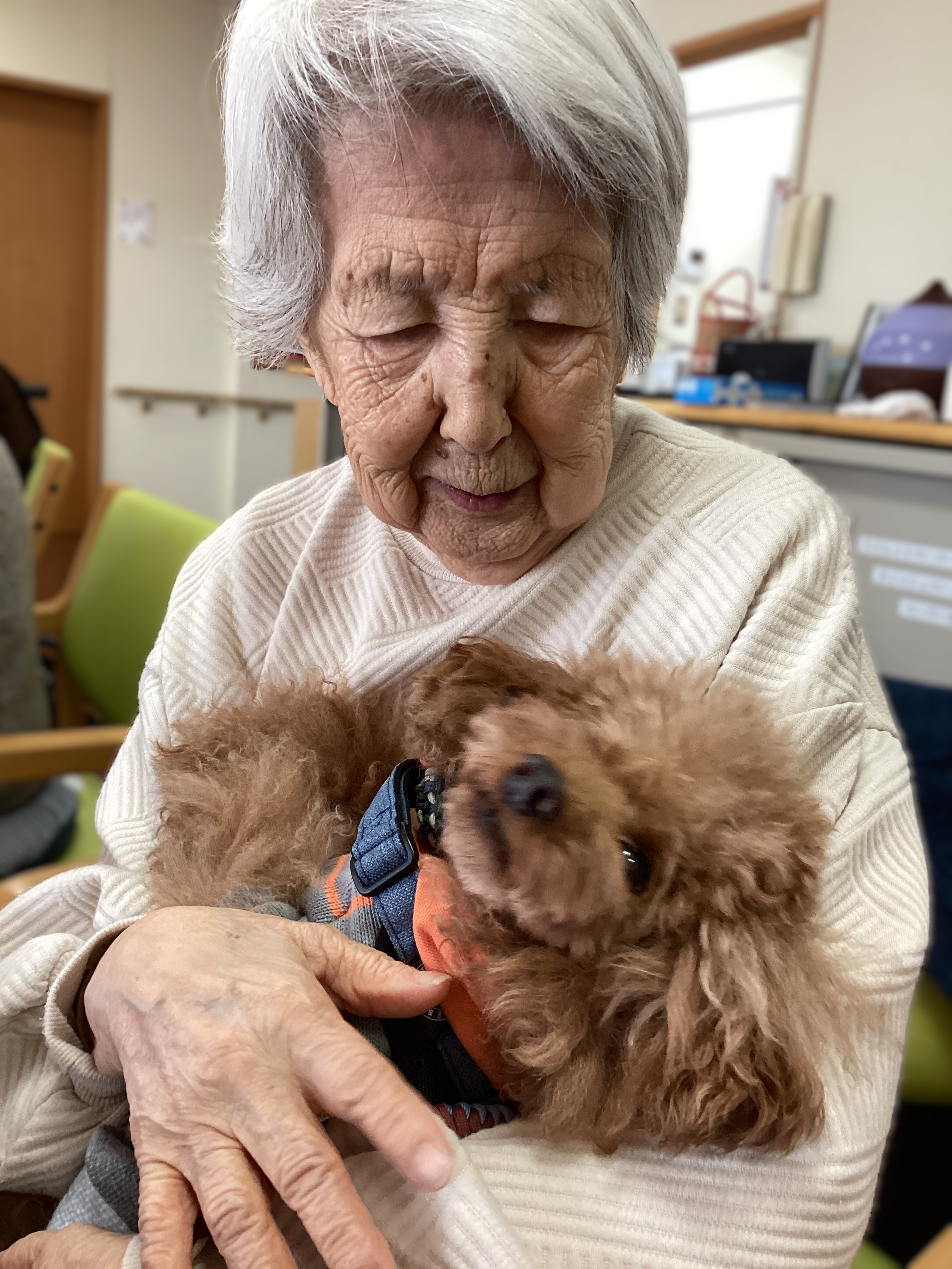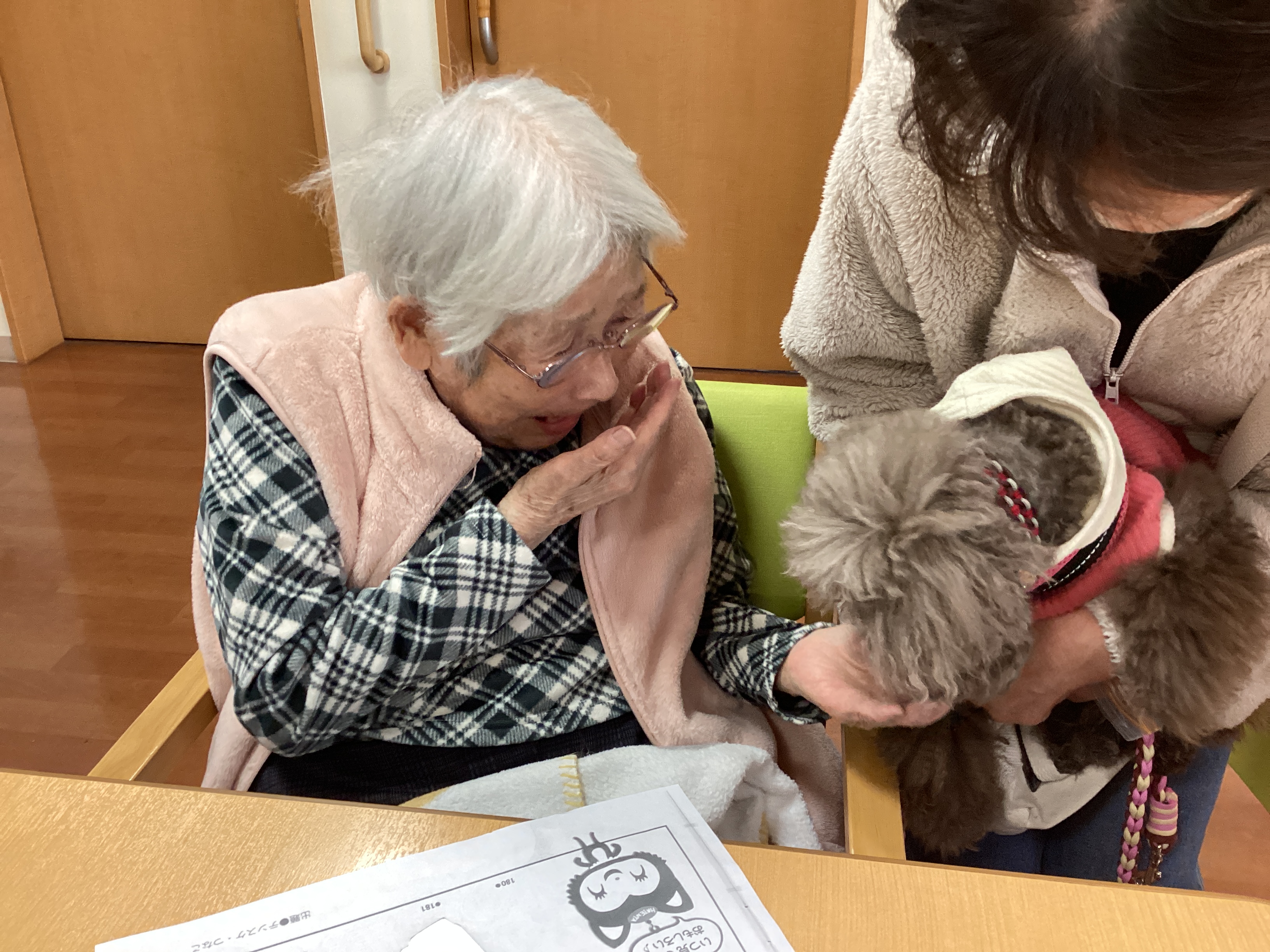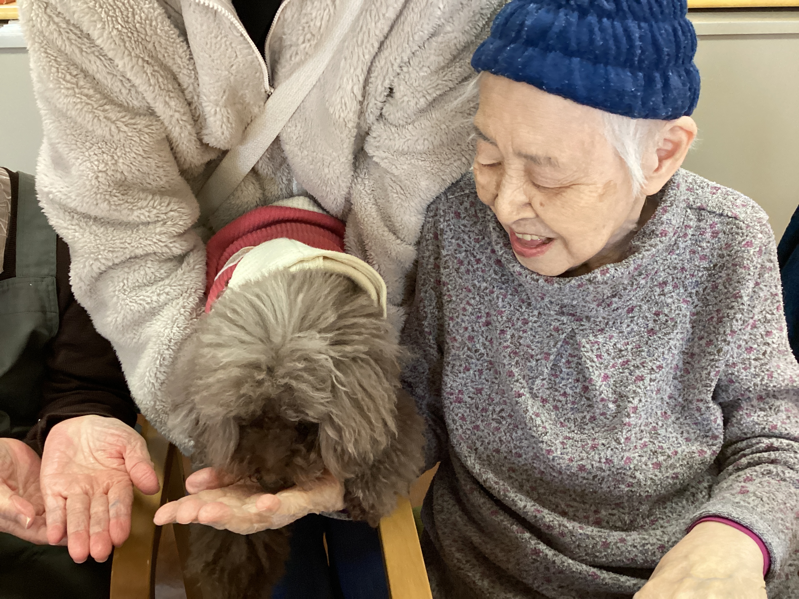 昔、ご自宅でペットを飼っていたご利用者も多く、皆様顔をほころばせながら束の間のふれあいタイムを楽しんでいらっしゃいました♪