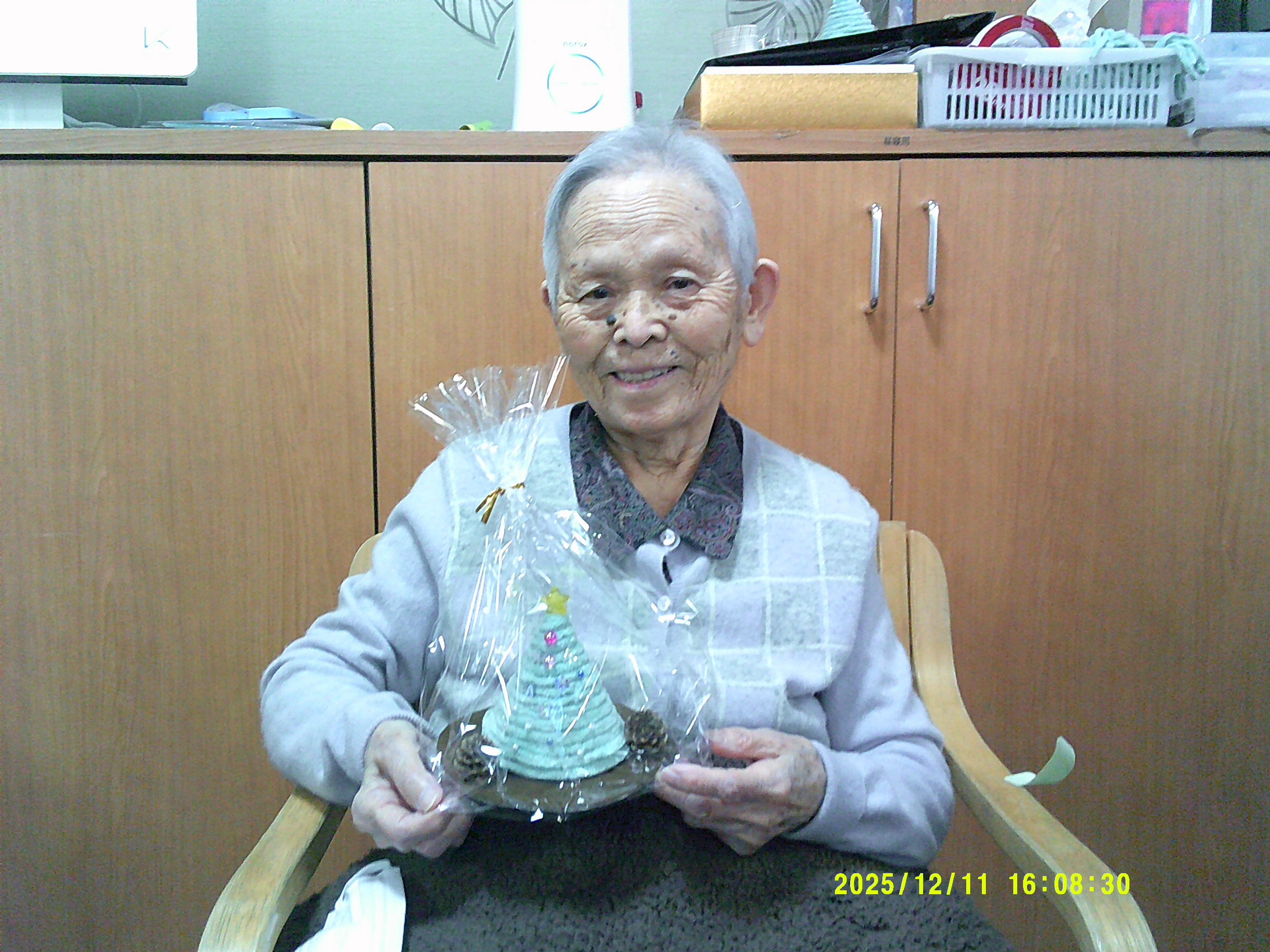今月の手作りレクは、『クリスマスツリー🎄』毛糸をくるくる貼って、飾りをボンドでくっつけました😄作り終わったら、スタッフがラッピングして、 お渡しさせていただきました😄みなさん、おうちで飾っていただけると嬉しいです😄