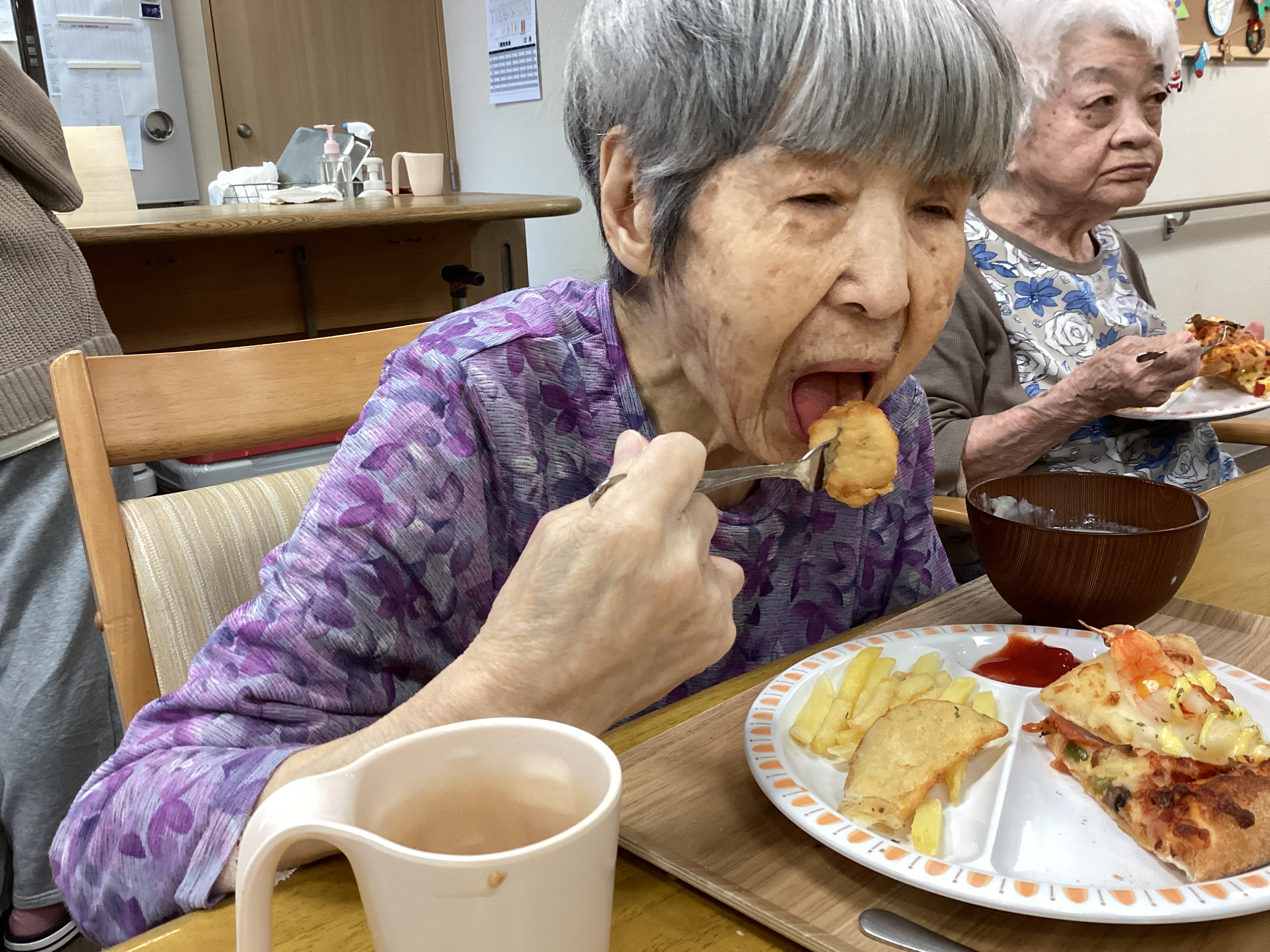 12月9日火曜日ランチレクはピザでした🎵 準備は時間かかるけど食べ始まると…あっと言う前にお皿が空っぽでした笑 メニューは🫱ピザ、フライドポテト、ナゲット、唐揚げ、そして調理スタッフ特製クラムチャウダー!皆さん、お腹いっぱい食べましたよ😊