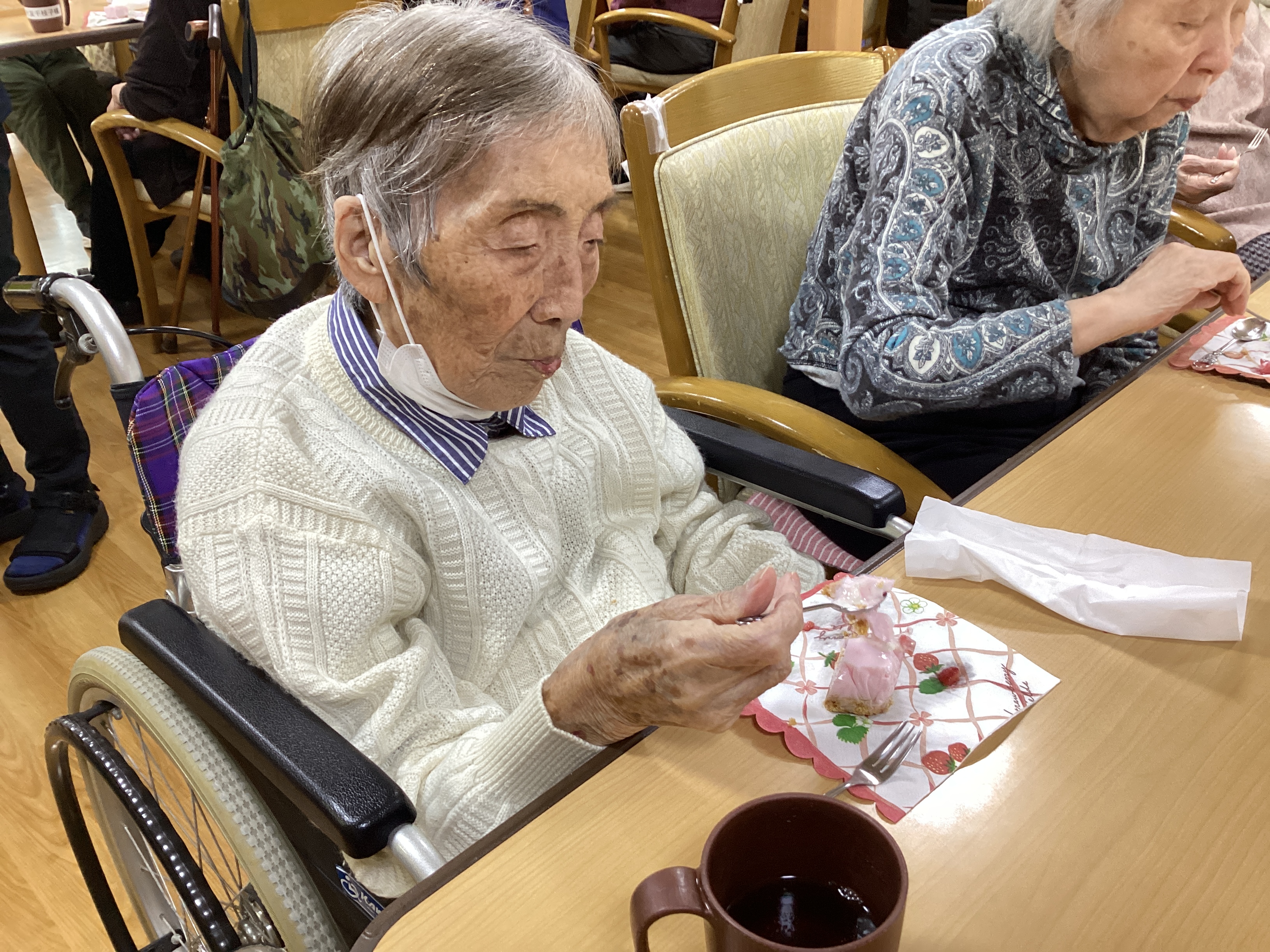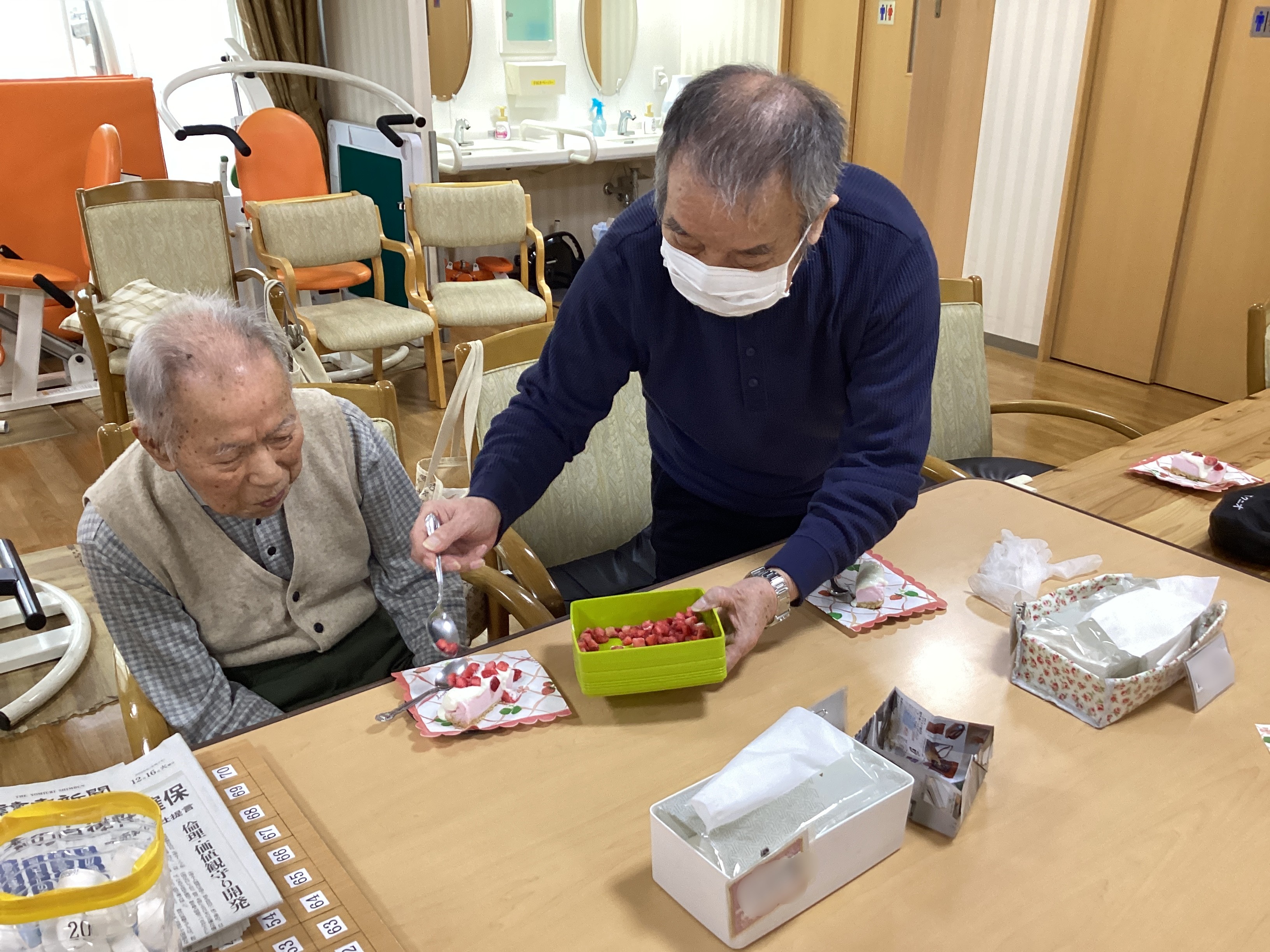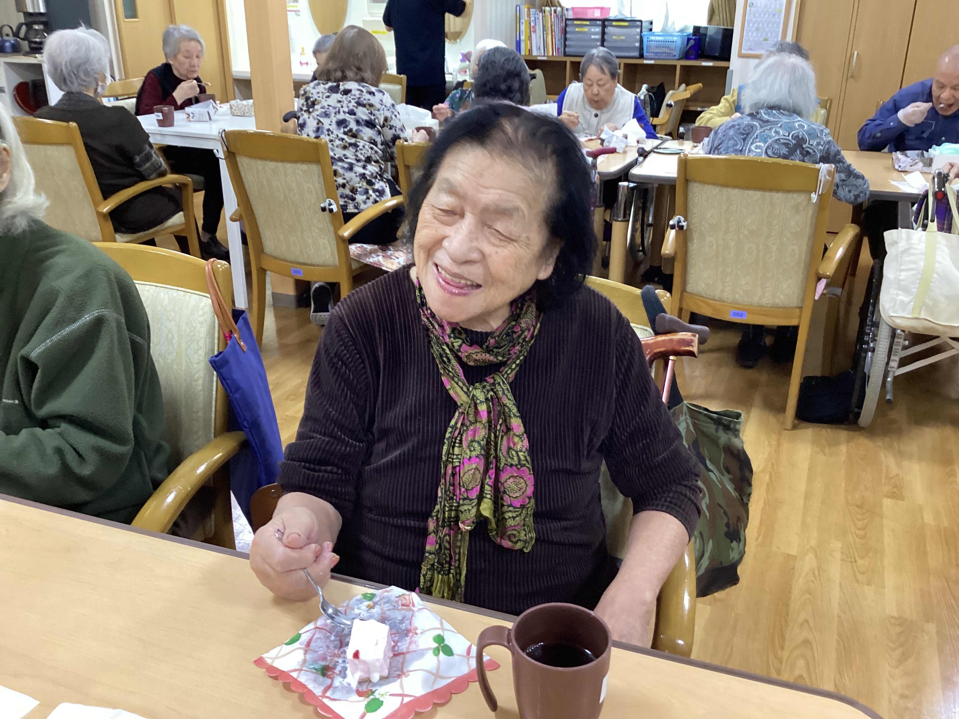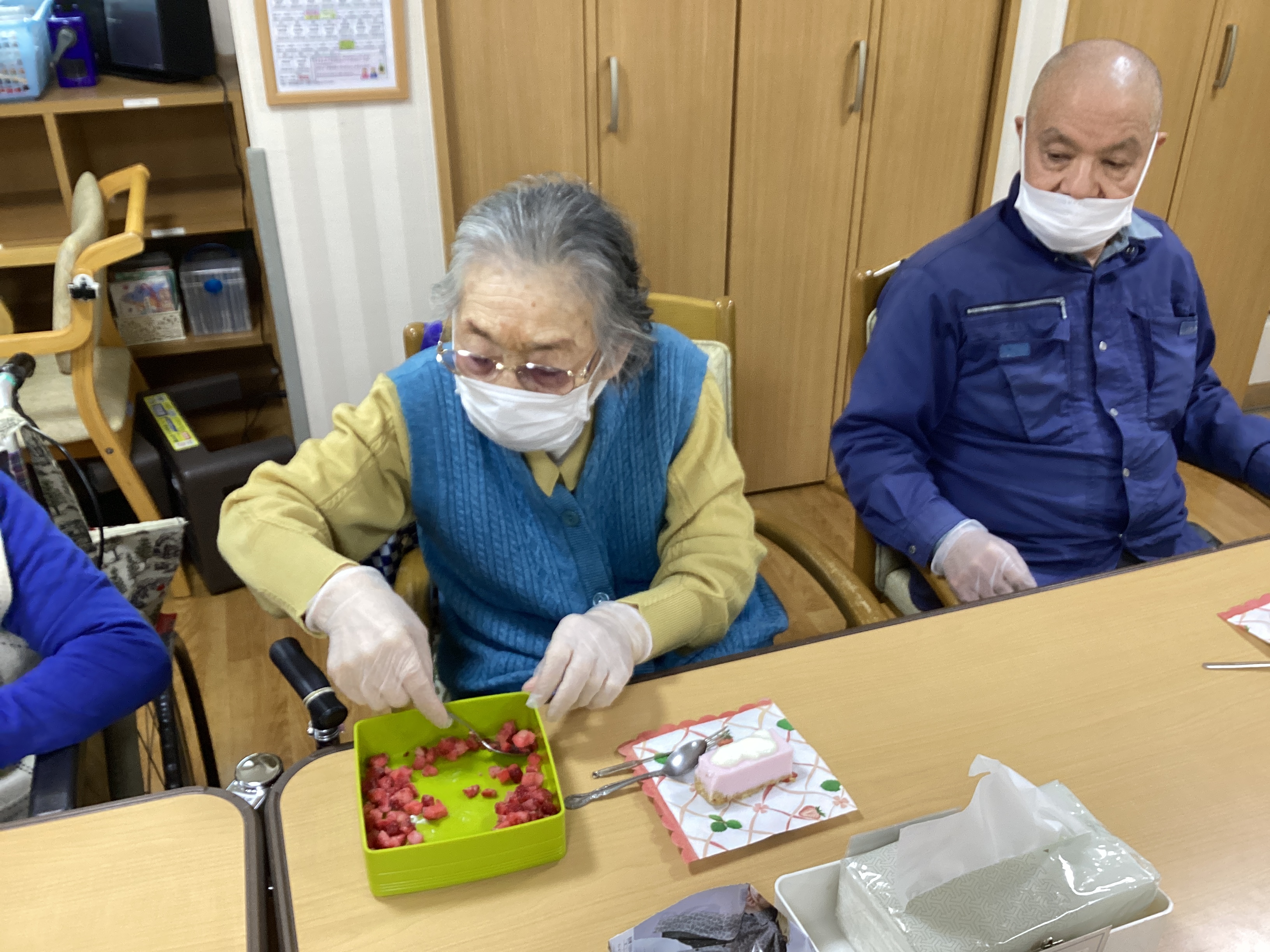 12月16日におやつレクで「いちごババロアケーキ」を作りました。 皆さんで協力して美味しいケーキが出来上がりました!