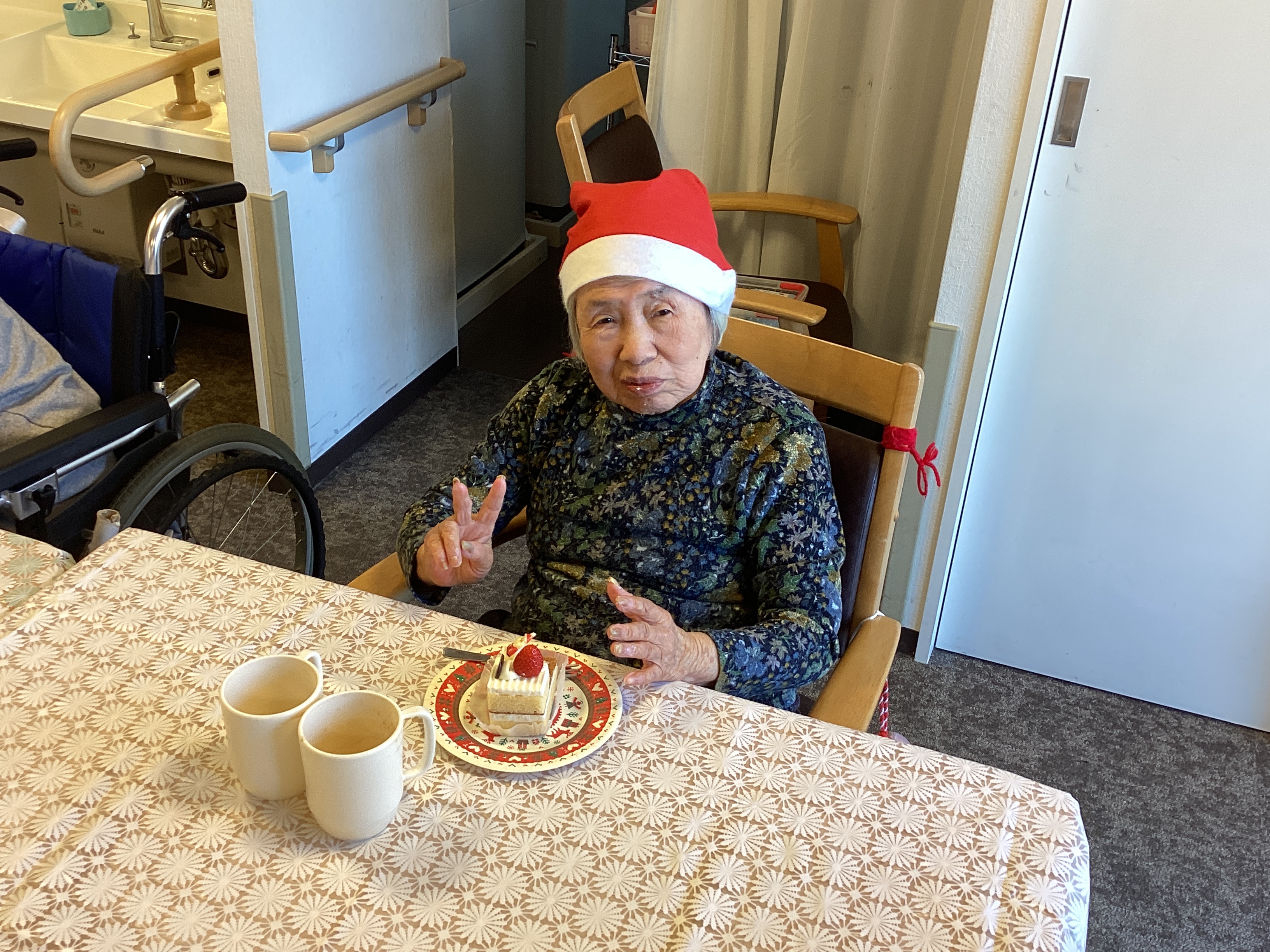 12/17 ミモザ藤沢では今年もクリスマス会を開催しました。 今年はじゃんけん大会を開催したり、ピアノの生演奏で皆さんでクリスマスソングを歌ったりしました。ケーキも召し上がり、サンタさんからのプレゼントもあり皆さんとても楽しそうに過ごされていました!