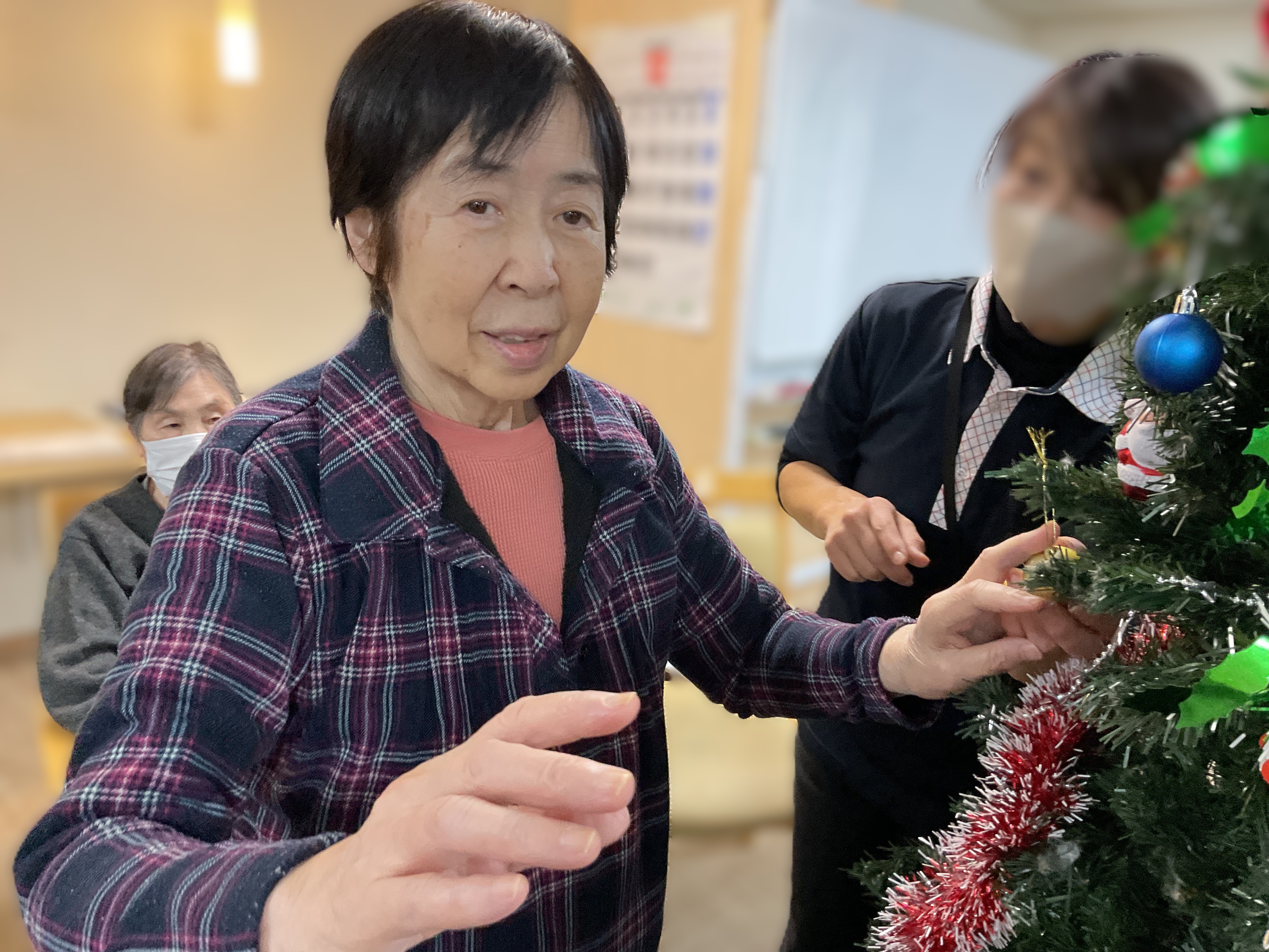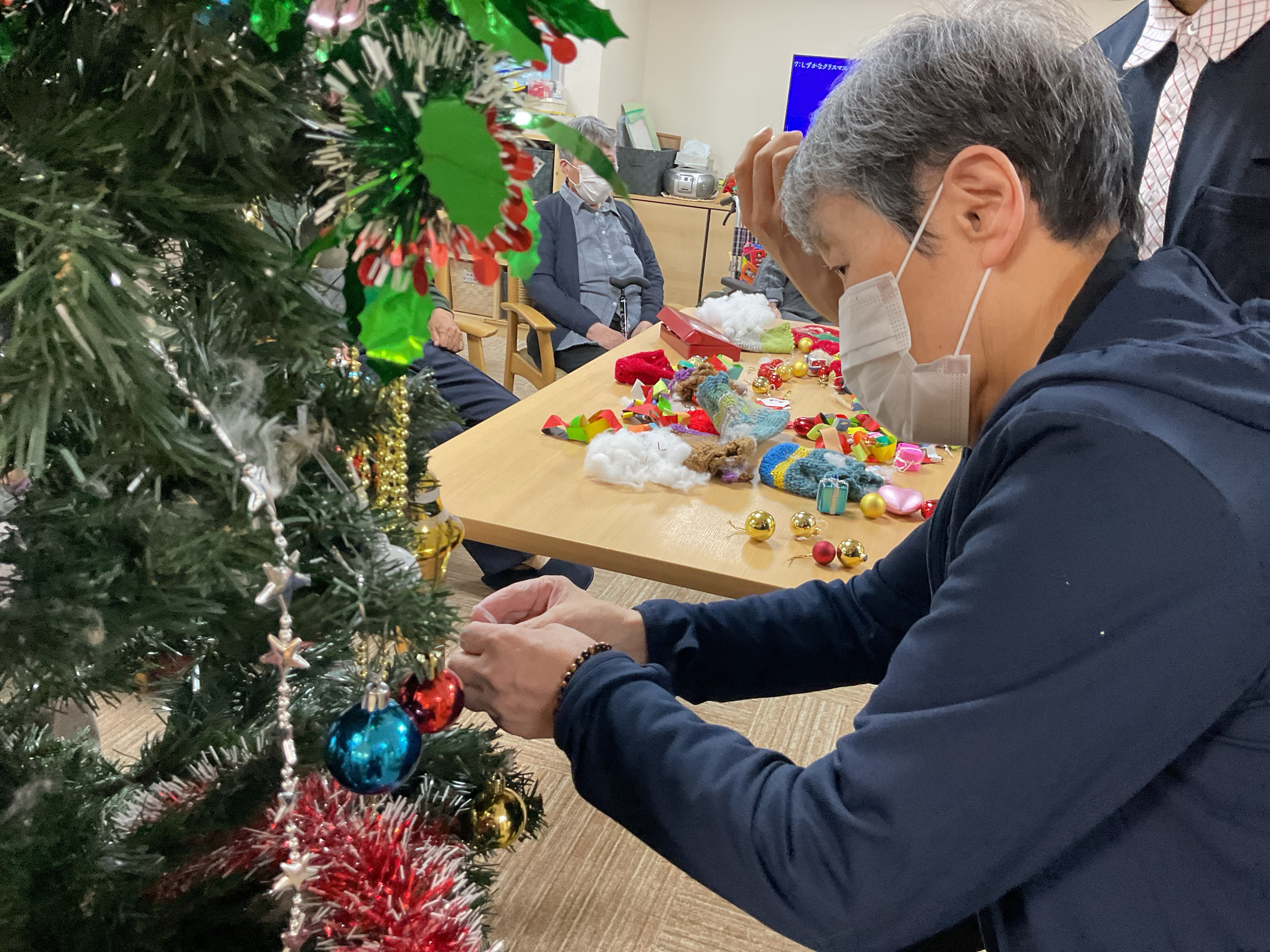 みなさんでクリスマスツリーを囲み、順番に人形やビーズなどの飾りつけをしました🎄
