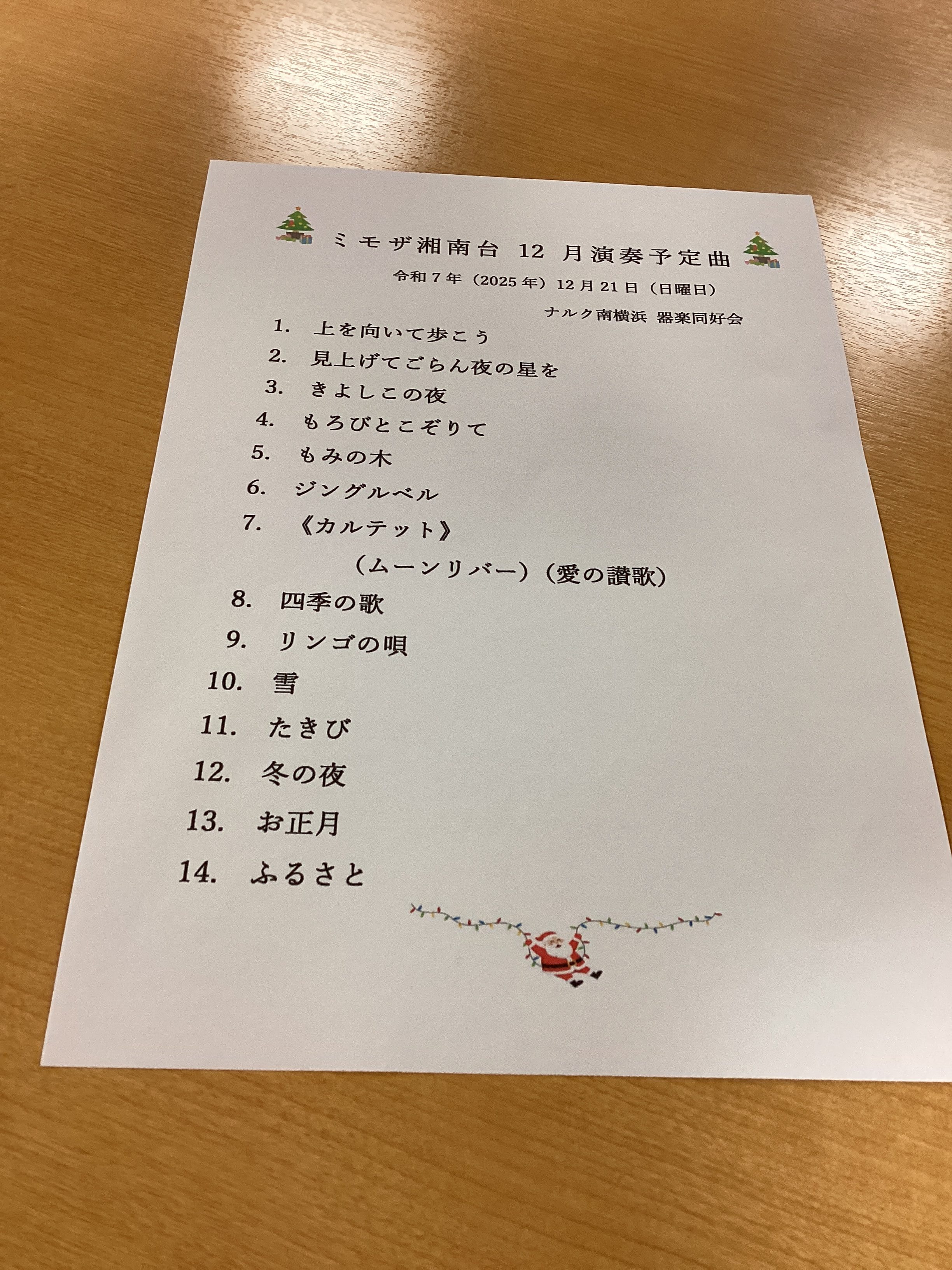 ボランティア ナルク南横浜所属の器楽同好会の皆様によるクリスマス演奏会が行われました。