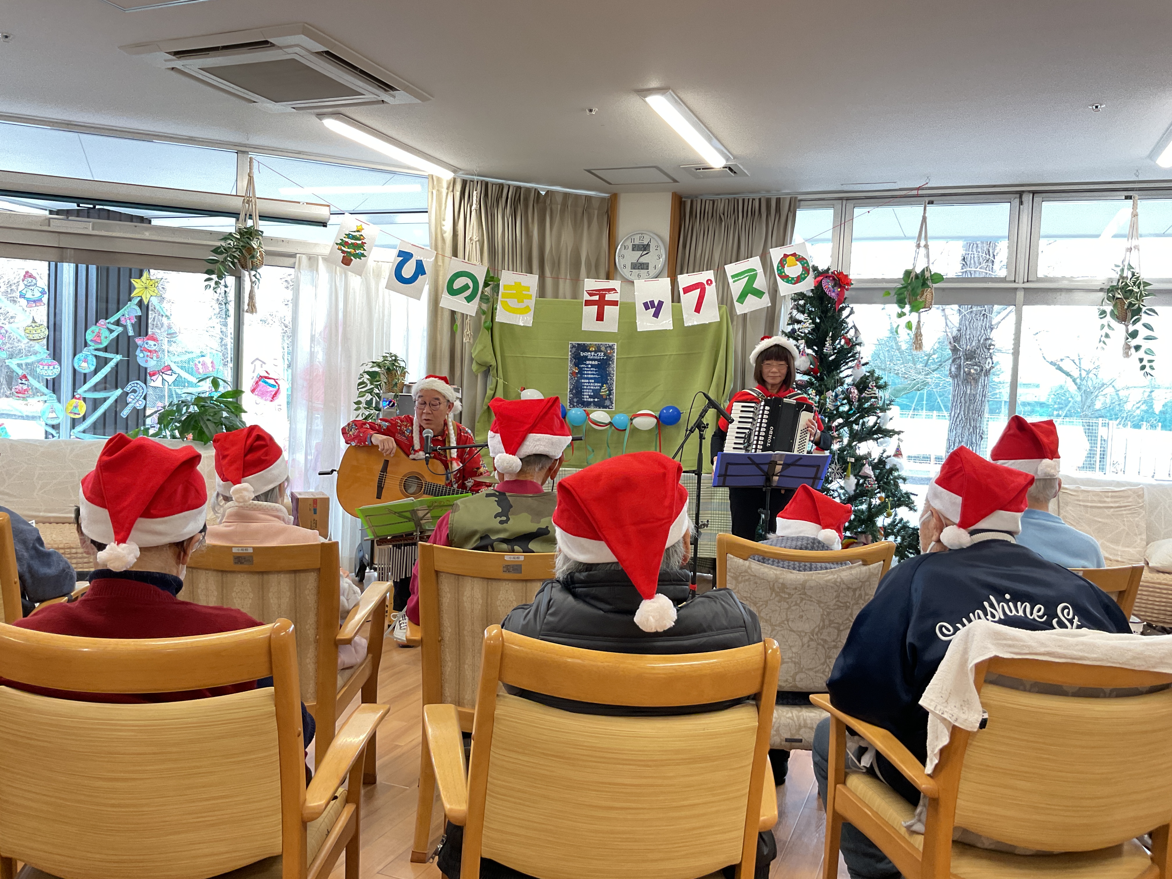 本日の花咲は一足早くクリスマスです🤗「ひのきチップス」様のクリスマスコンサートを鑑賞しました😊クリスマスソングはもちろん。懐かしい歌や唱歌など沢山披露してくださいました!ご利用者も参加して演奏したりと、とても楽しい時間でした✨