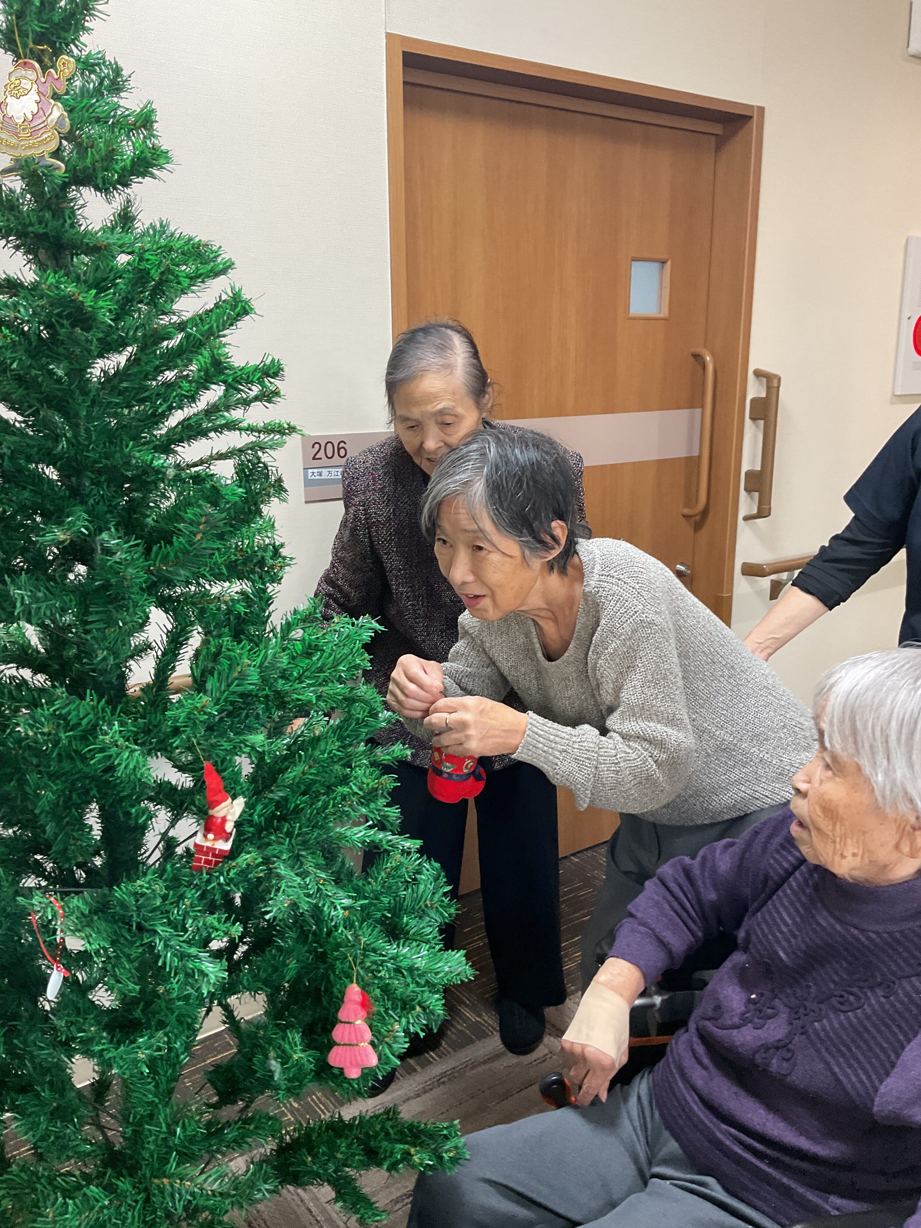 皆さんの力を借りて大きなツリーやフロアに飾りを付けました!たくさんのオーナメントでキラキラになりとても立派になりました🎄✨あとはサンタさんを待つだけ!どんなプレゼントを持ってきてくれるか楽しみです🎁
