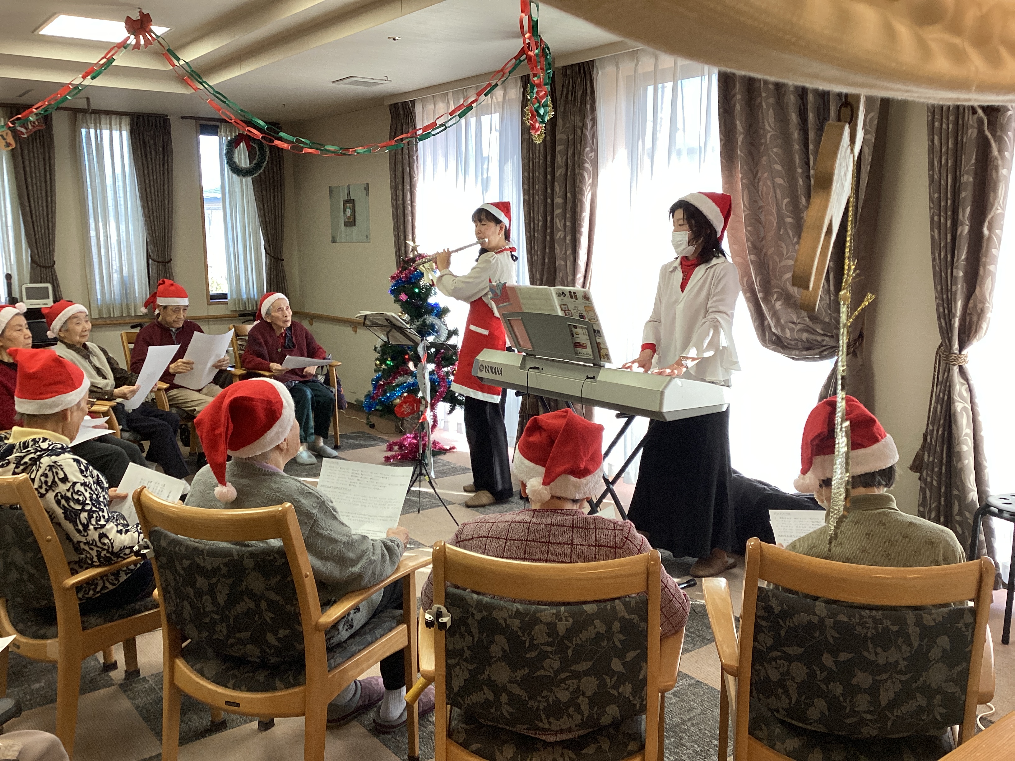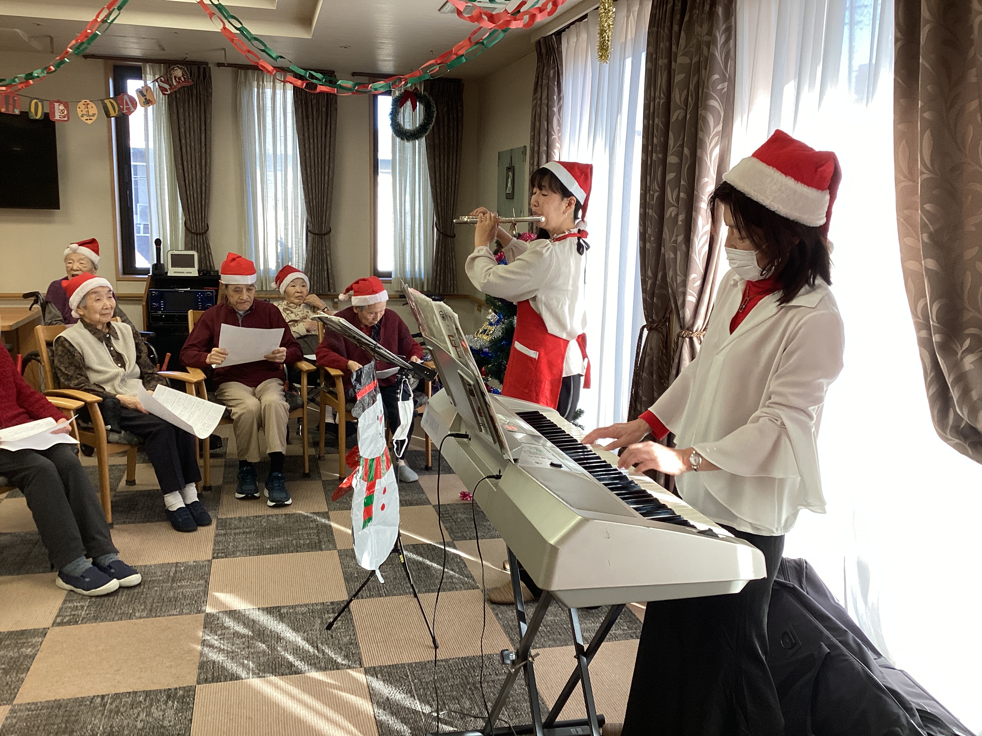 今年もミモザ浦和のクリスマス会を開催しました🎅昨年もお招きしたピアノ・フルート演奏者のМ&Nのお二人にお越しいただき、ご利用者と共にクリスマスソングを歌い、盛り上がりました🎄