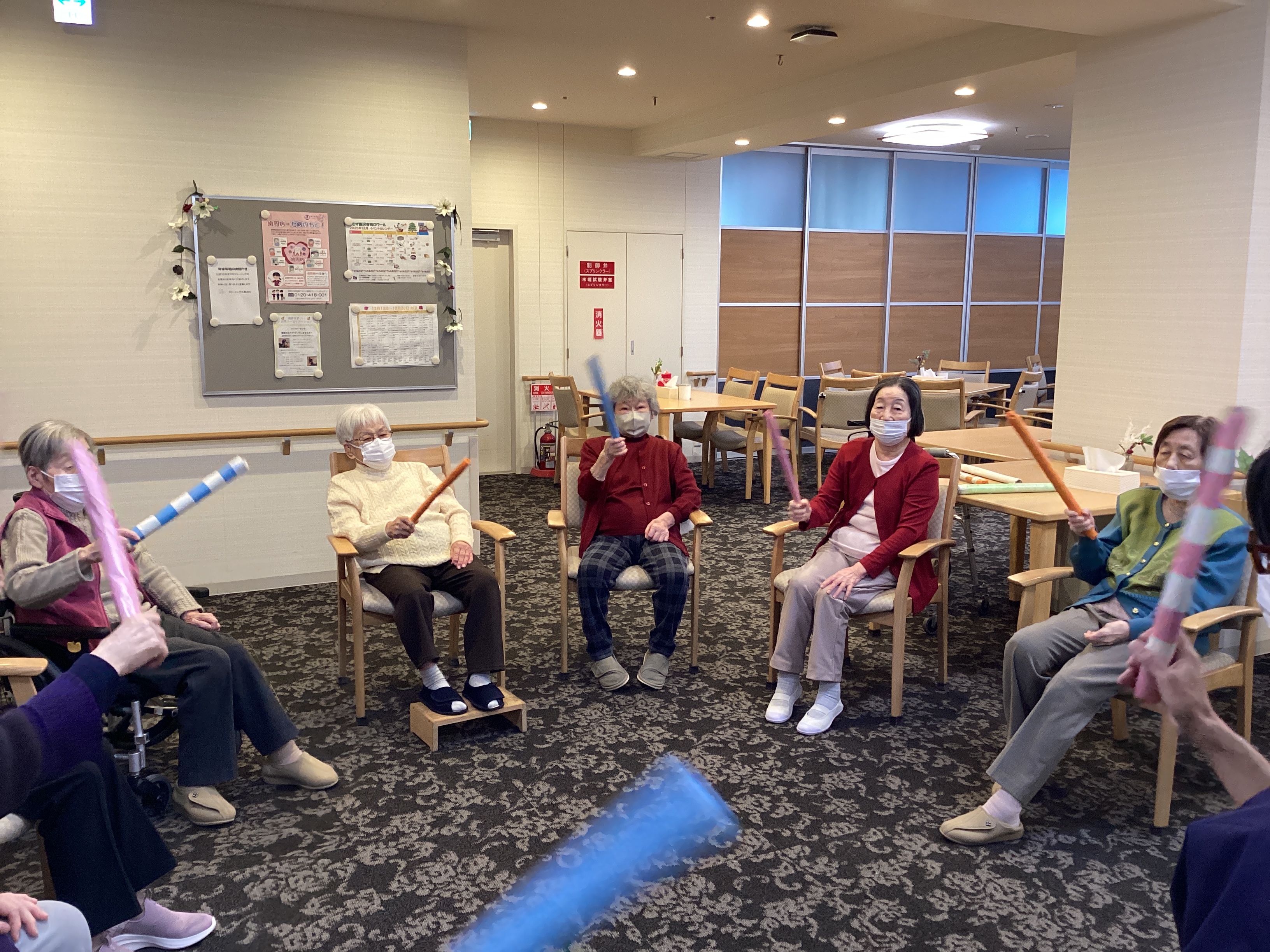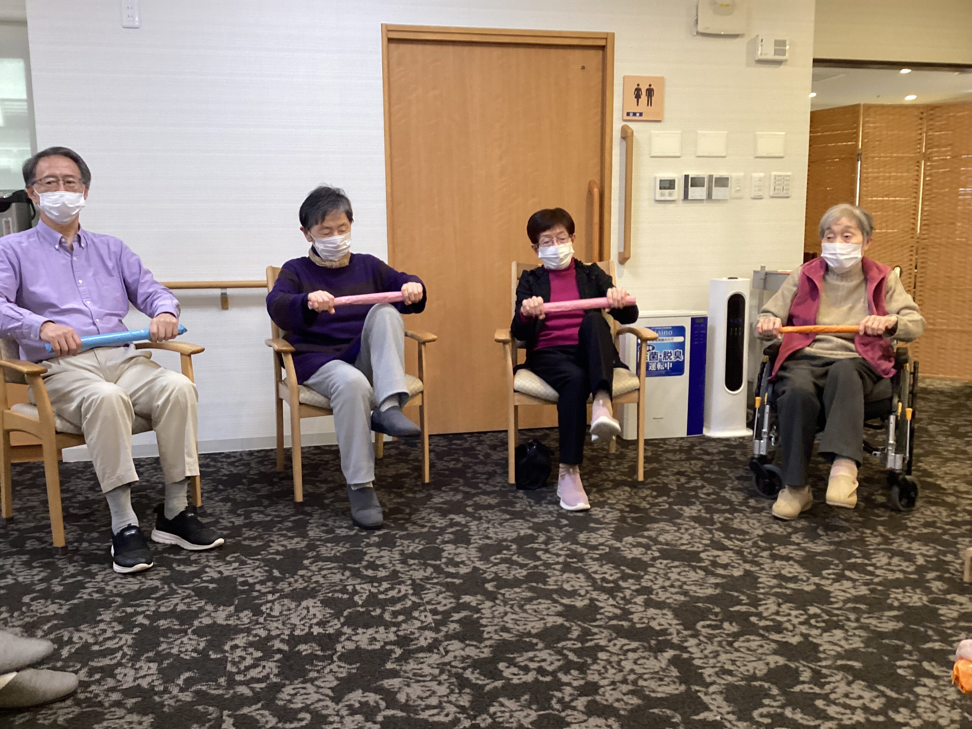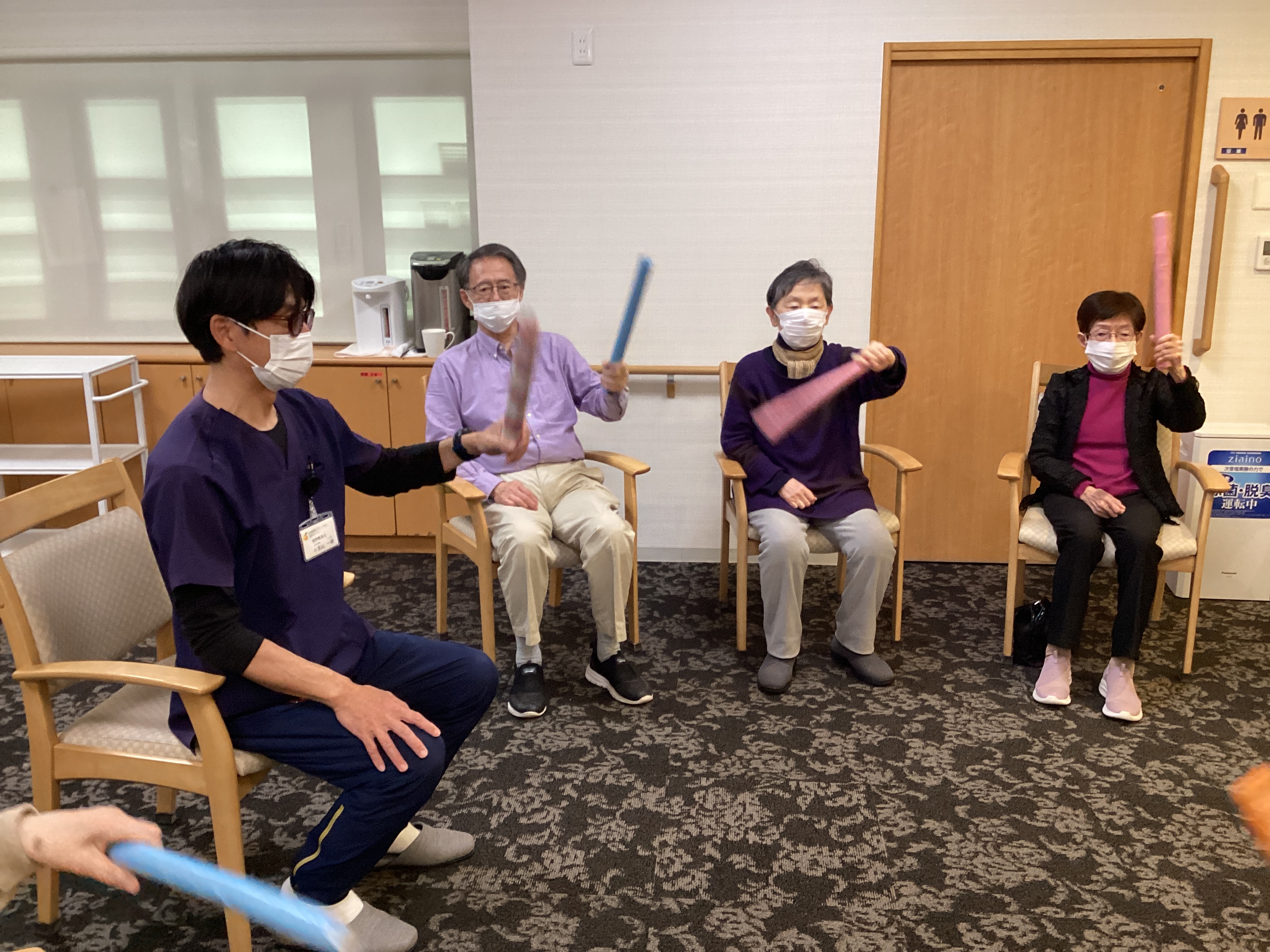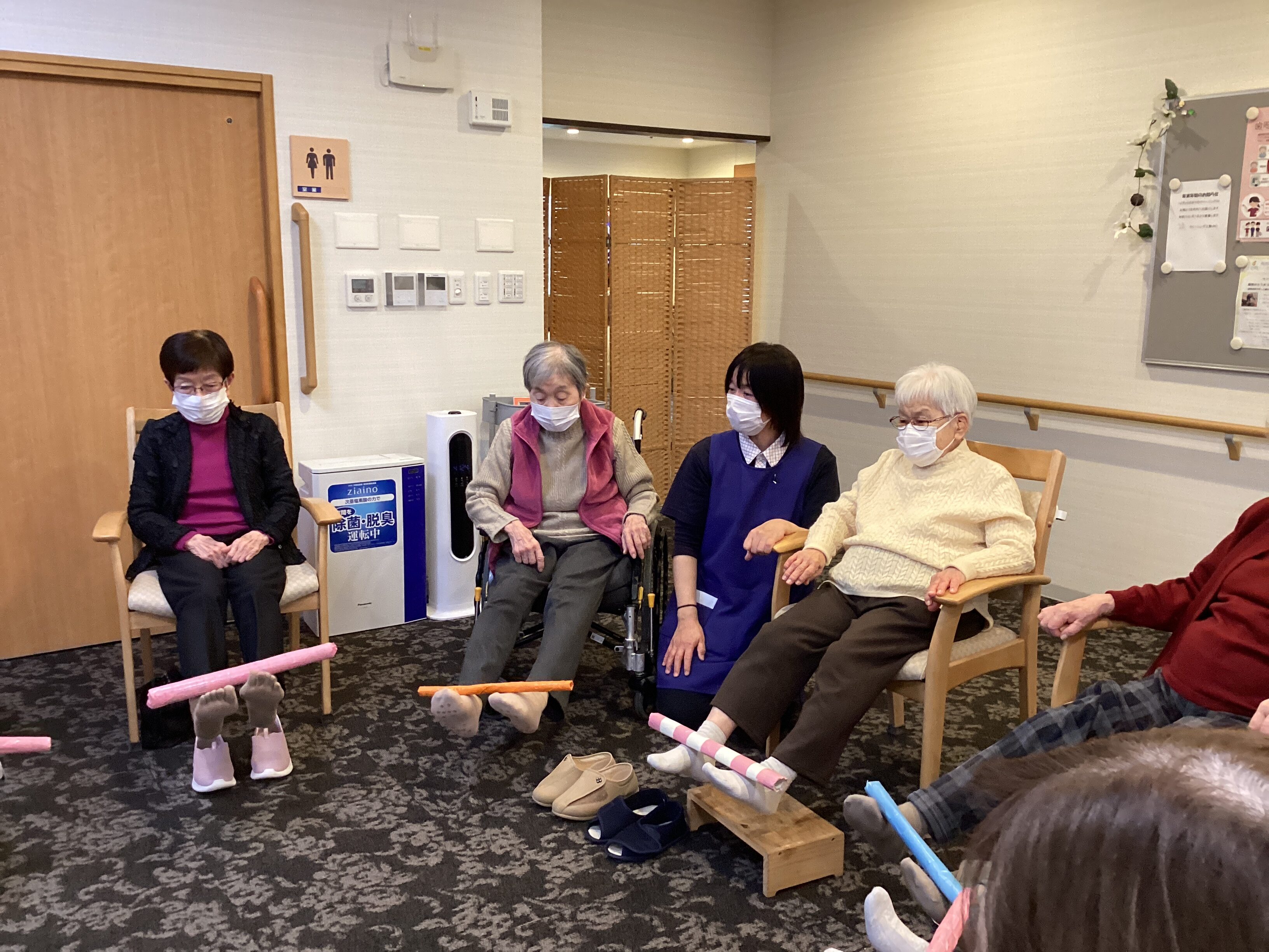 今年最後のリハビリ体操にたくさんのご利用者が参加してくださいました。色々な体操を先生と一緒に行い、お腹にくる~😣足が上がるわね😆と励まし合いながら、楽しそうに頑張っていました。飲み物を飲んで、生き返る👍と喜んでいました😆😆😆