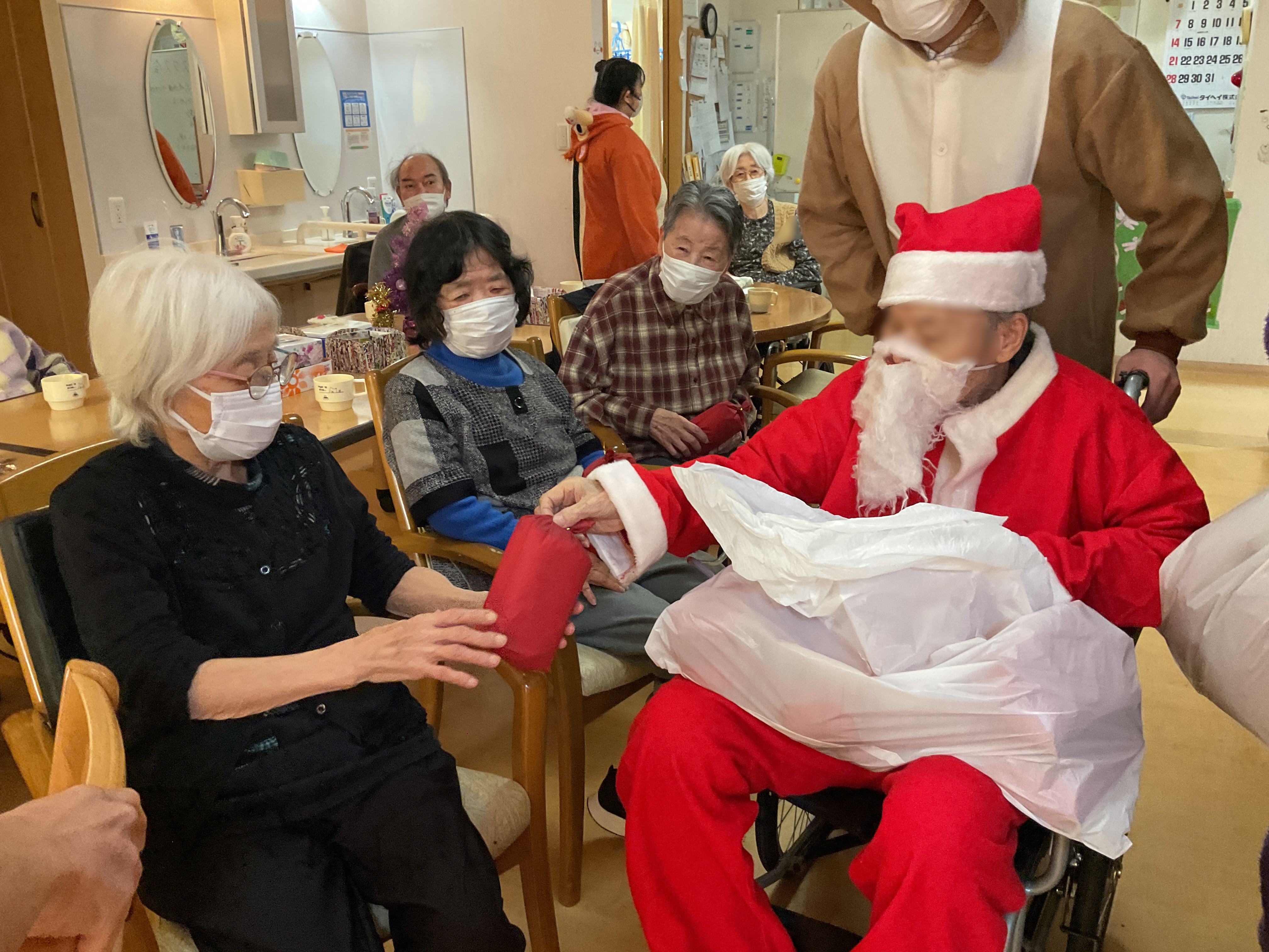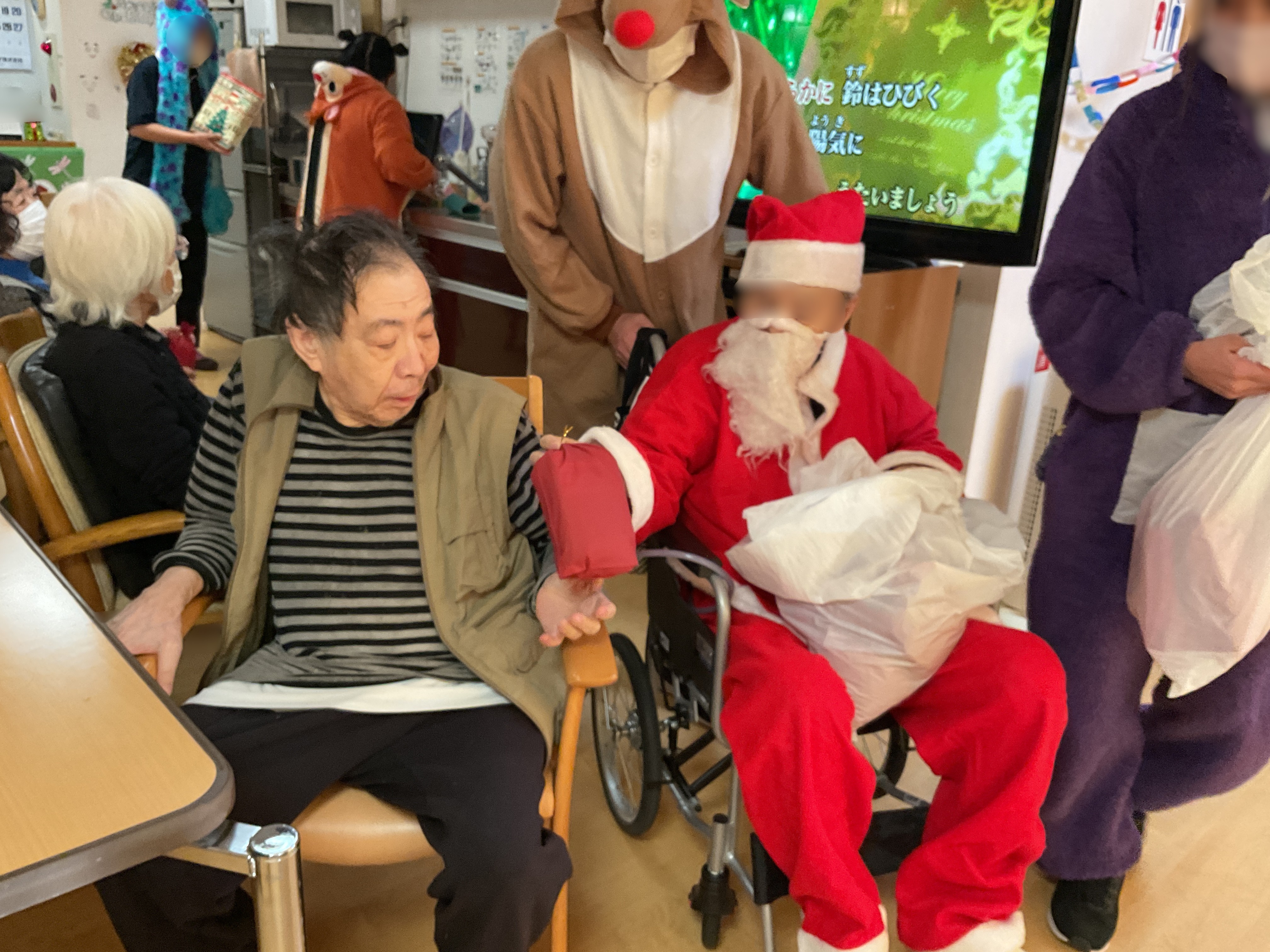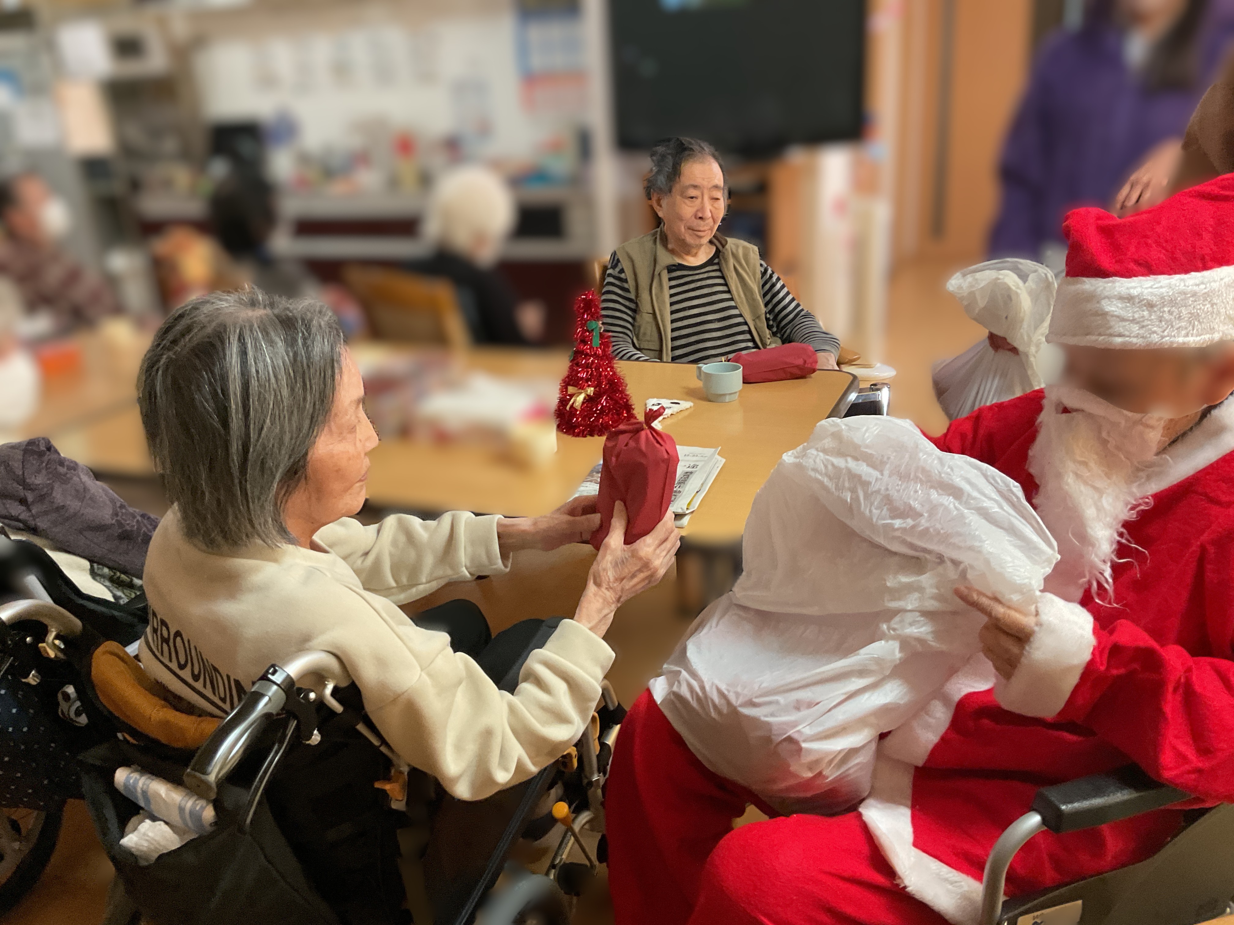 クリスマス会を開催🎅久喜にもサンタさんがやってきてくれました!1人1人にプレゼントを持ってきてくれた優しいサンタさんで皆様喜んでいました🎅🏻 中身は何だったんでしょうか…気になります🤔最後は皆様で歌を歌ってクリスマス会を終えました!