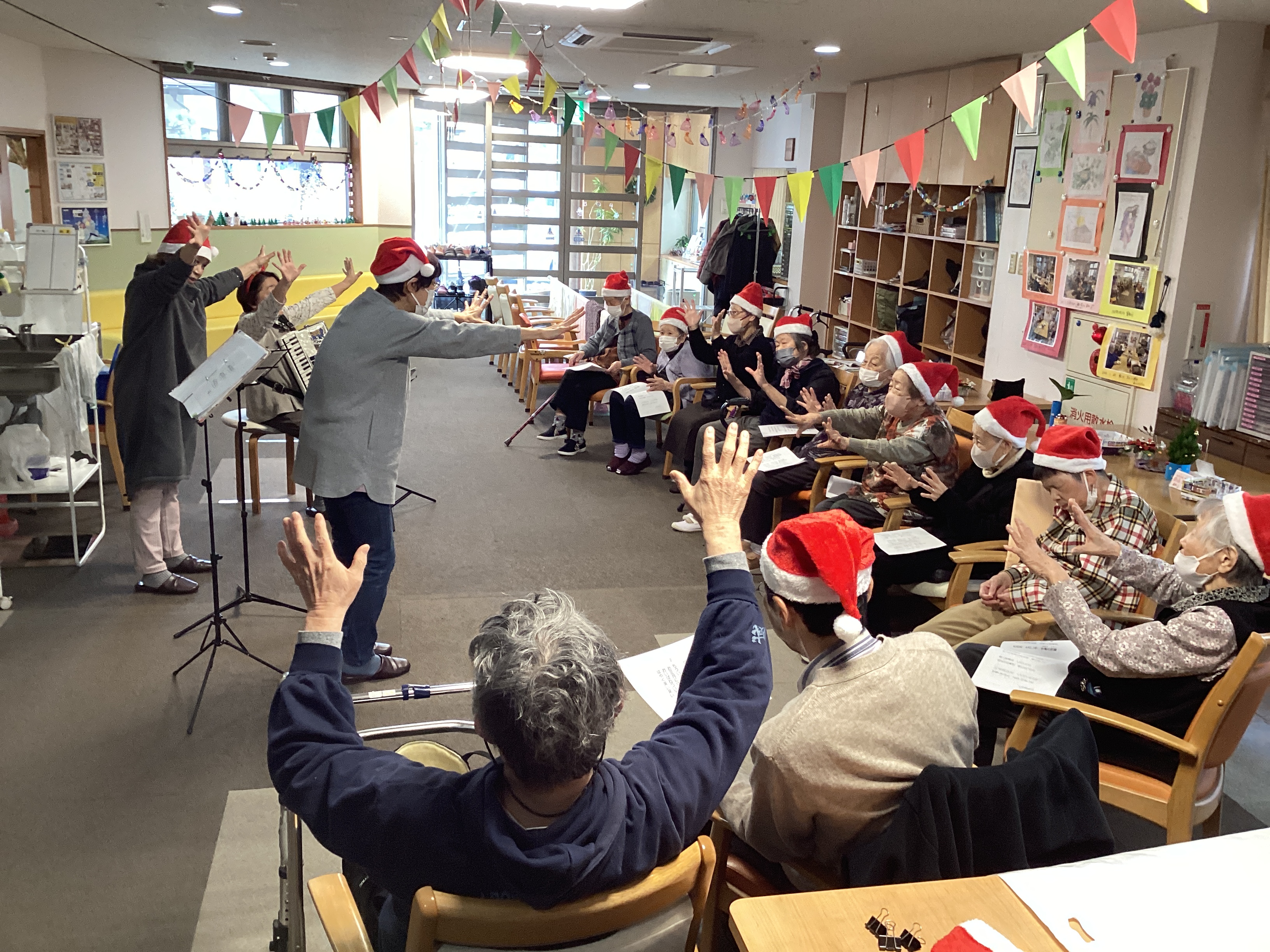 大人気だったクリスマスとボランティアグループアンダンテ様の音楽療法の様子になります。
