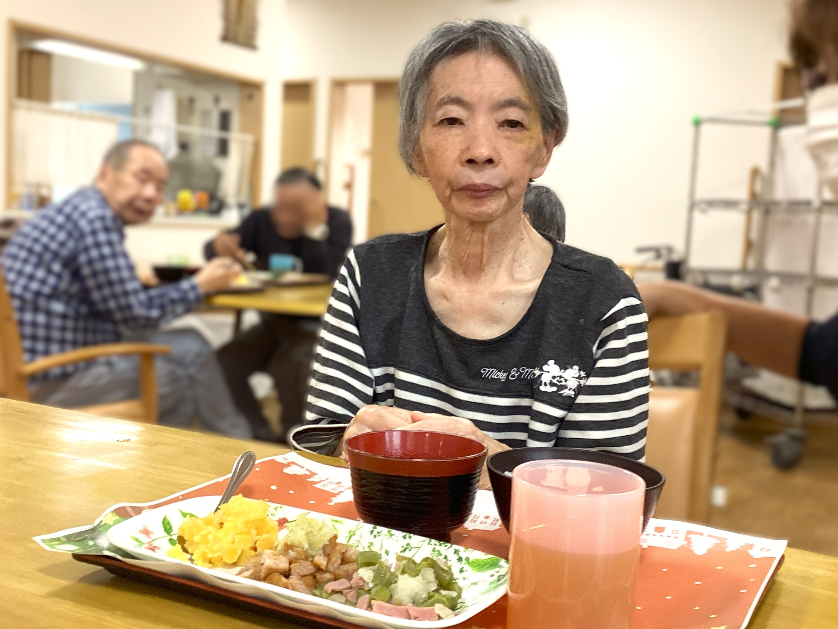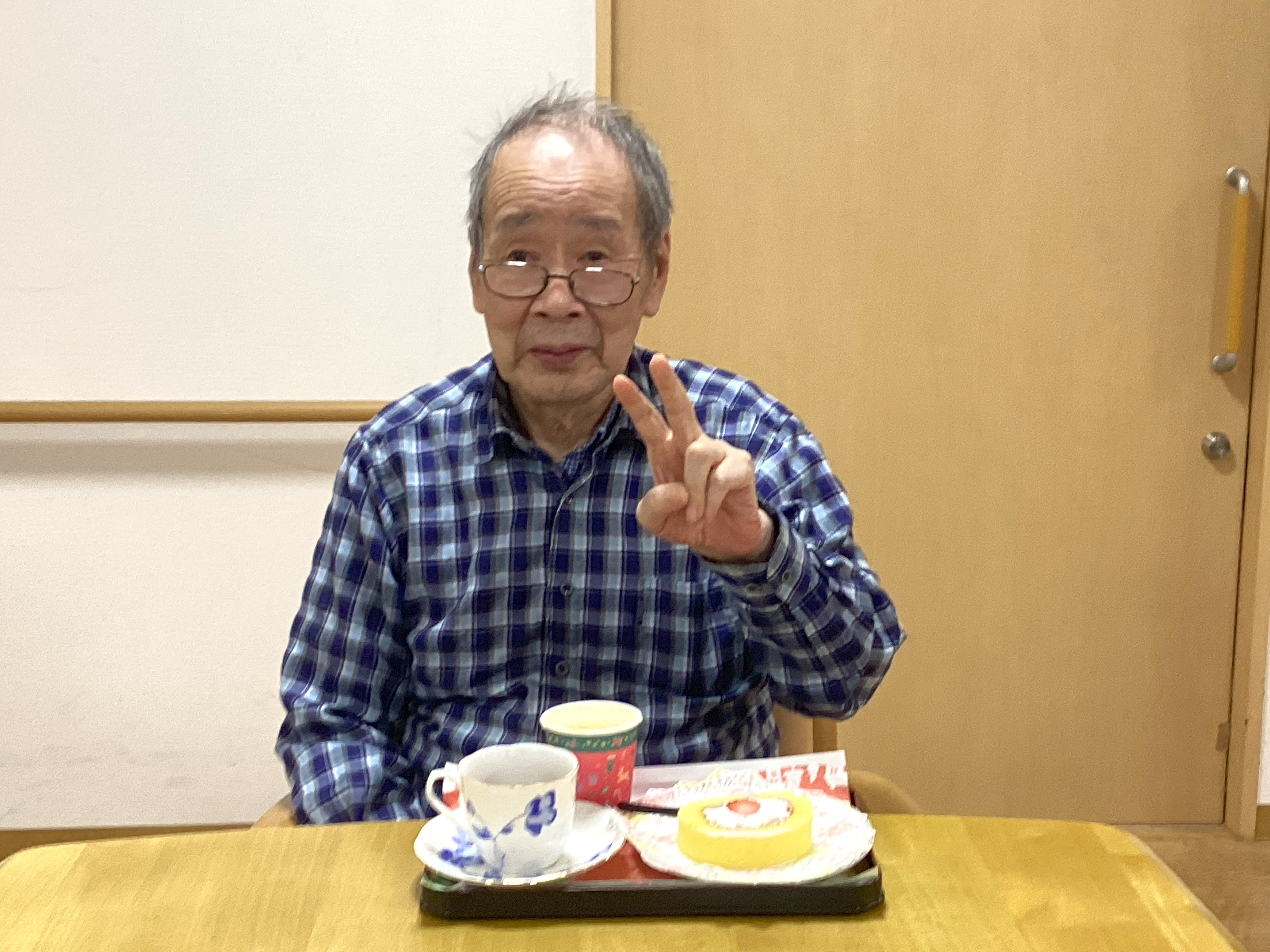 弐番館の皆さまでクリスマス会を開催しまし、おやつには苺🍓の入った大きなロールケーキを食べました!