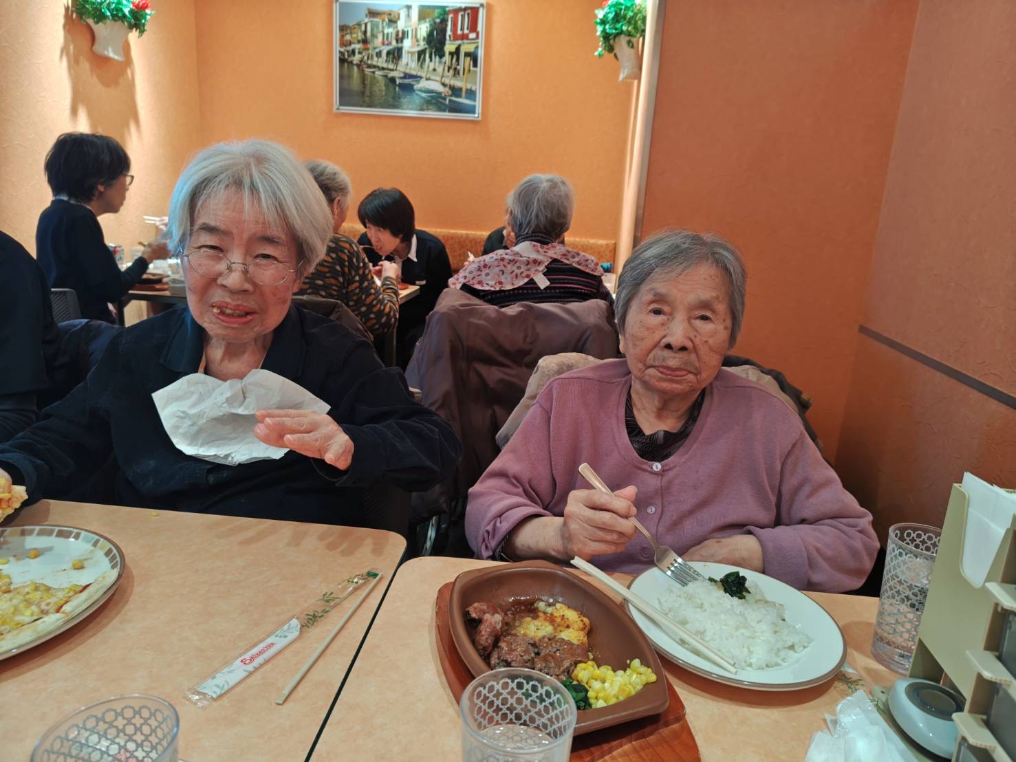 ミモザ岸谷から近いサイゼリアまで歩きランチをしました🎵どこに行くのか?と思いながら向かった方もいたでしょうか笑。食事中はいつもとは違う雰囲気で楽しかったです❤️いつもより食欲も出て会話も弾み笑顔も増えてますね😊また天気良い時に行きましょうね!