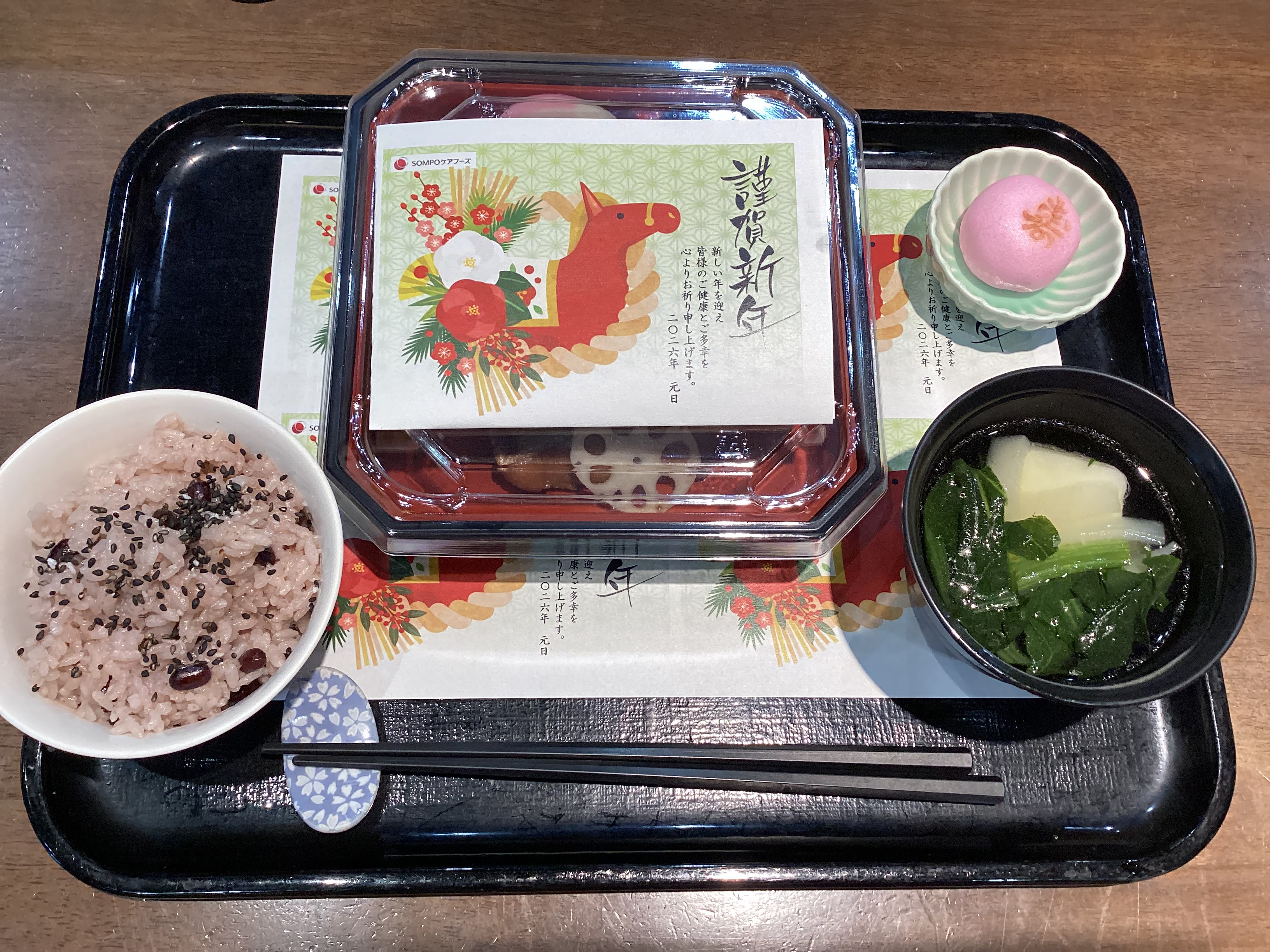 本日の昼食はおせち料理でした! 皆様、年に一度のおせち料理を「おいしい!」と召し上がっていました(^_^)