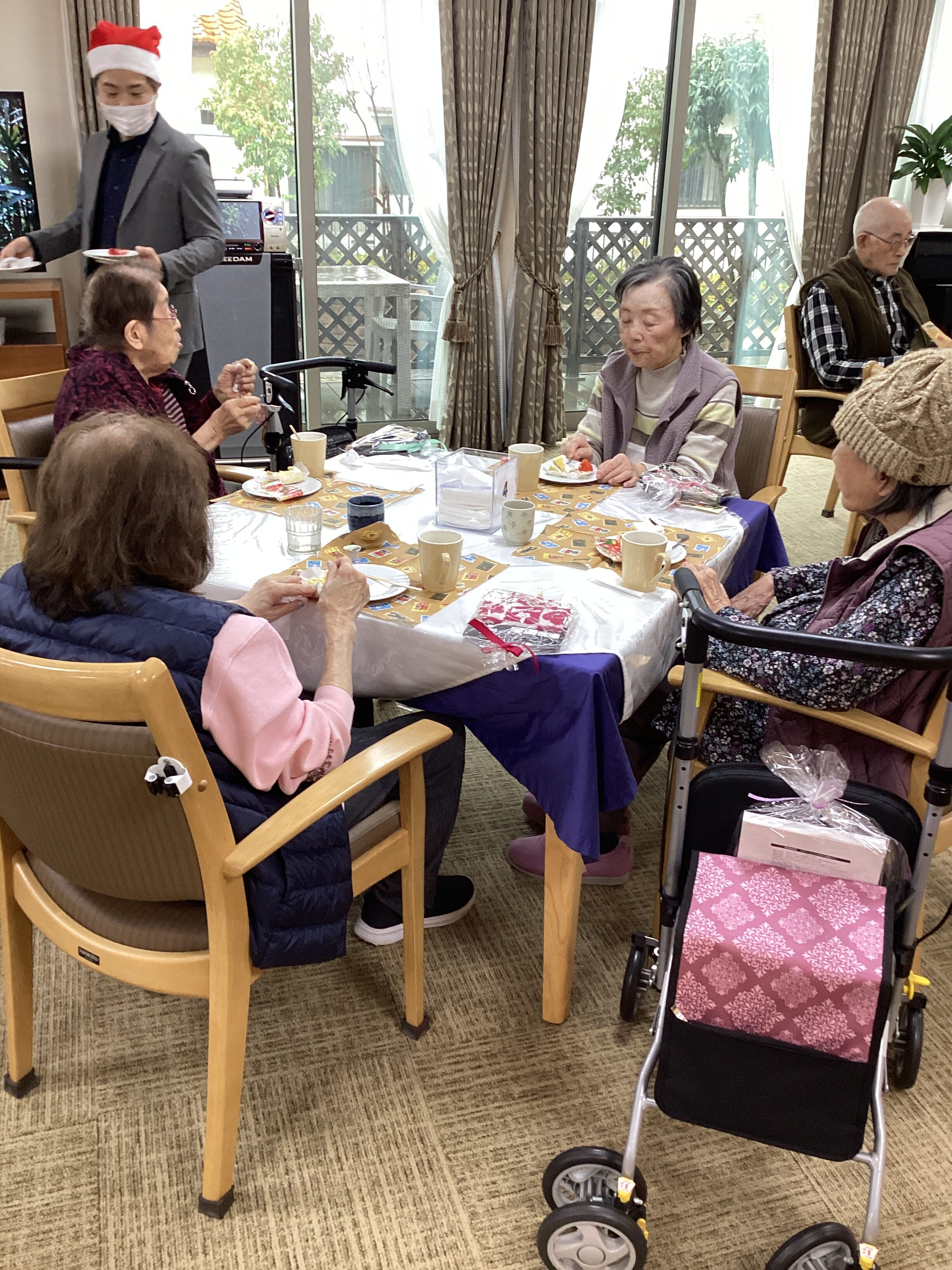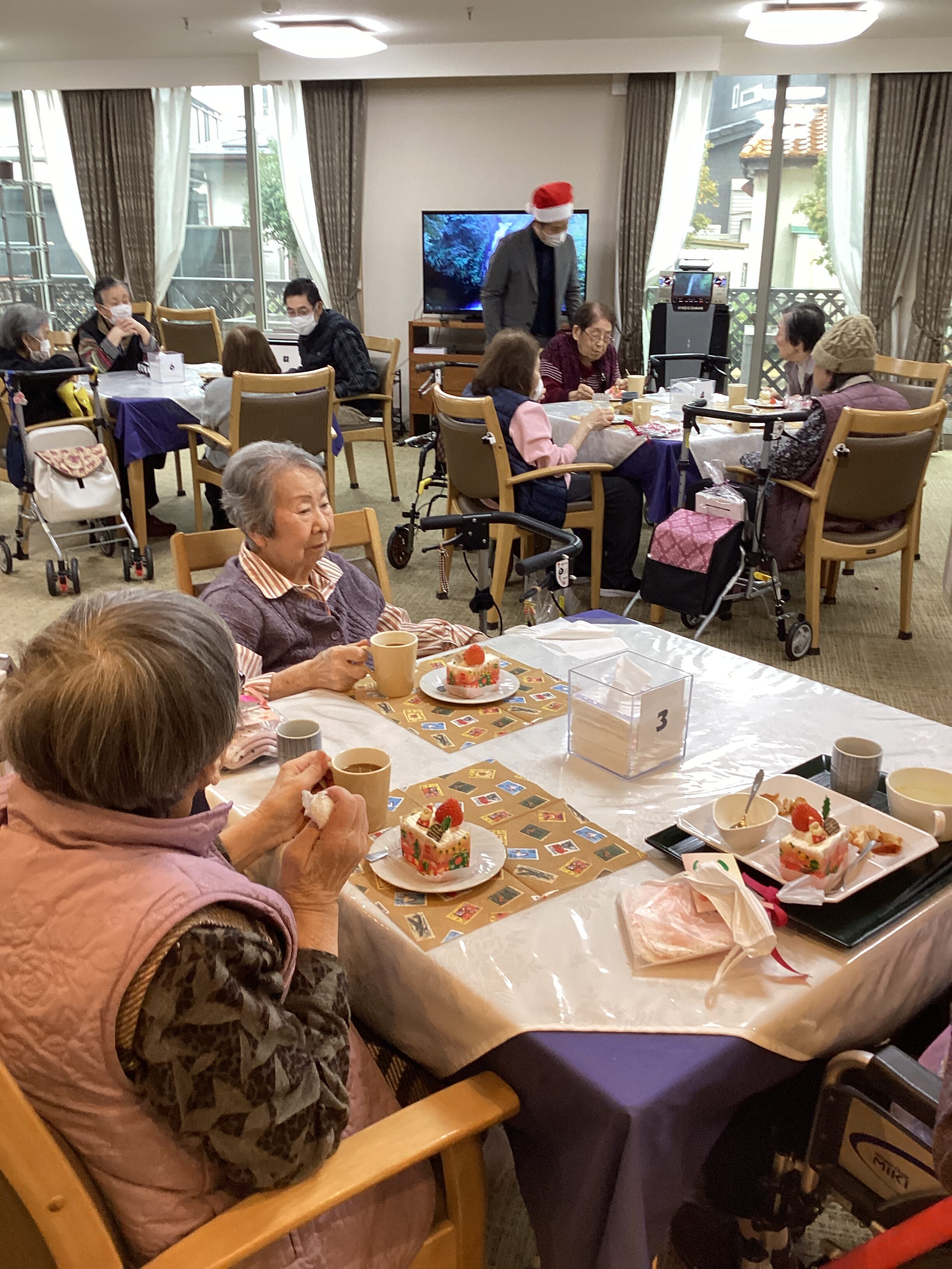 毎年恒例ではありますが、クリスマスランチ会を開催できました!チキン、ピザ、ショートケーキ。くじ引きによるプレゼント等もお渡しする 事ができました!ご利用者には、笑顔も見え楽しいひと時を過ごしていただけたと思います。