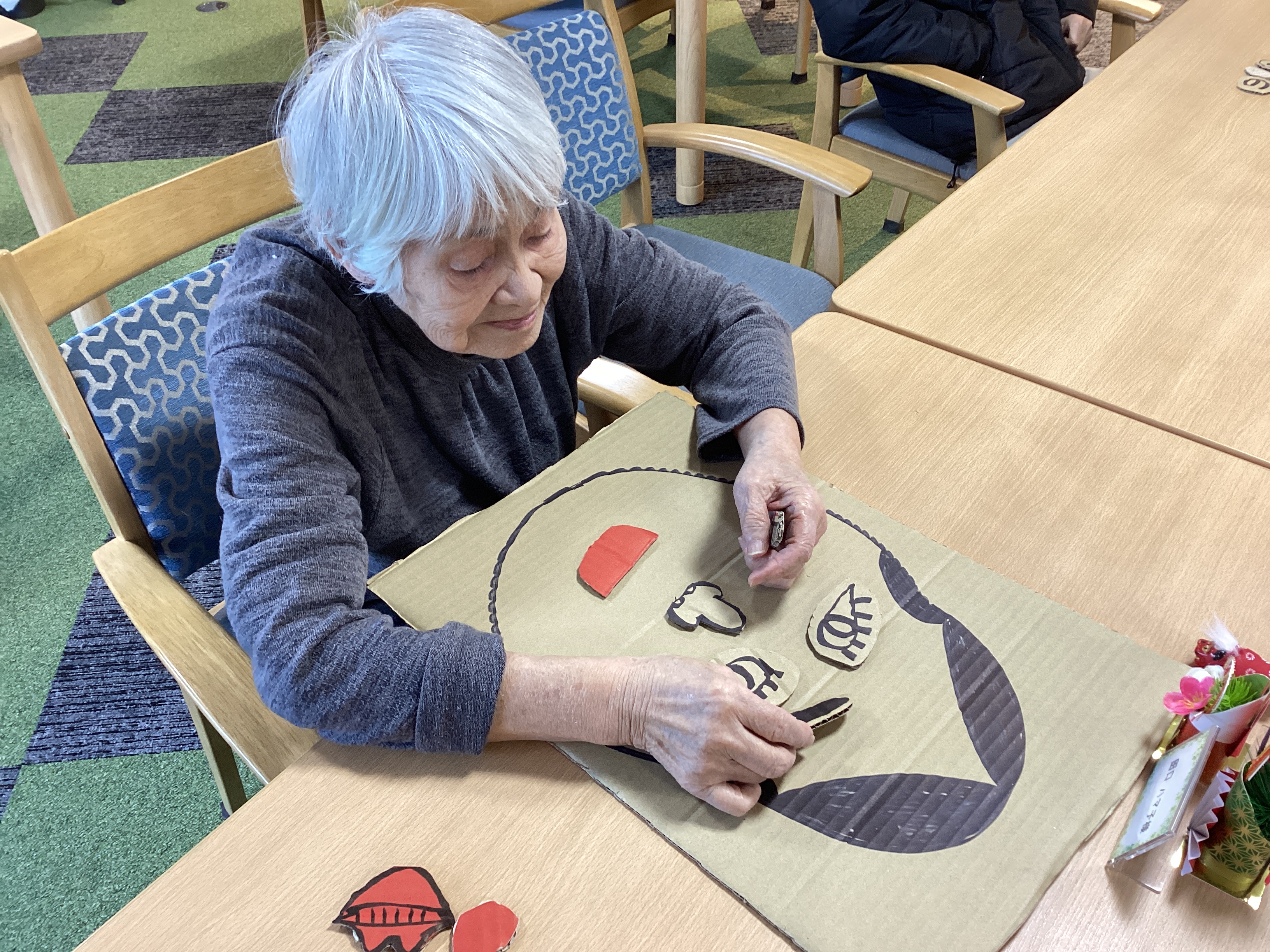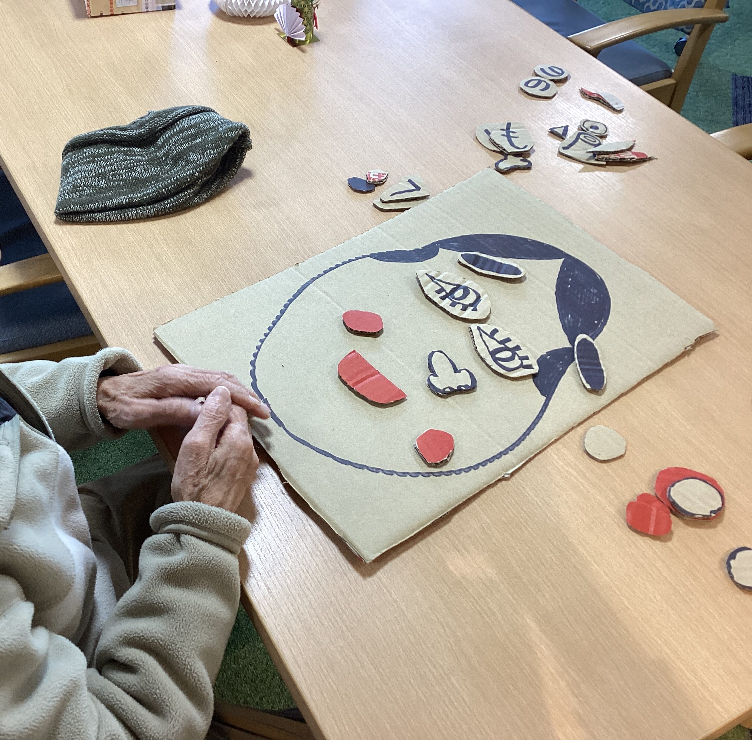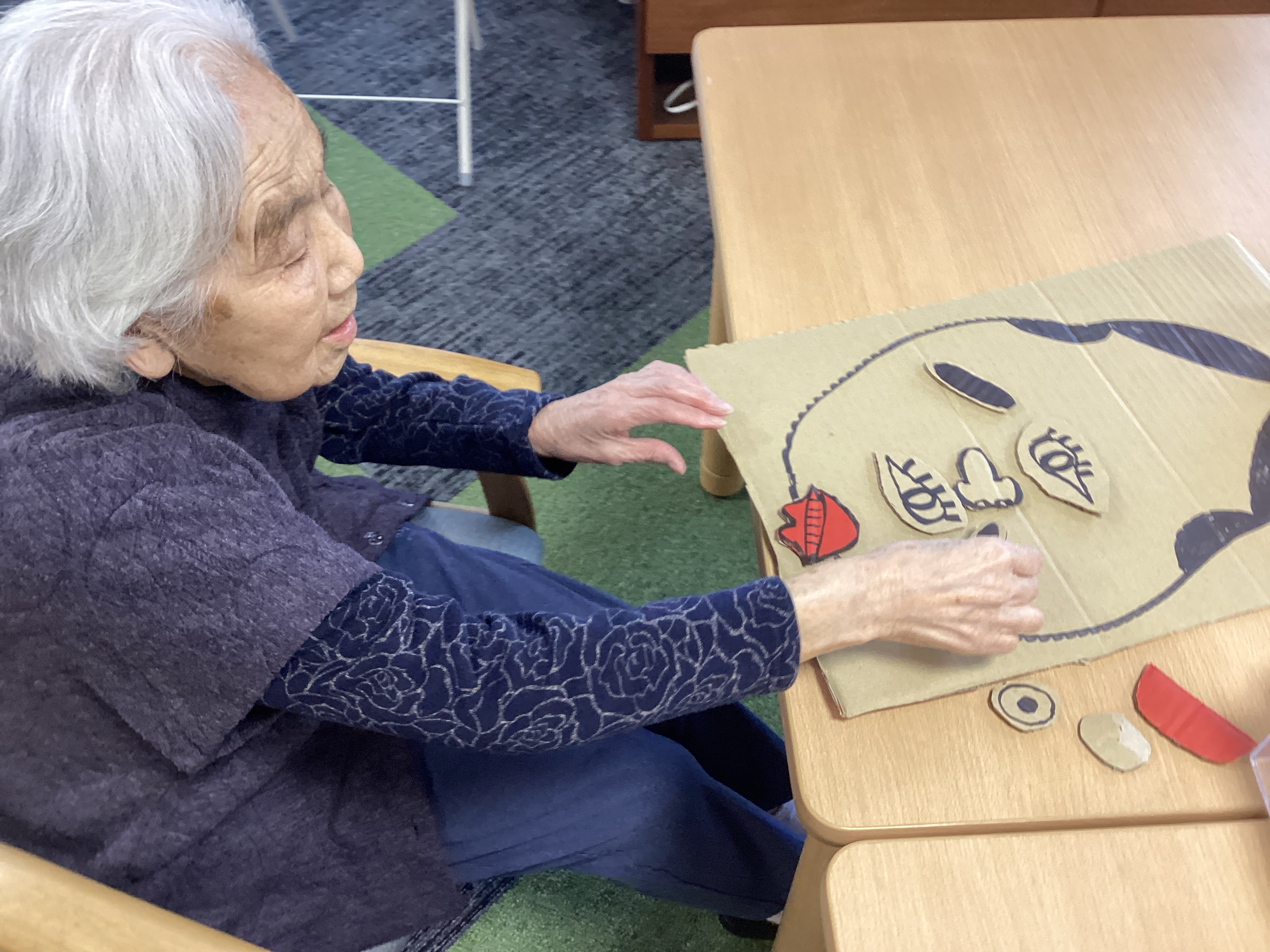 お正月ならではの おかめの福笑いを楽しみました 季節の行事を一つ一つ大切にしていきたいですね(⌒∇⌒)
