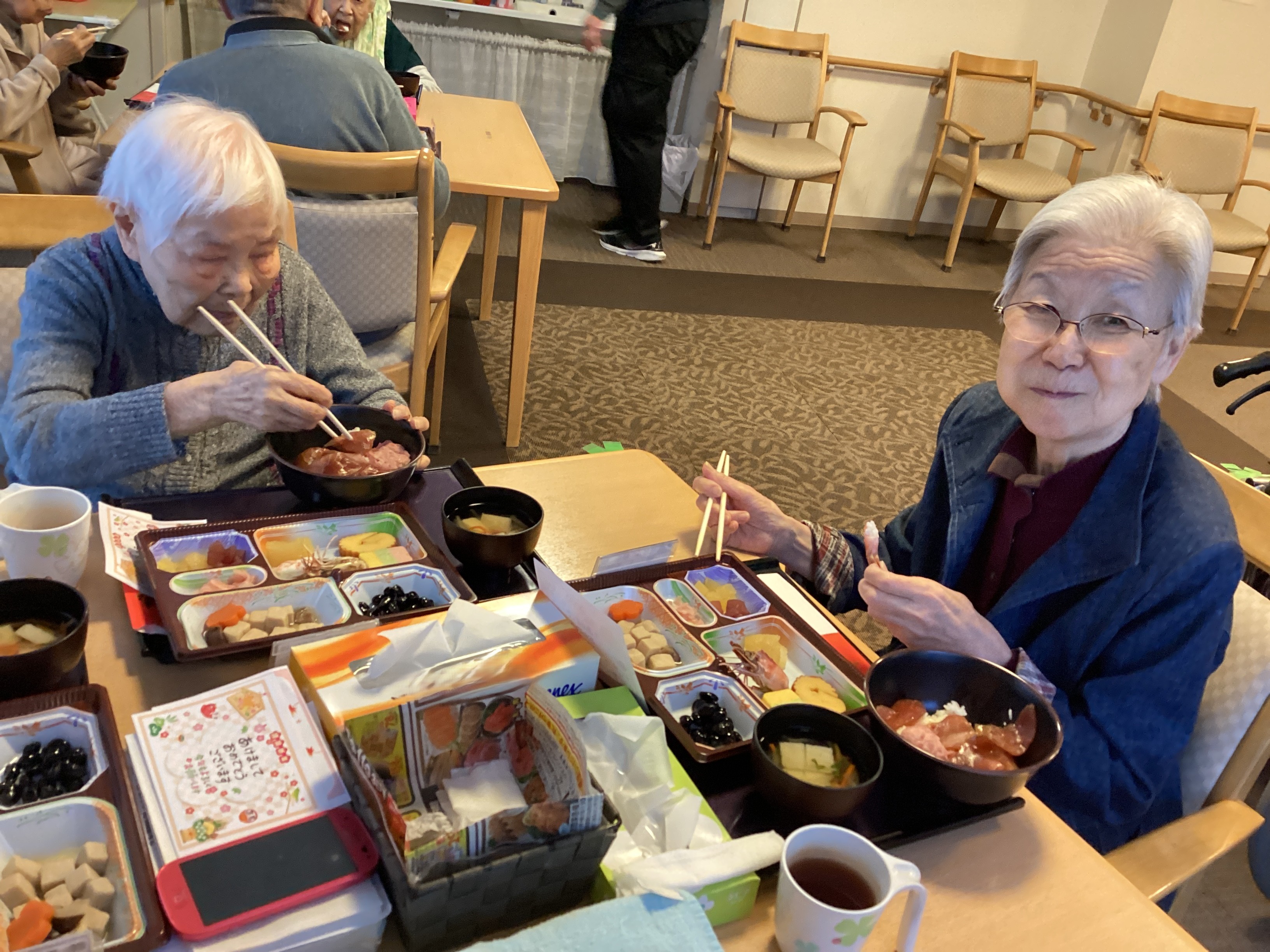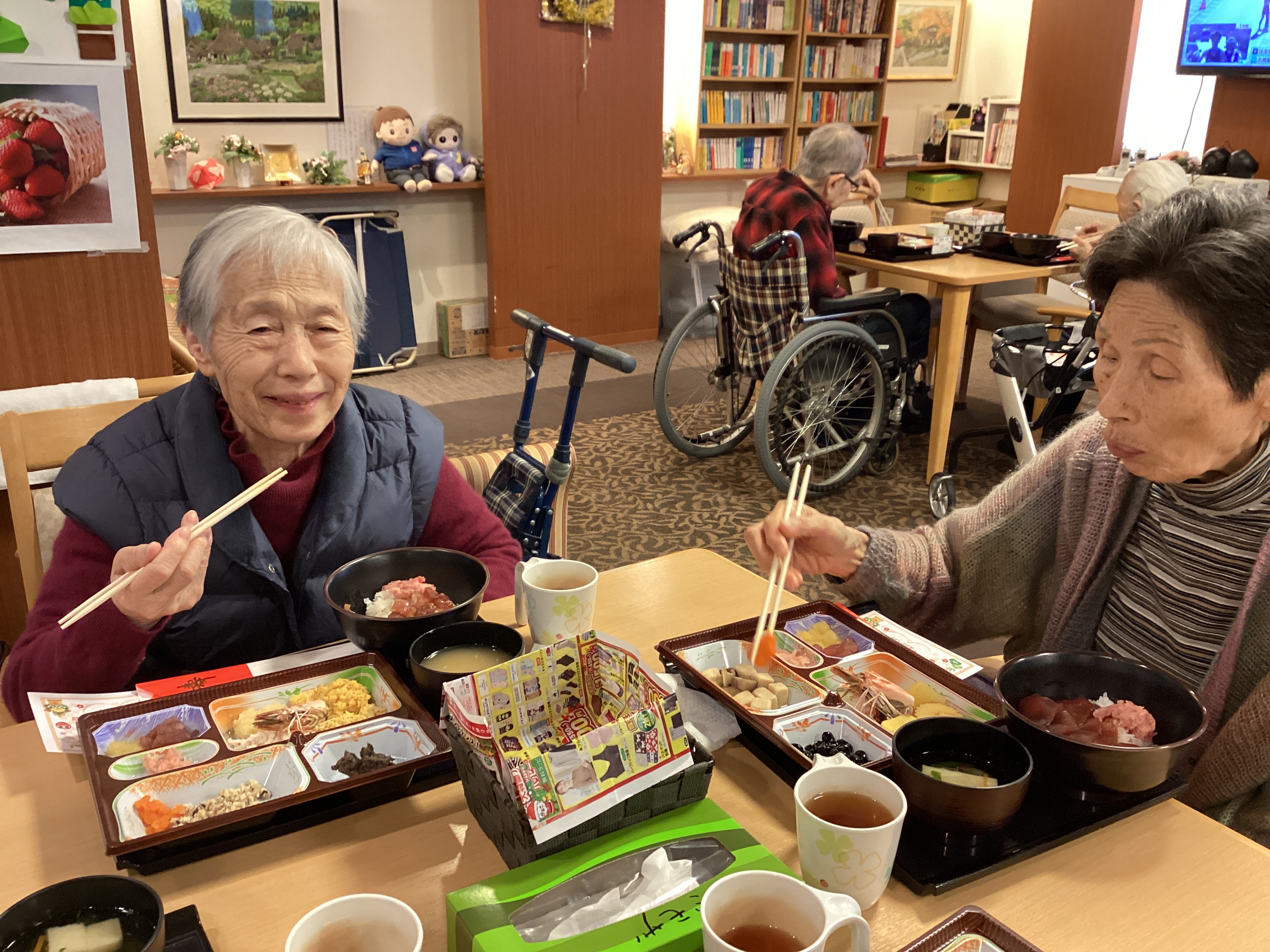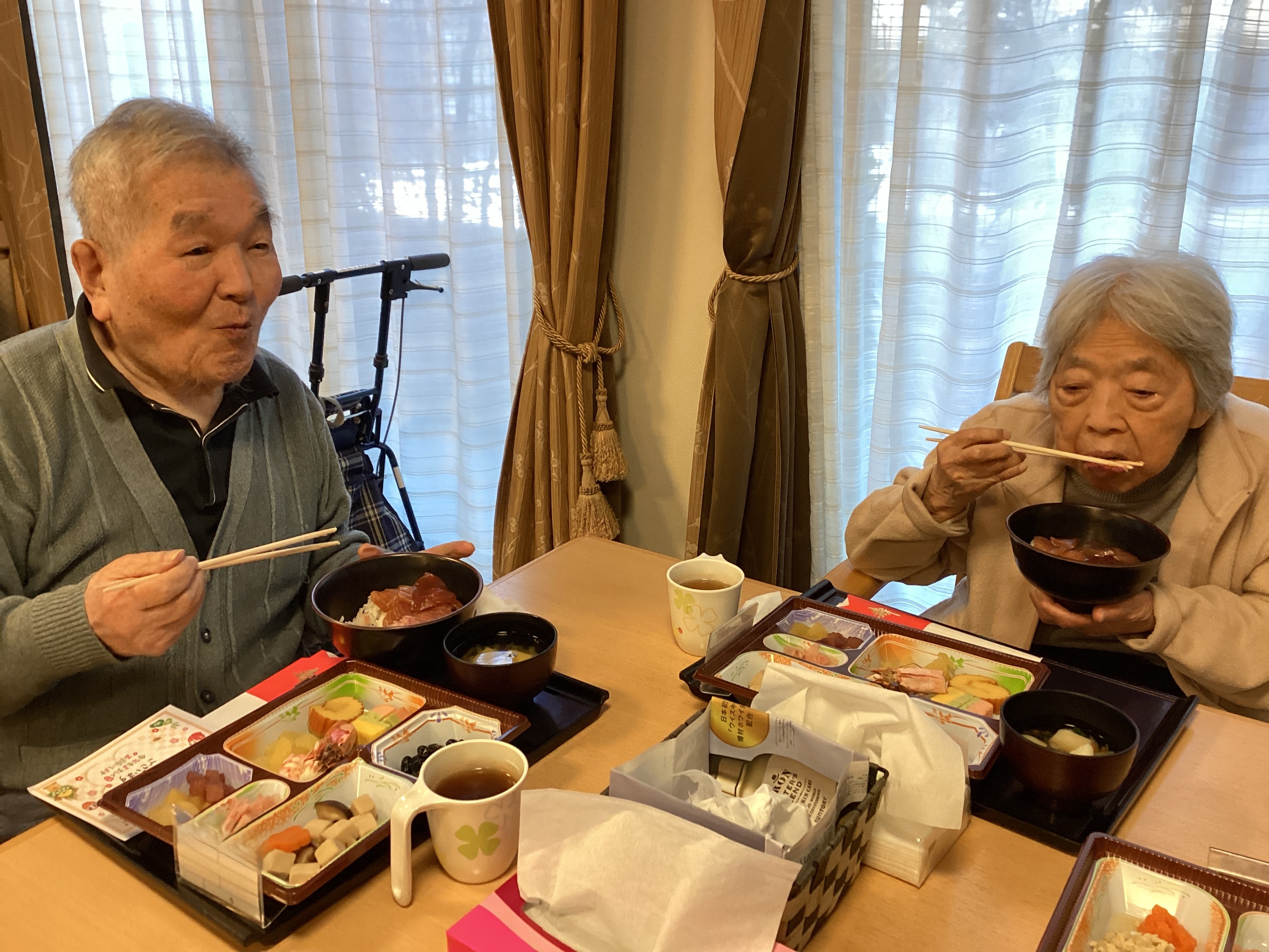 新年あけましておめでとうございます。本年もよろしくお願いいたします。お昼ご飯におせちをいただき、皆さま嬉しそうに完食していました!