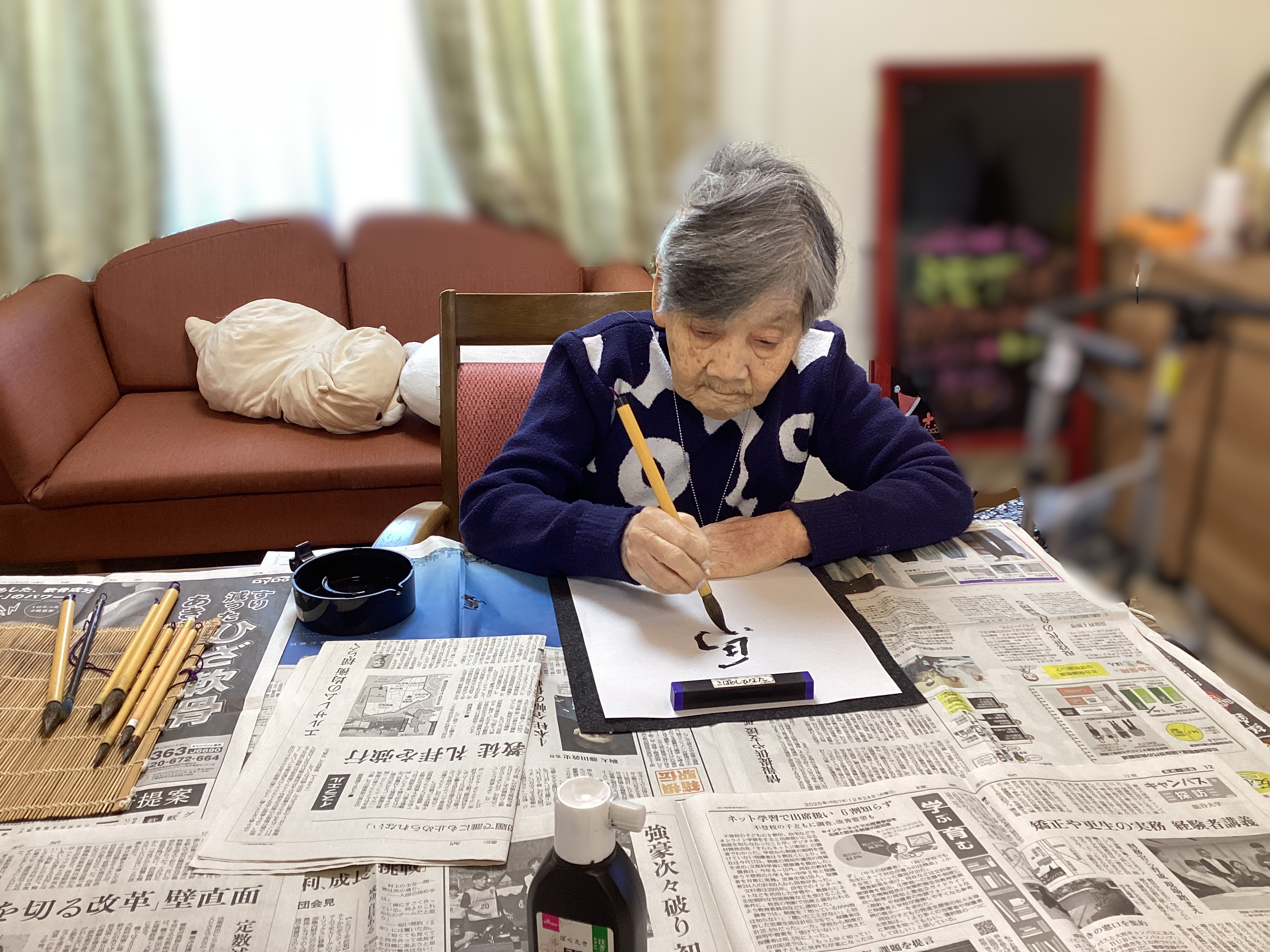 毎年恒例!新春っ!ミモザ市原書初め大会~~!!! 皆様、想い思いの言葉を半紙に載せてくださいました!! 筆を執る姿に重厚感があります!! ご利用者様は人生の大先輩ということで、今年も沢山!学ばせて頂きます!!