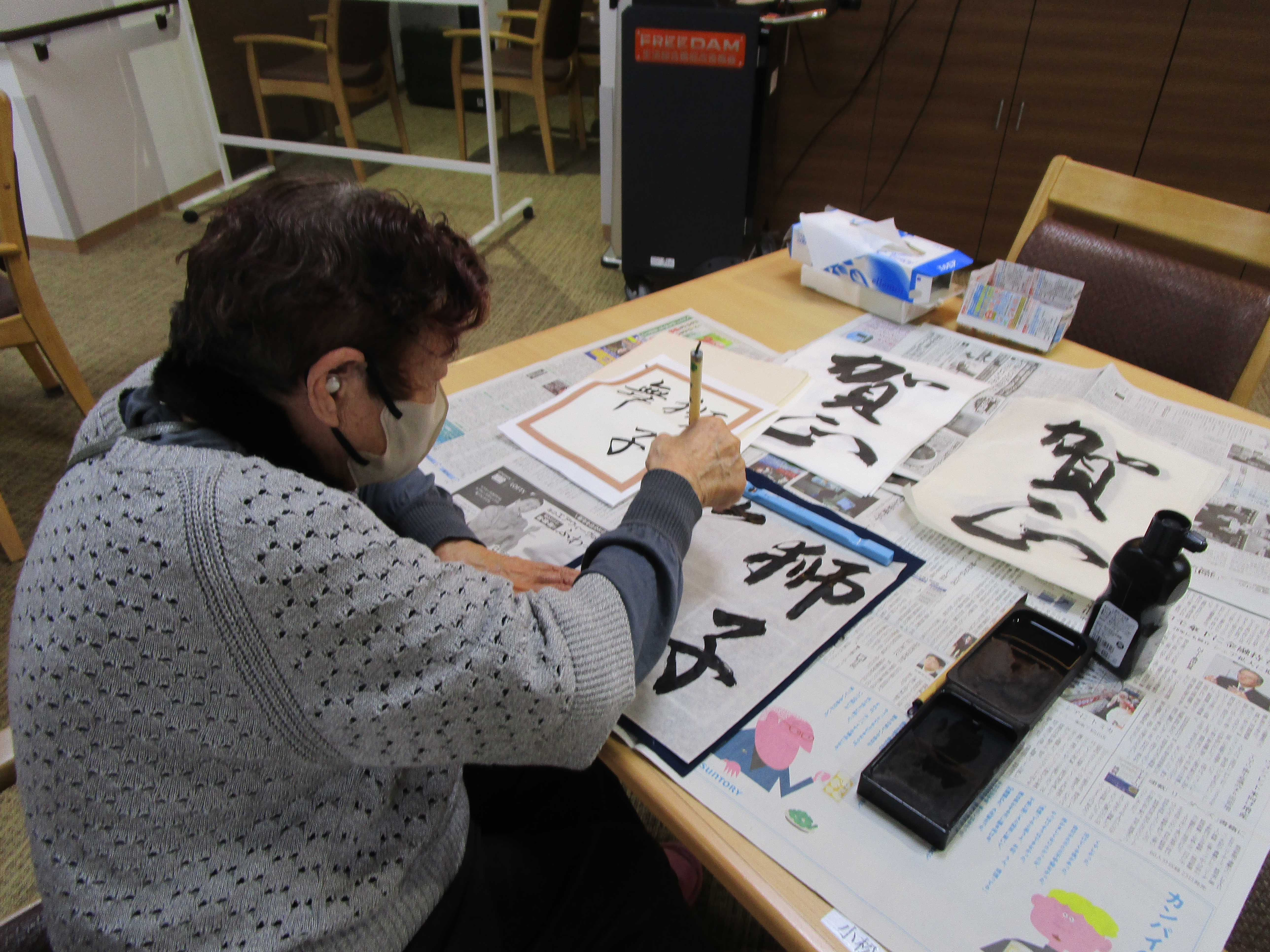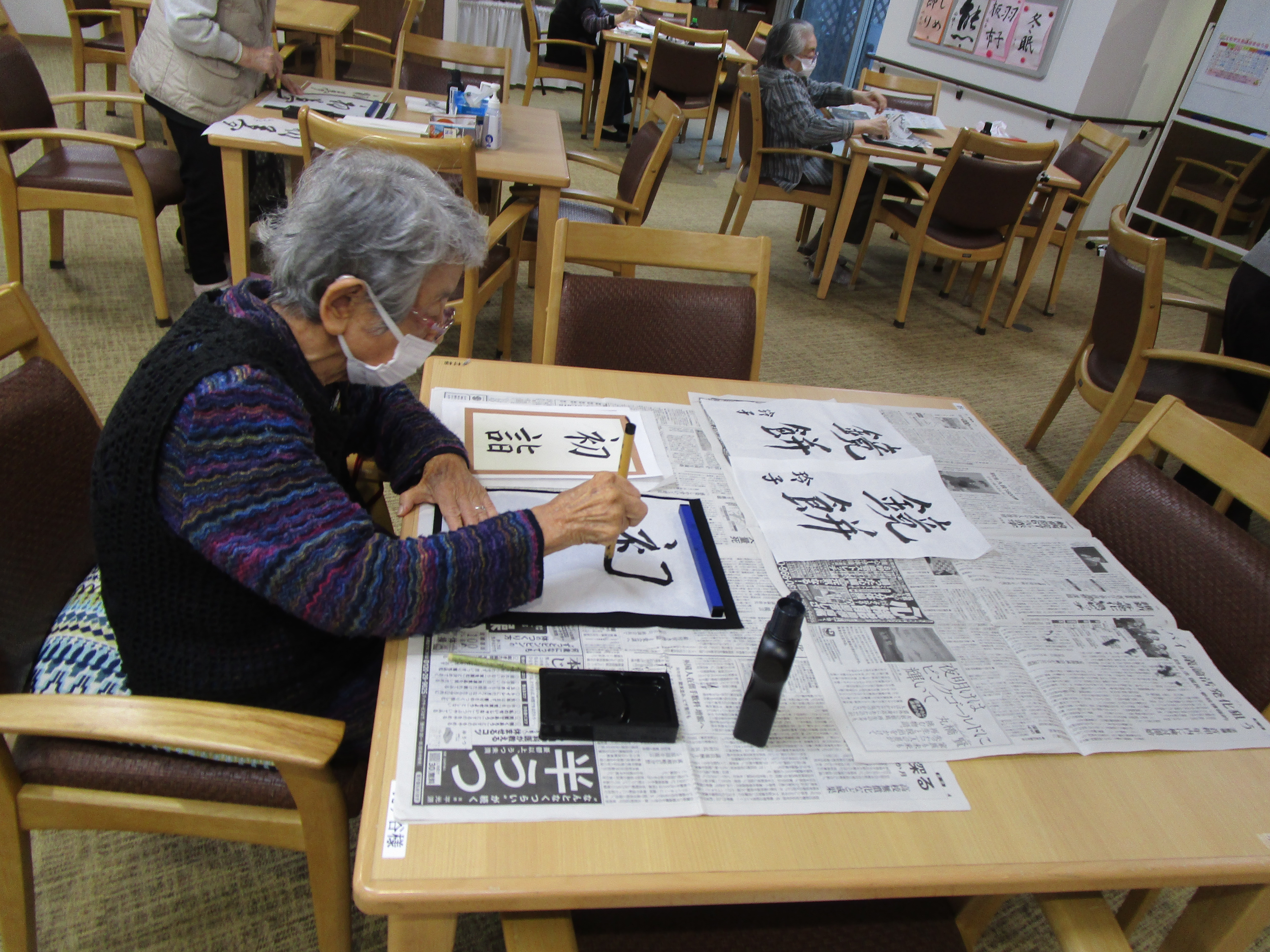 はまゆう苑ではレクリエーションの時間に、書初めを行いました。集中できて良い時間、と楽しみにされている方が多いレクリエーションの一つです(^^♪