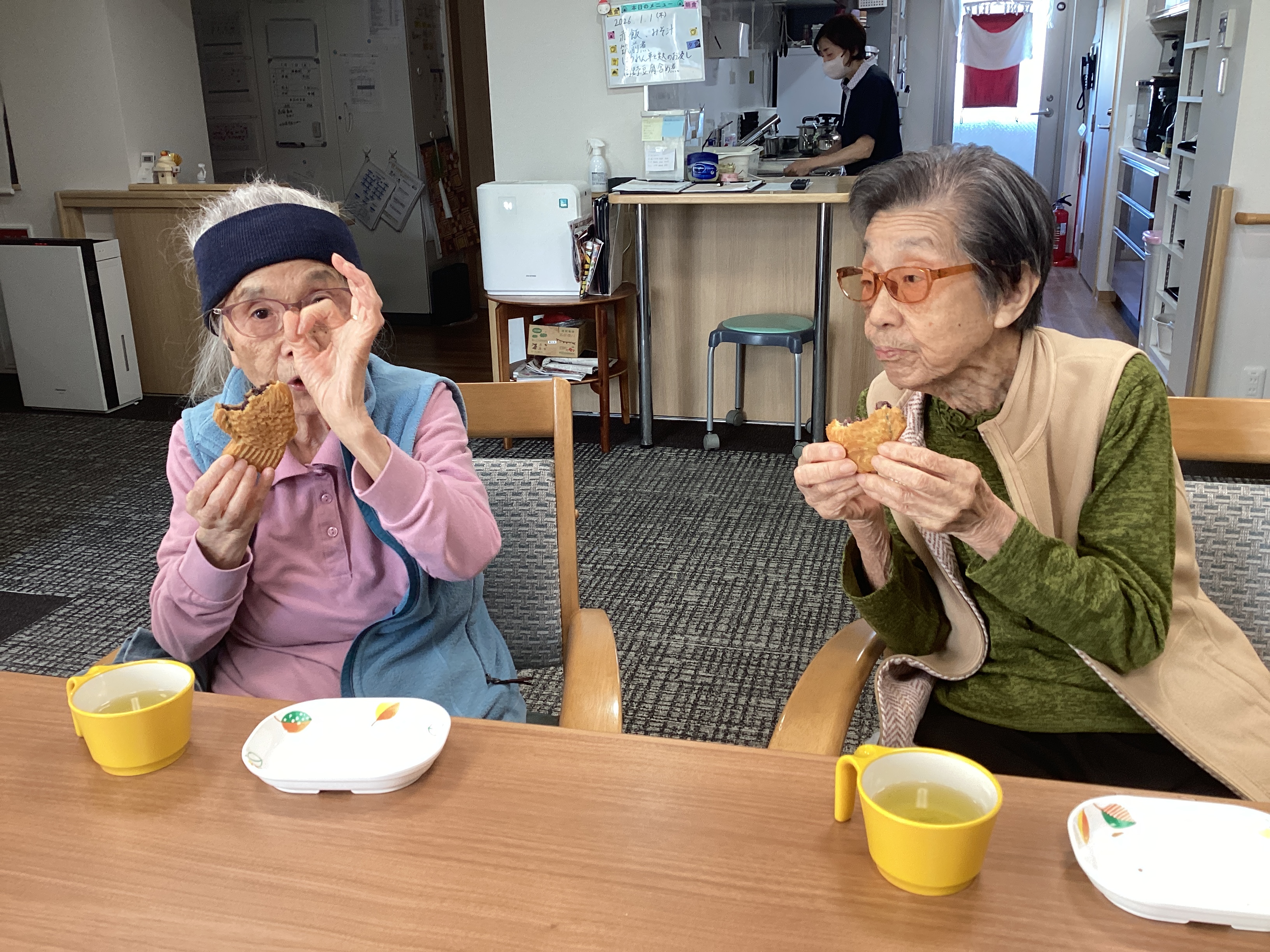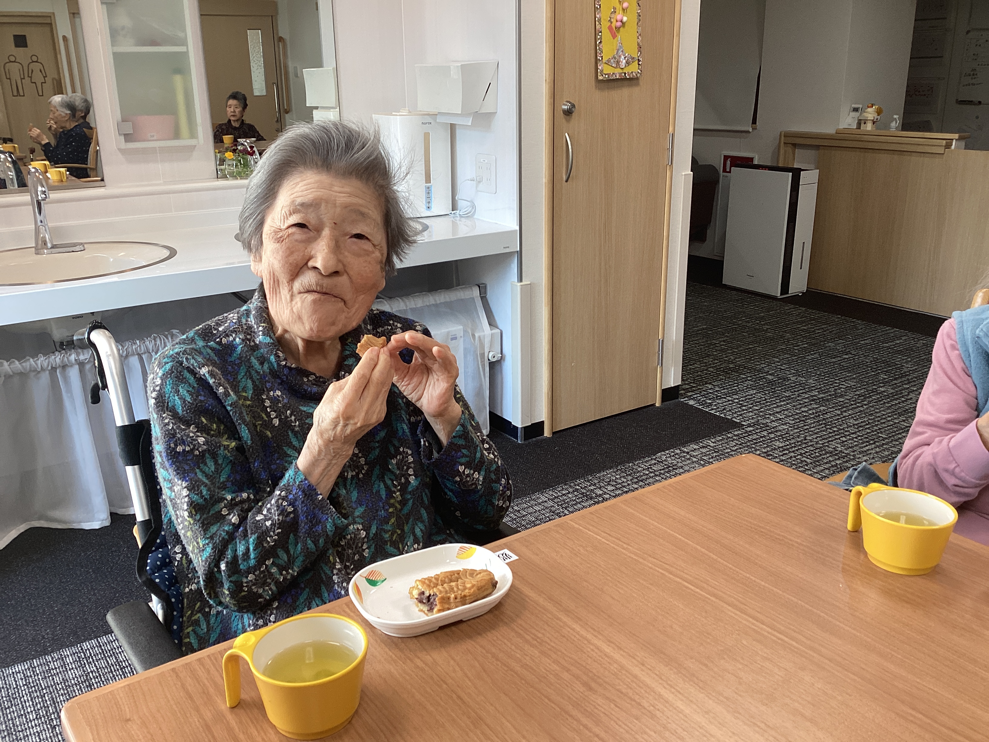 皆様毎日のおやつをとても楽しみにされています。 新年初のおやつは温かい緑茶と一緒にたい焼きをお出ししました。 おいしいおいしいと大絶賛でした!