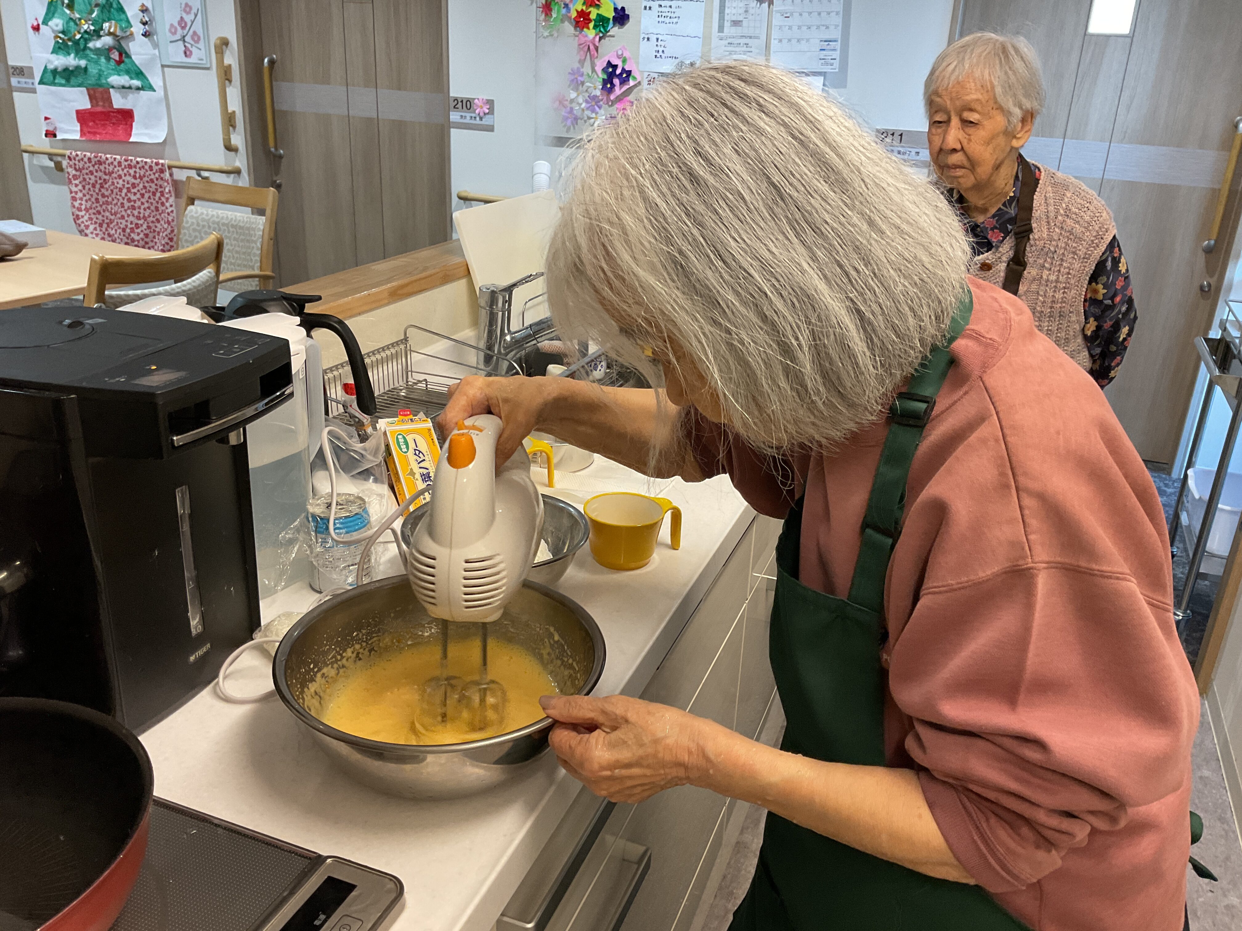 利用者様のお誕生日をお祝いしました♡ この日は初めて利用者様と職員が一緒になり小麦粉から手作りでお誕生日ケーキ作りに挑戦しました♡ 完成したケーキを前に主役の利用者様はとても嬉しそうな表情をされていました♡