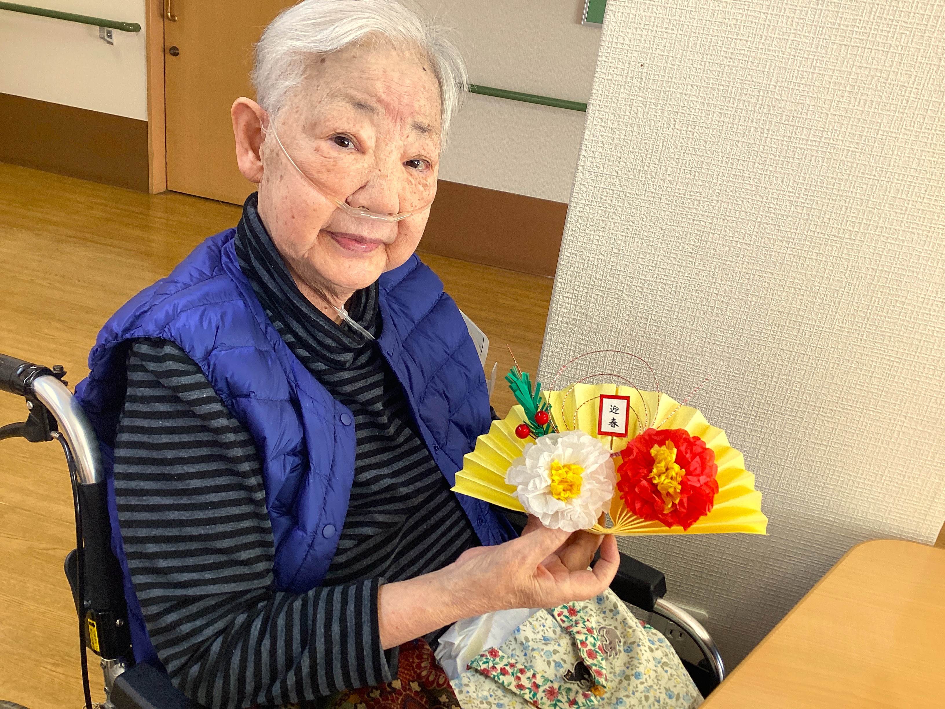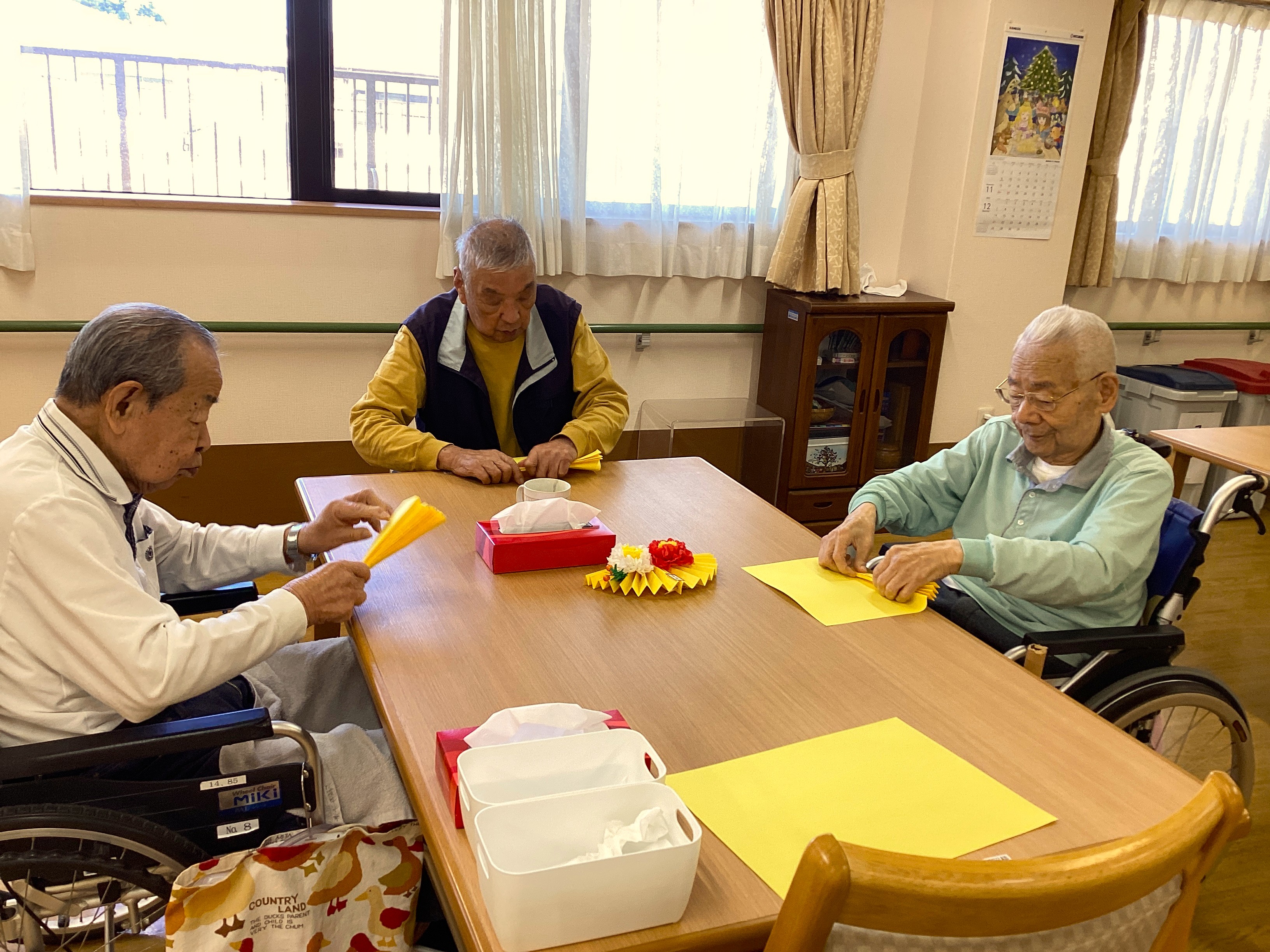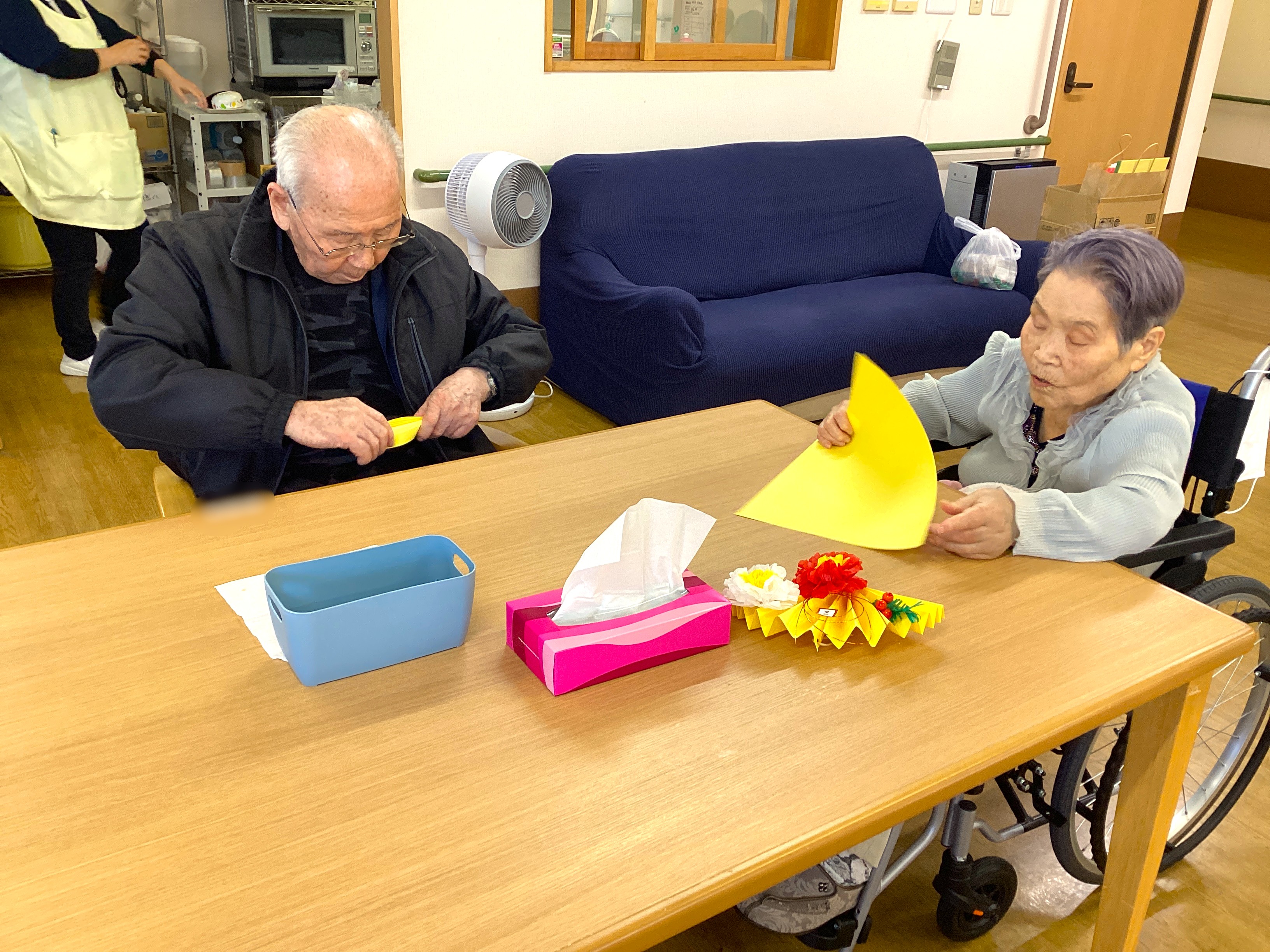 お正月飾り作りの様子です。作りながら皆さん「昔はこんな奇麗なのなかったわ」「お正月飾りを持って団子を焼きに行ったな」等、お話しに花が咲きました♡