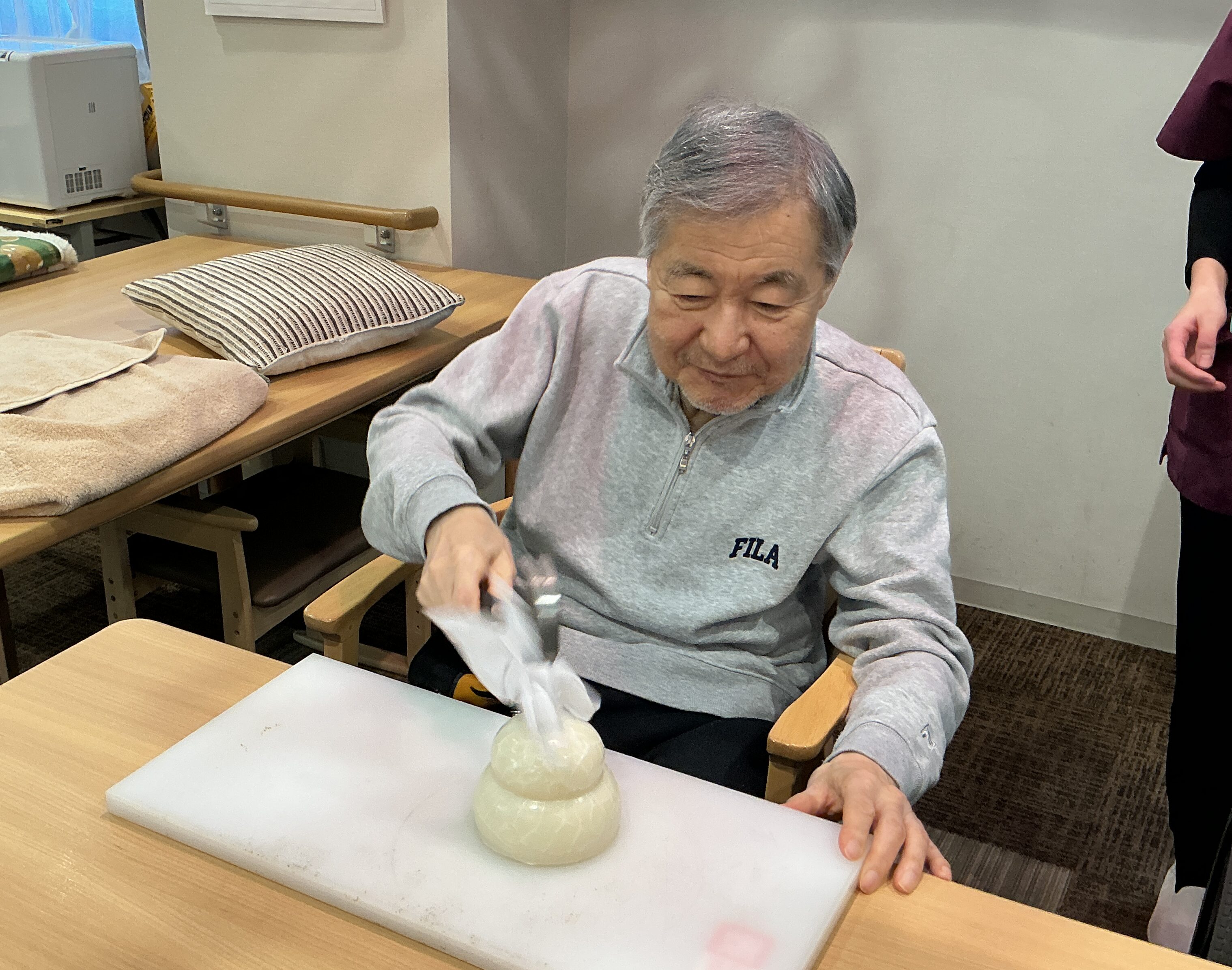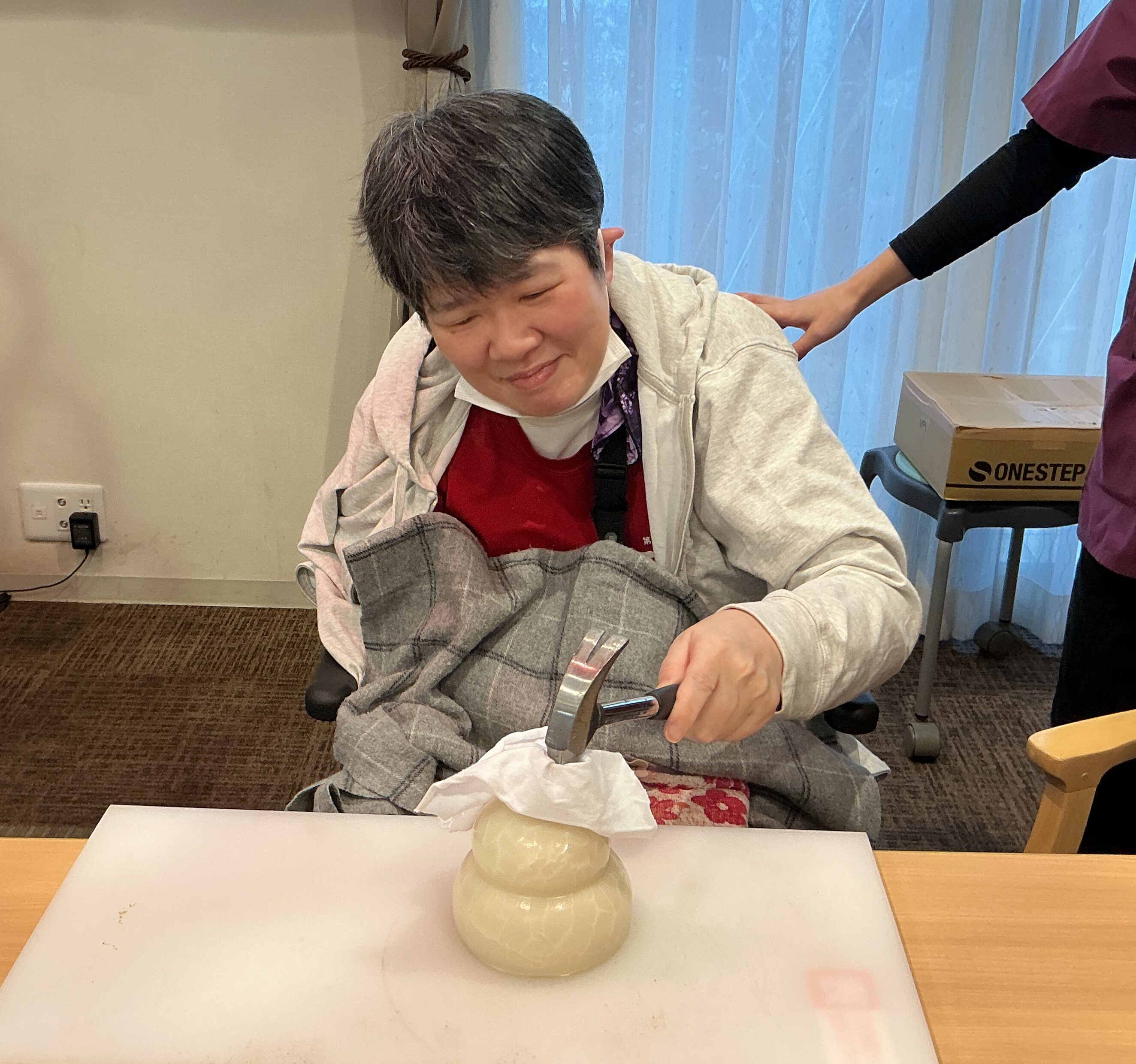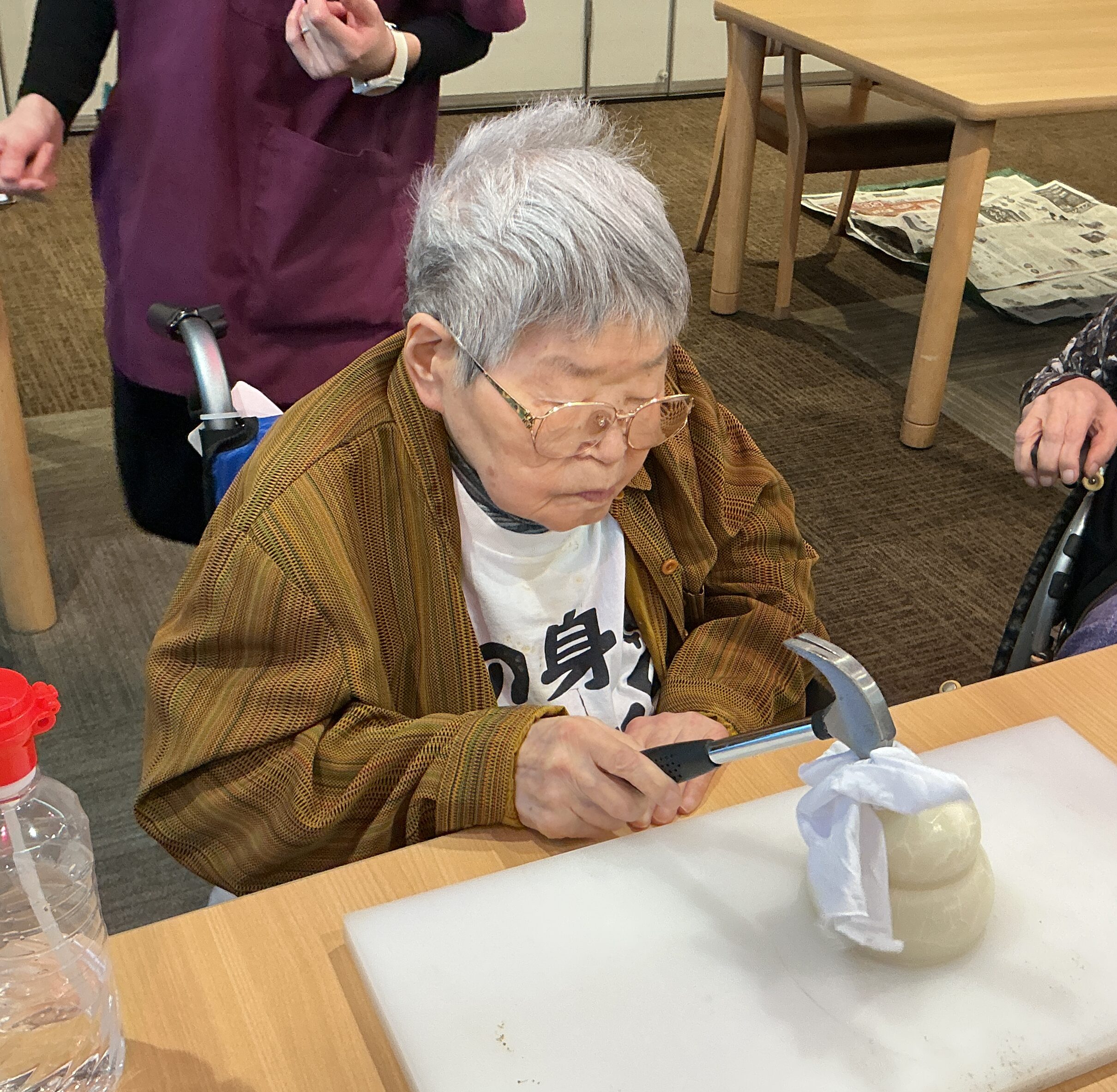 鑑開きを行いました。 皆様、無病息災を願いお餅を力一杯叩きました。 最後はお汁粉(豆腐餅)をいただきました!