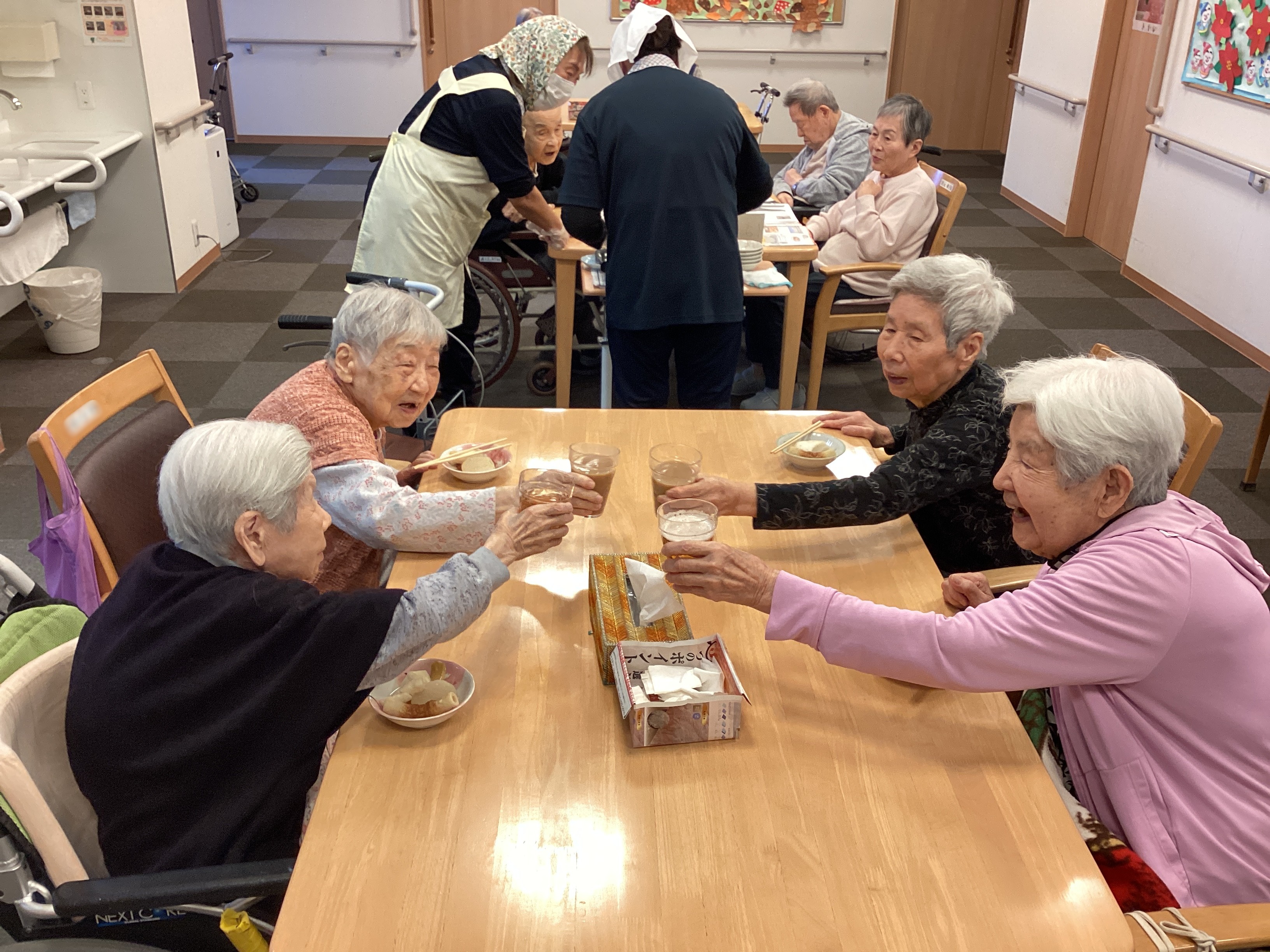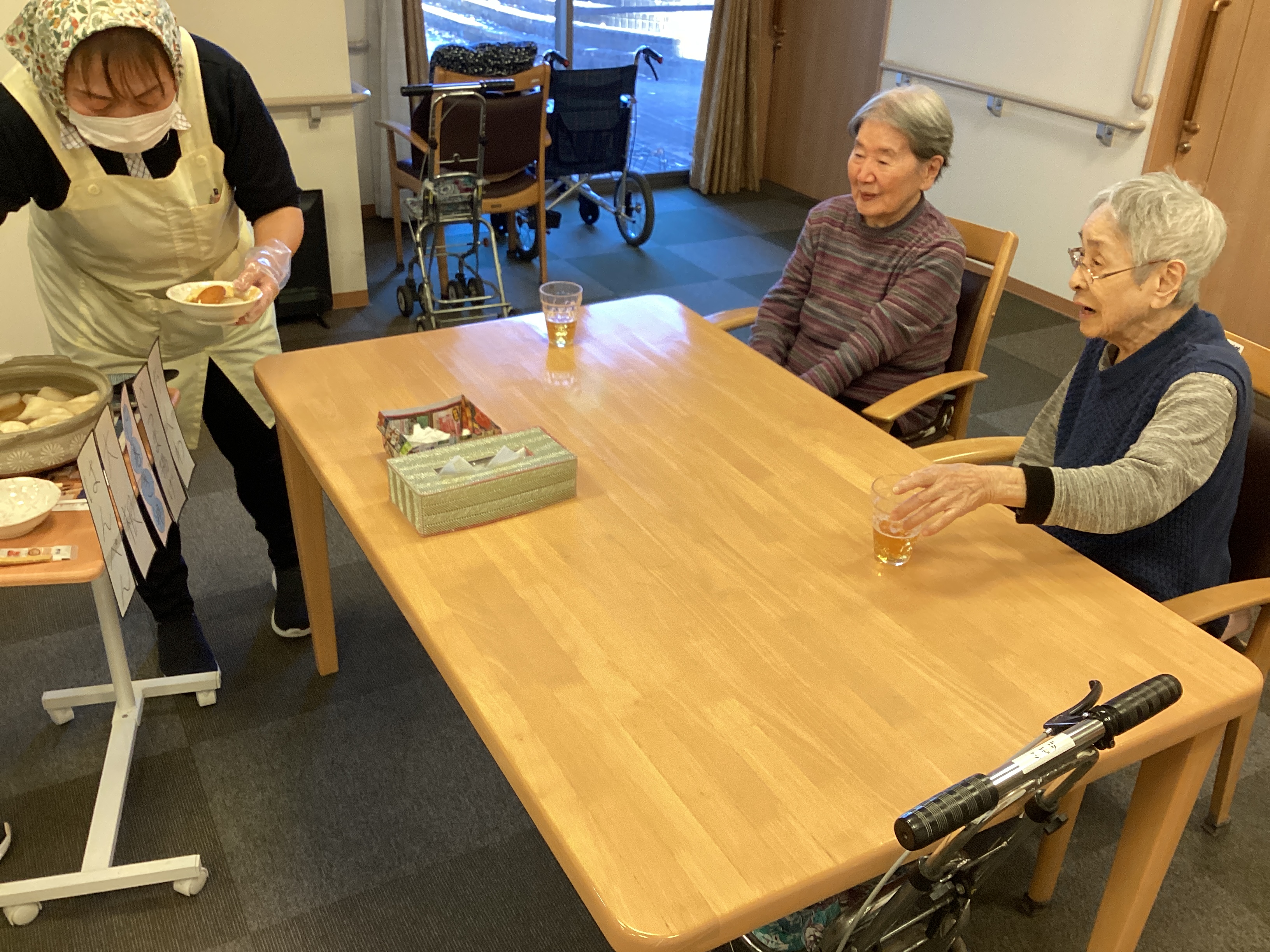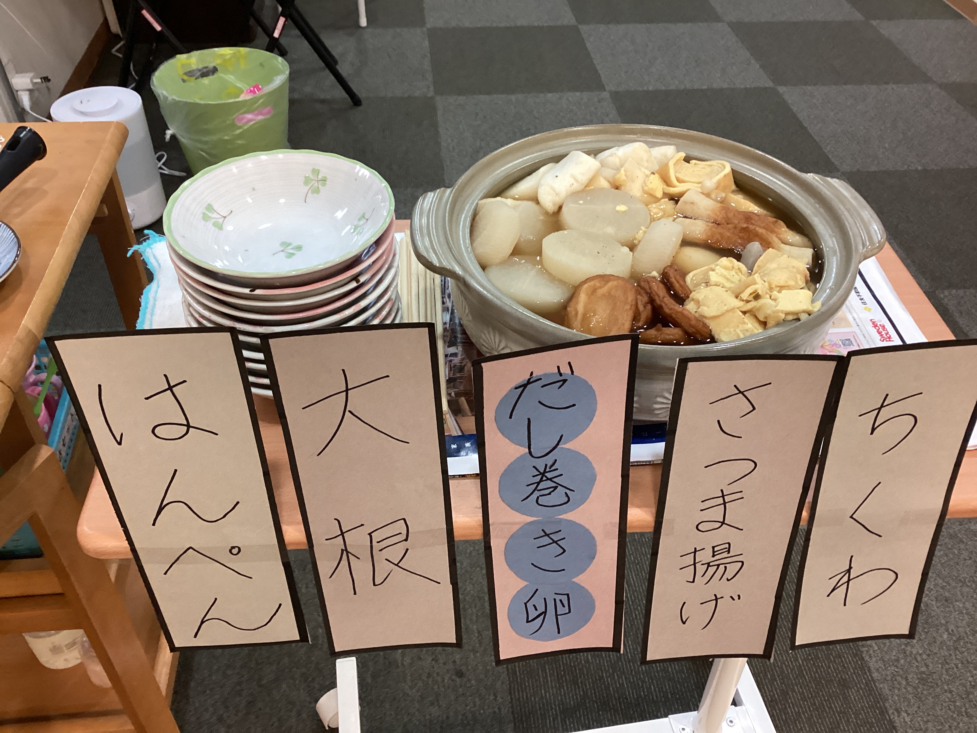 だんだんと、肌寒い季節になって参りましたね。 みなさんはおやつにおでんを召し上がられました。 好きなネタを選んでもらい、おかわりされる方が多くいらっしゃいました。 ご希望の方は(ノンアルコール)ビールを片手に楽しまれました。