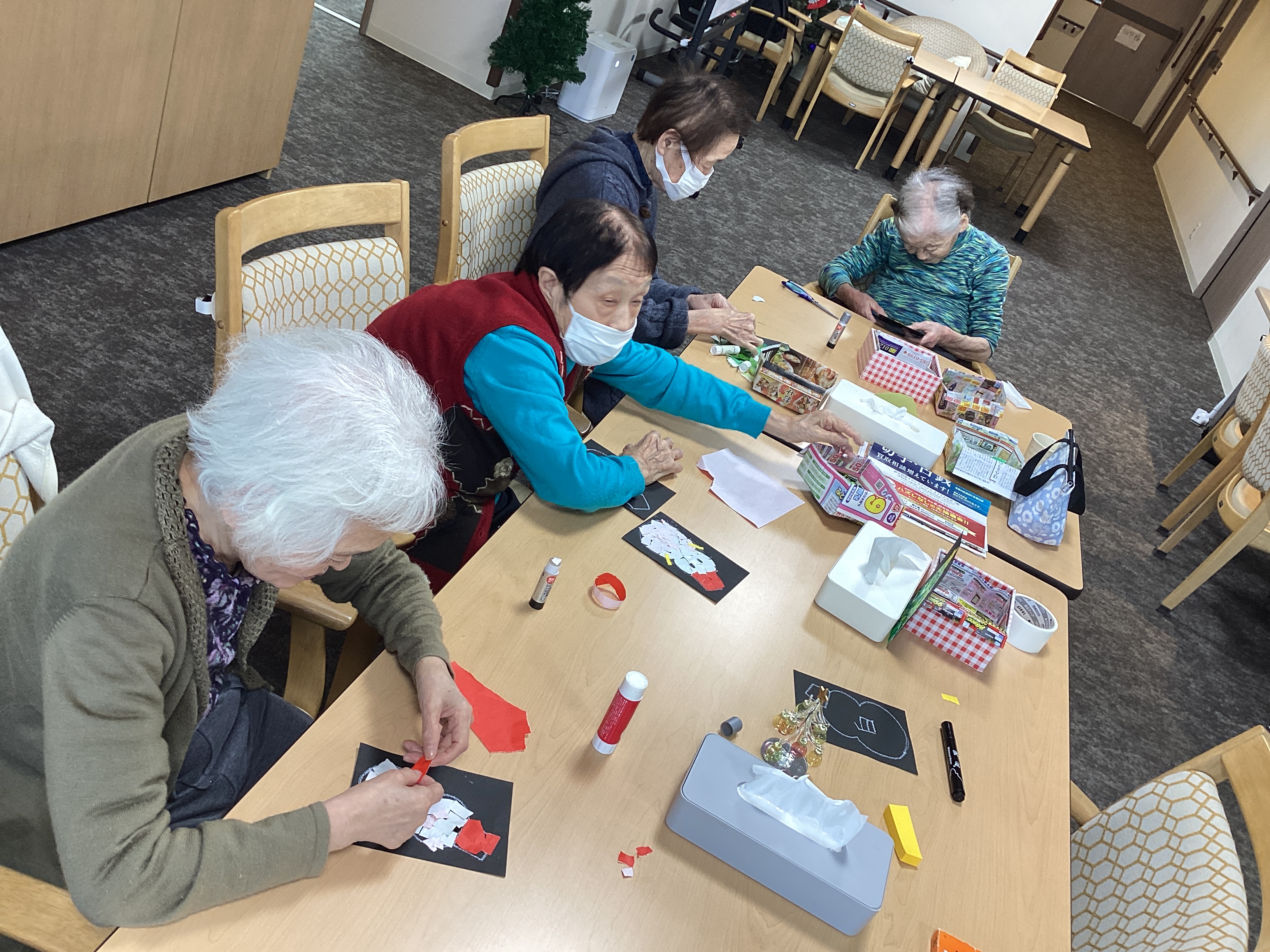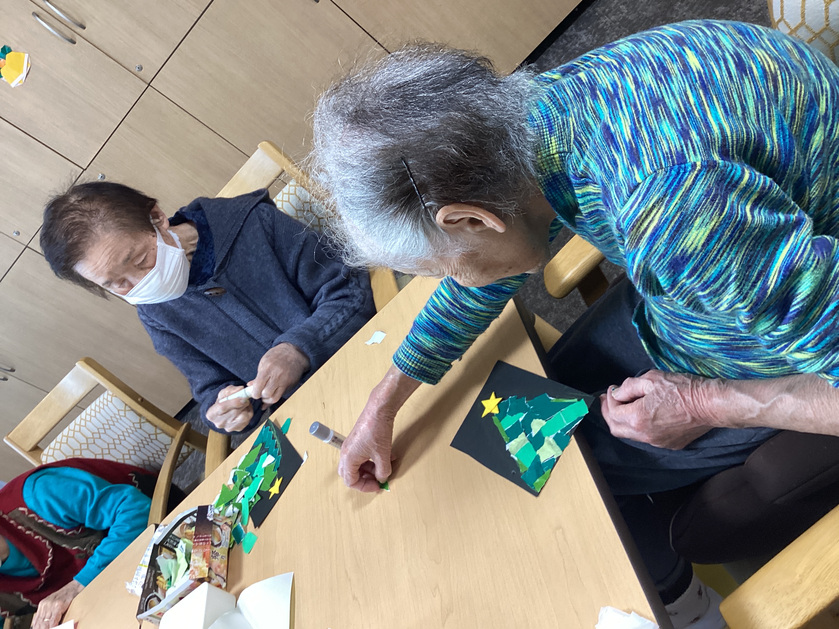本日のレクリエーションは、”貼り絵”を行いました!クリスマスツリーとかわいい雪だるまの貼り絵が完成しました🎄⛄