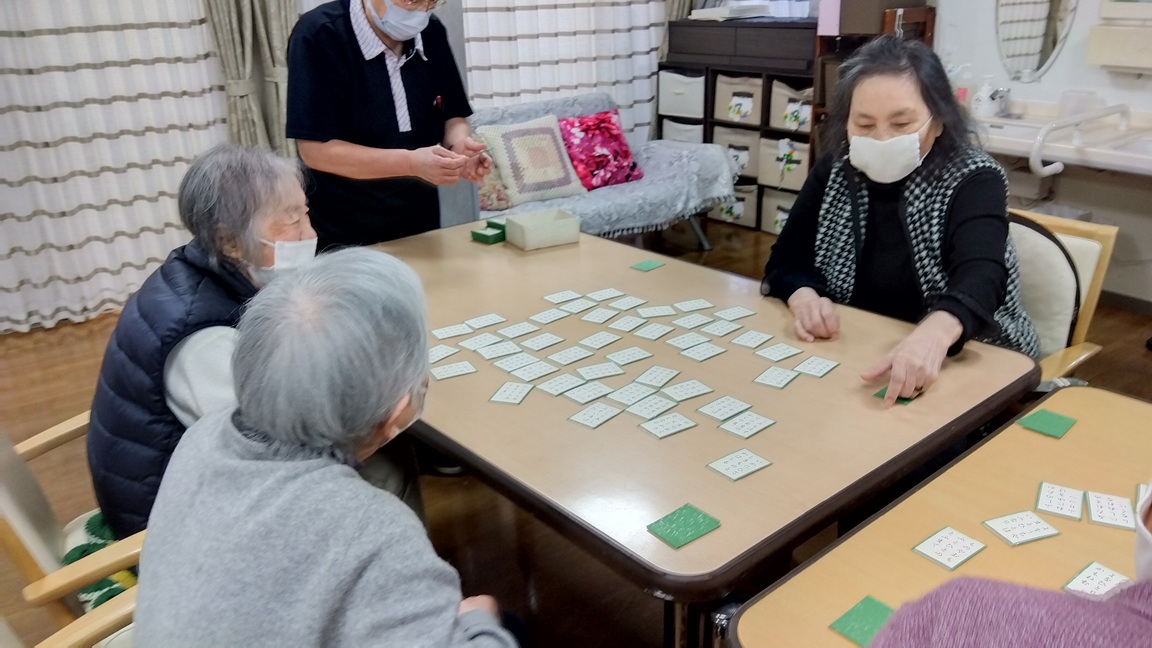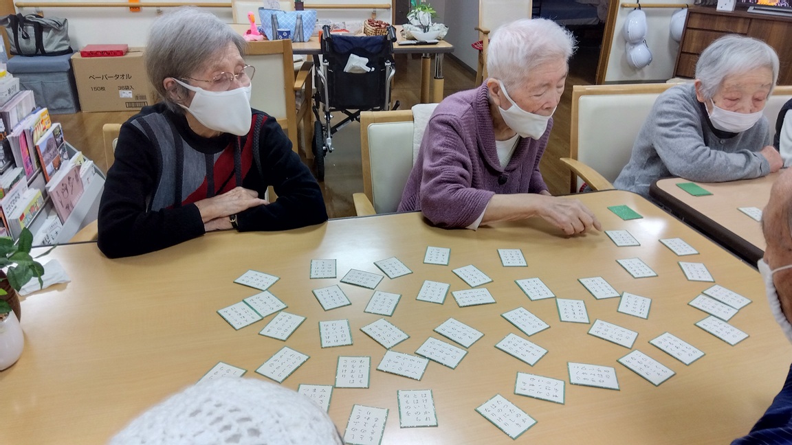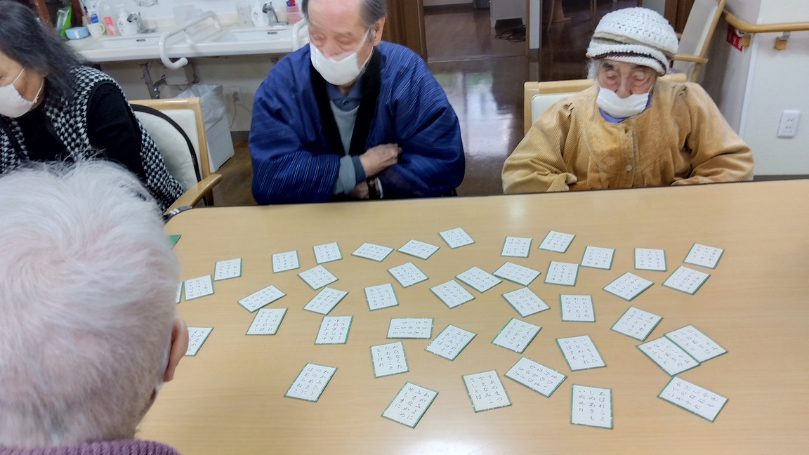 ちょっと難しかったですが、百人一首をしてみました。 みなさん、頭も抱えつつも一生懸命にいどみました。 じっ~~っと見つめて。。。これかしら?w