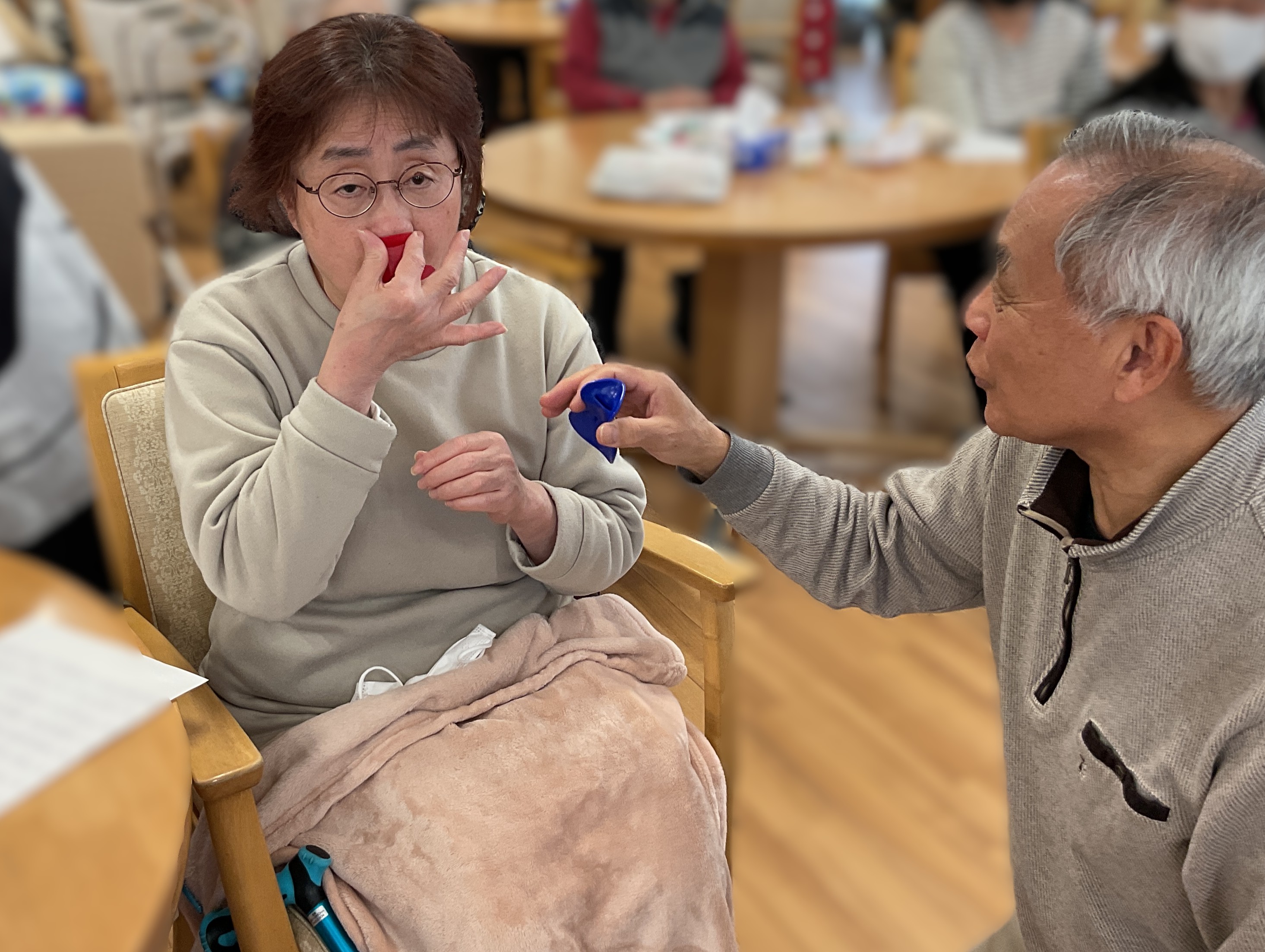 本日は先生をお招きして「鼻笛」に挑戦しました。鼻で演奏する珍しい楽器です😯鼻息を使って口の中で音を反響させ演奏します。とても手軽に楽しめる楽器ということで利用者様も挑戦!コツを掴むと素敵な音がでました!