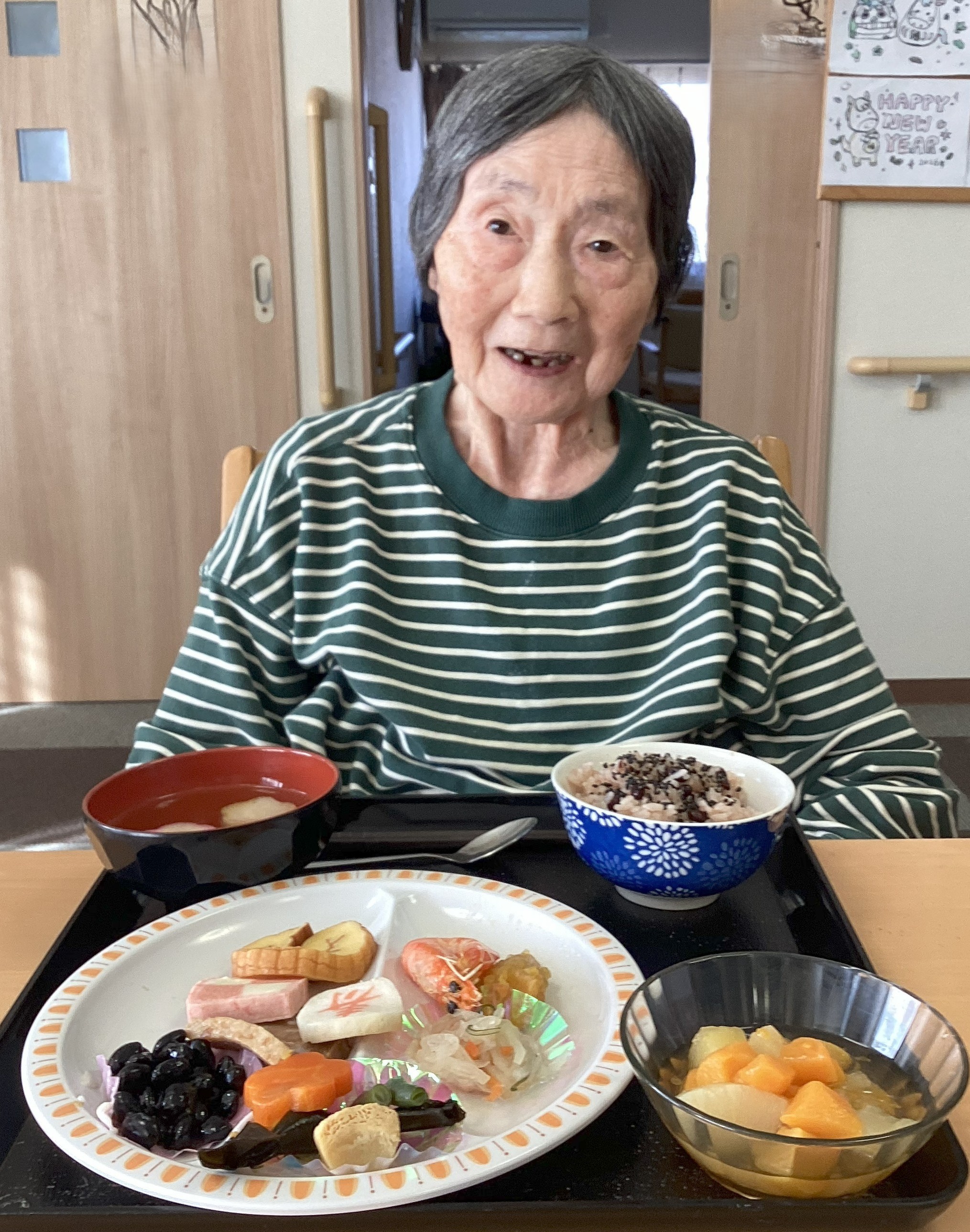 新年あけましておめでとうございます🎍本年もどうぞ宜しくお願い致します。元旦にはみなさんで、おせち料理を頂きました。皆さん「すごいね~♡美味しそう♡」と笑顔で召し上がっていました(^^♪
