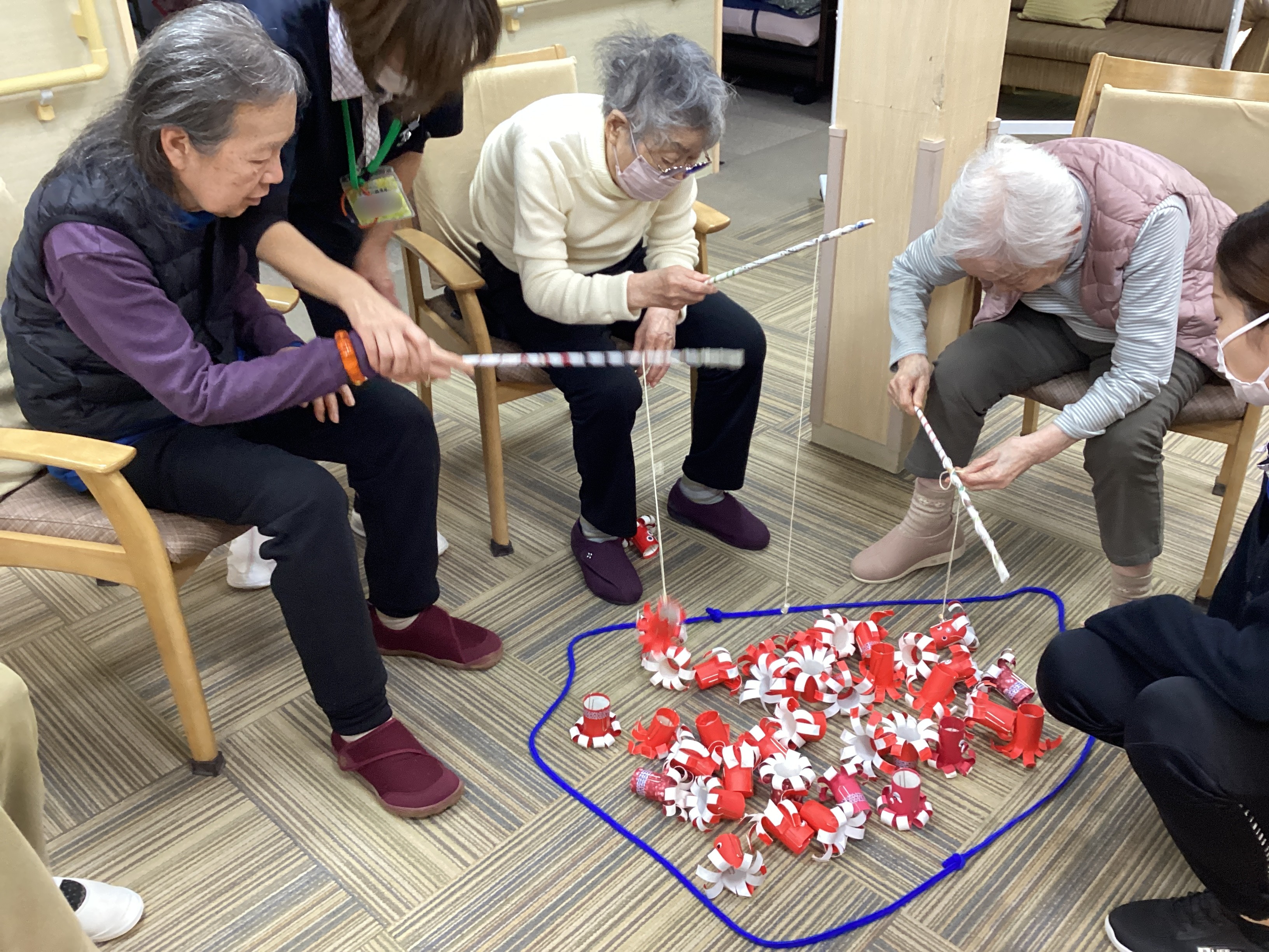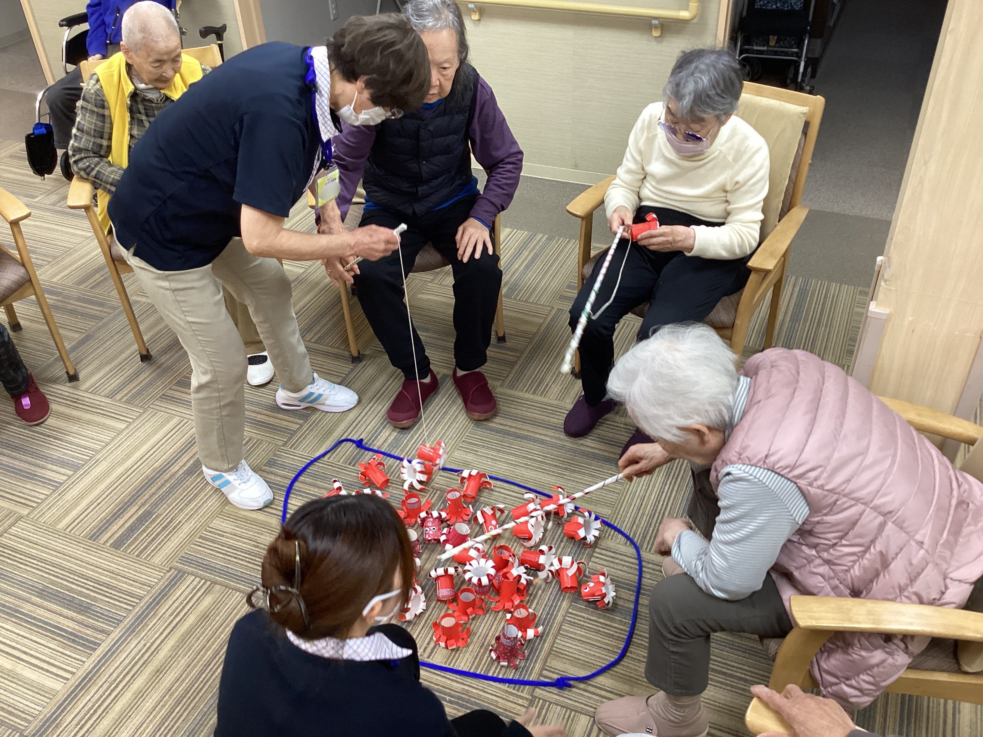磁石の付いた釣り竿を使ってタコ釣りを行いました🎣顔付きのタコは10点、鉢巻き付きのタコは5点、ノーマルは1点と点数が決められており、皆さん高得点を狙って挑戦⚡どのタコを釣ろうか考えながら点数を競い合い、とても盛り上がりました🐙